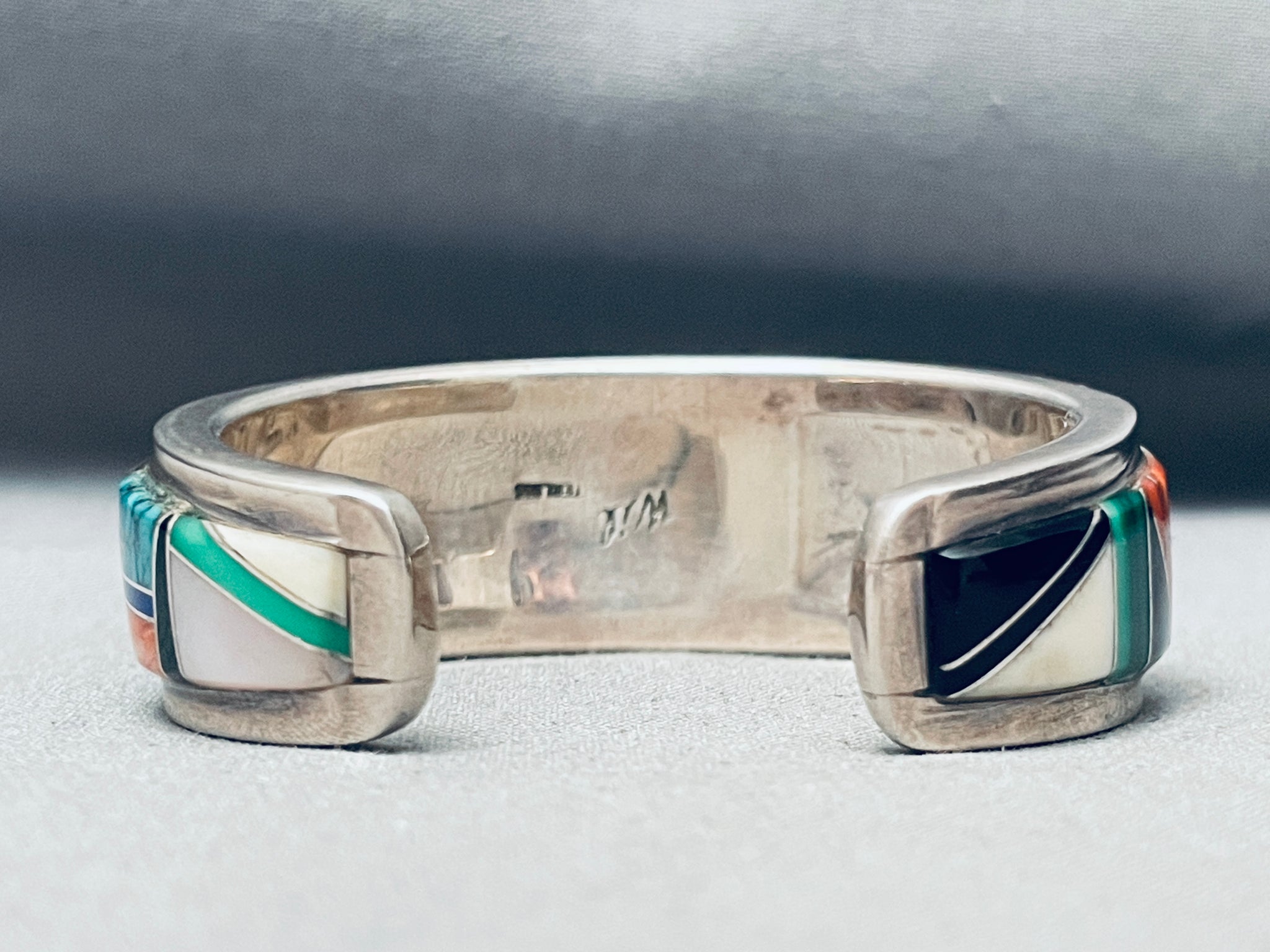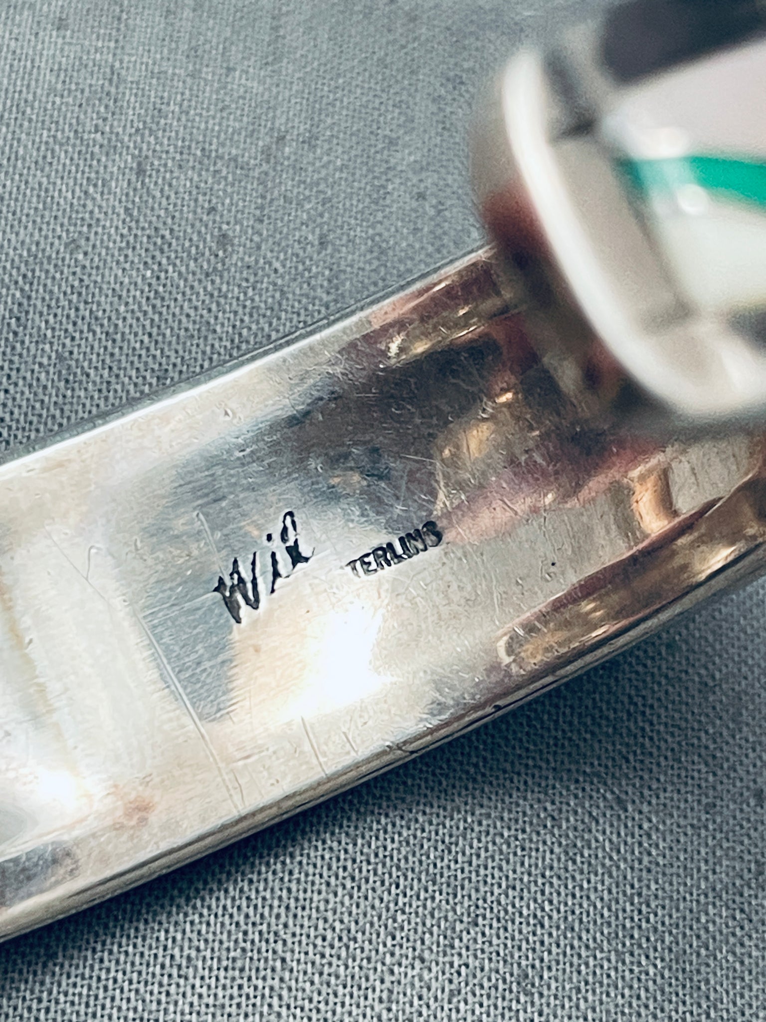 5.5 Inch Wrist Vintage Native American Navajo Turquoise Inlay Sterling Silver Bracelet