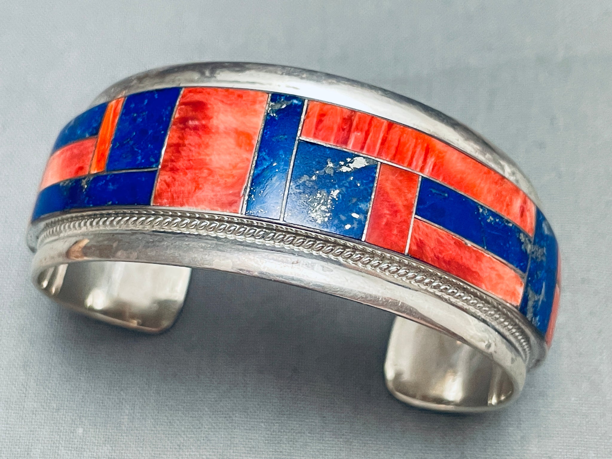 6.5 Inch Wrist Vintage Navajo Spiny Oyster Lapis Sterling Silver Bracelet