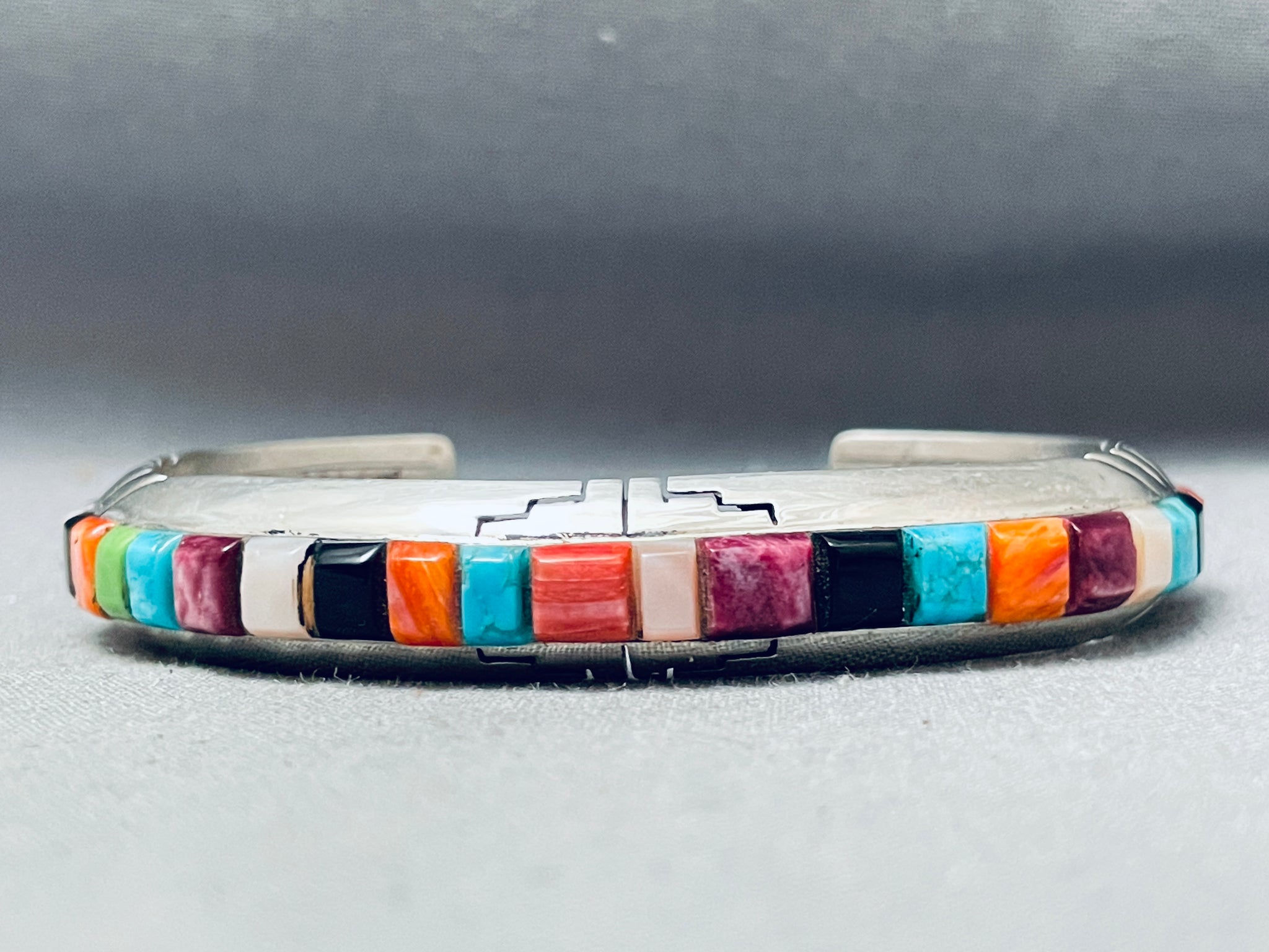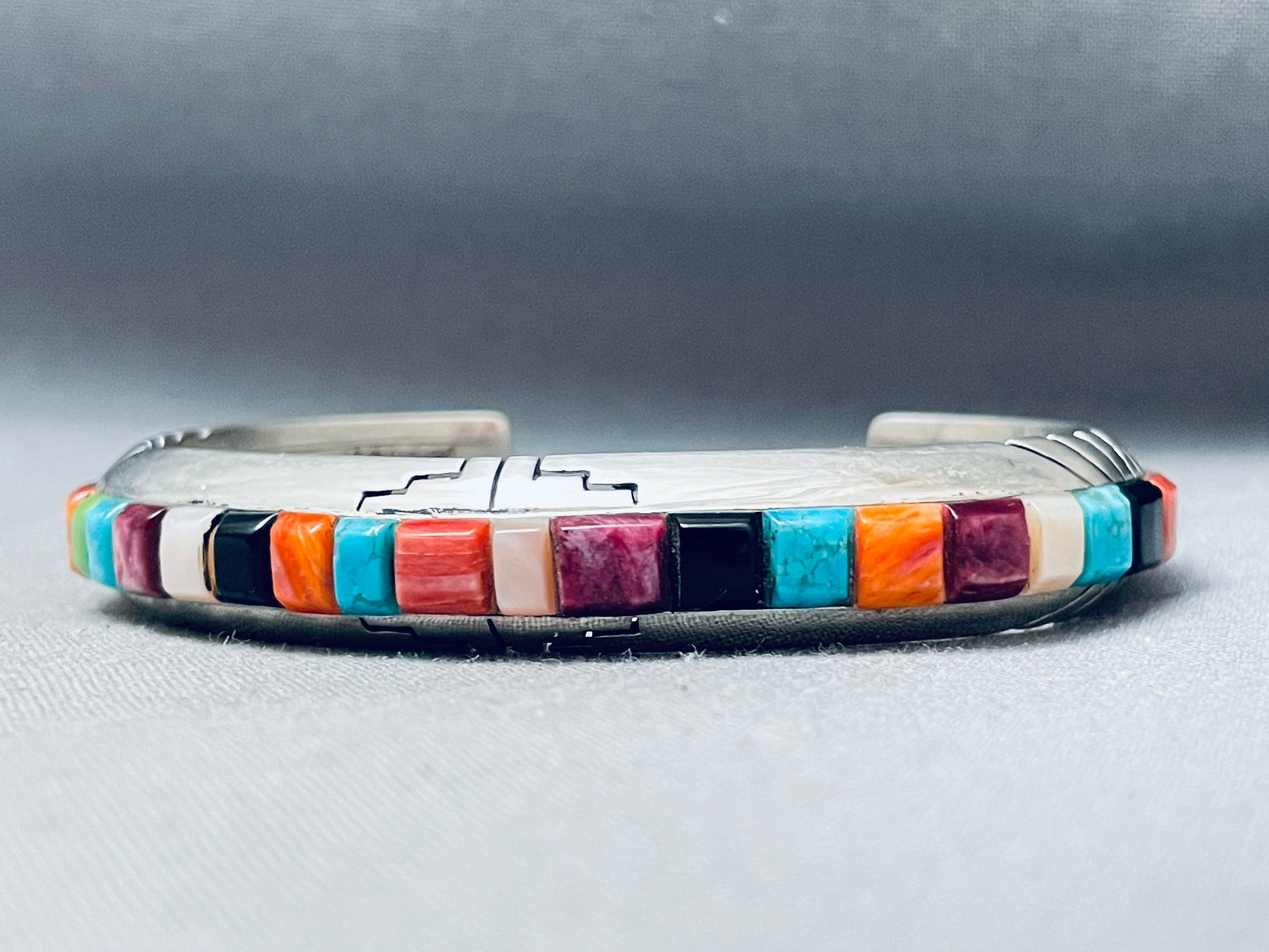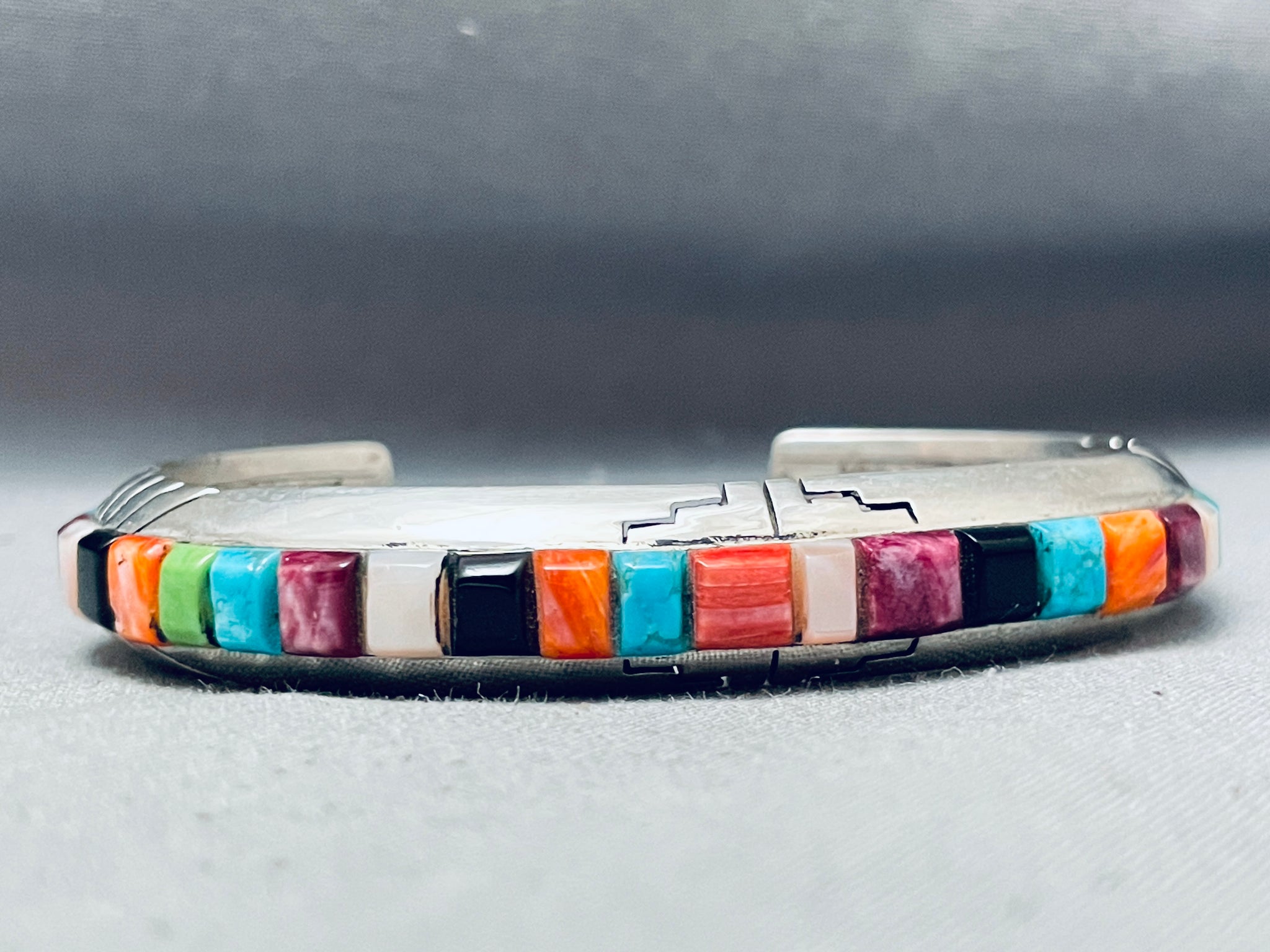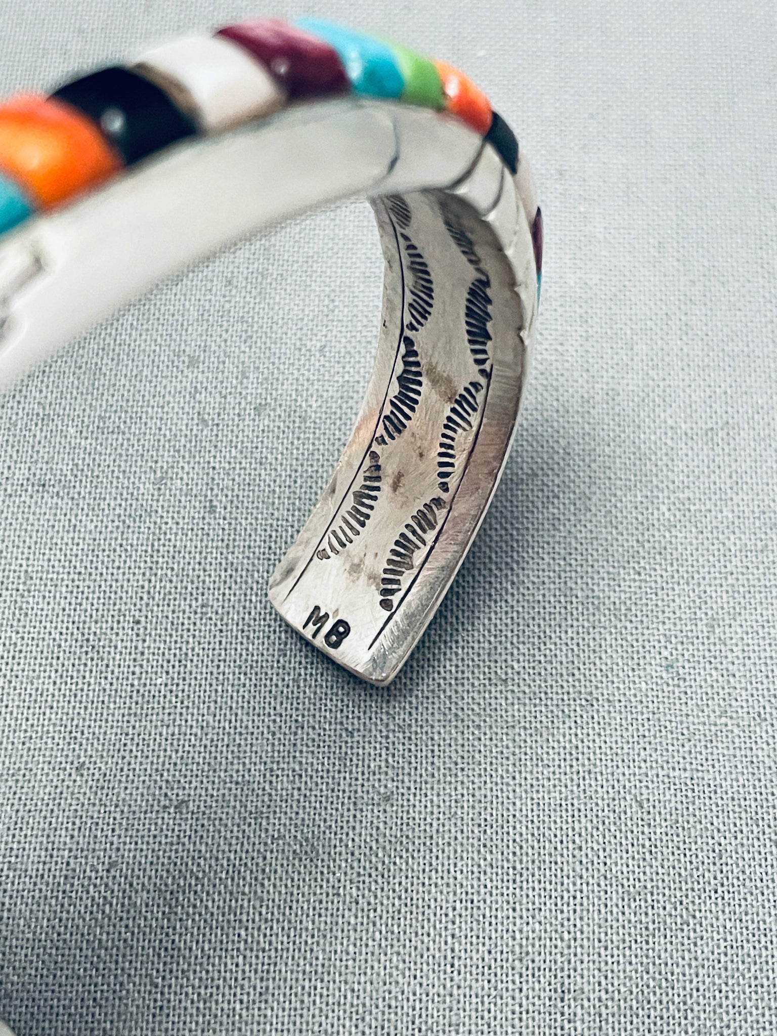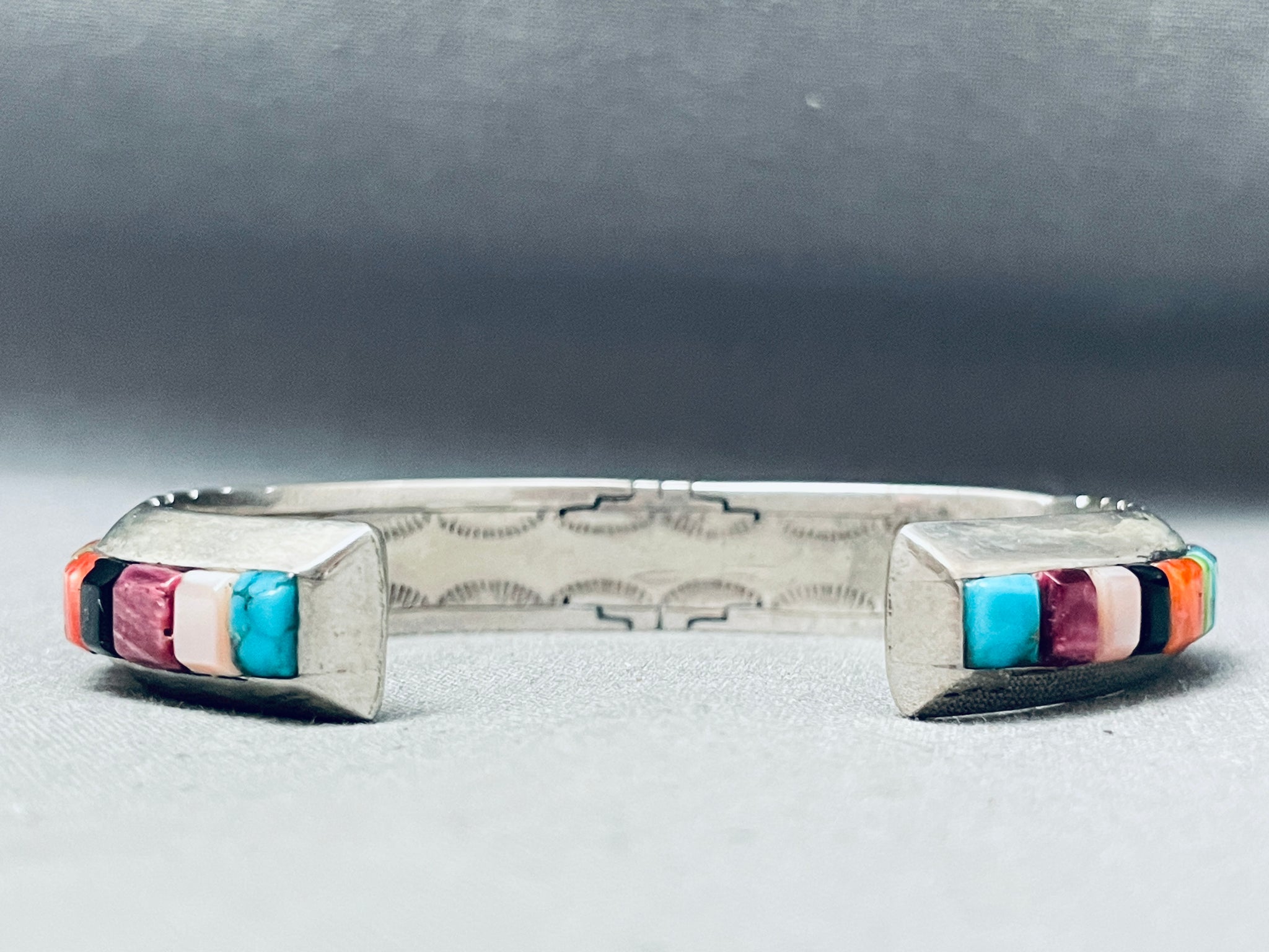 6 Inch Wrist Vintage Native American Navajo Turquoise Inlay Sterling Silver Bracelet