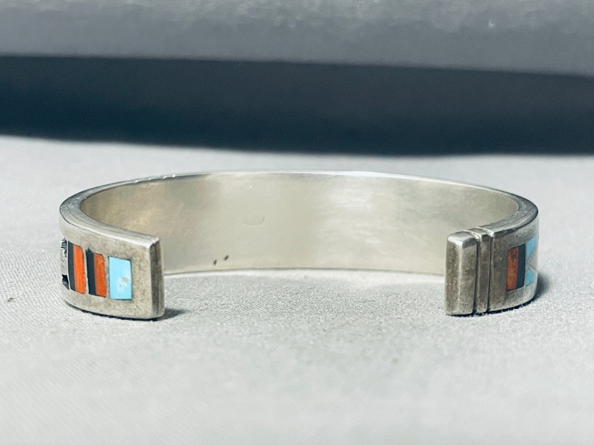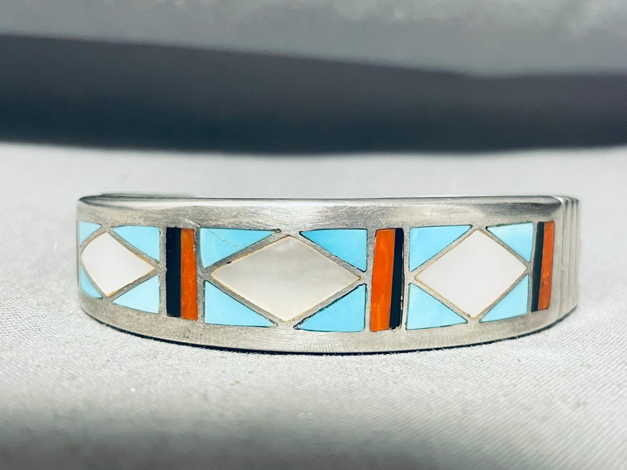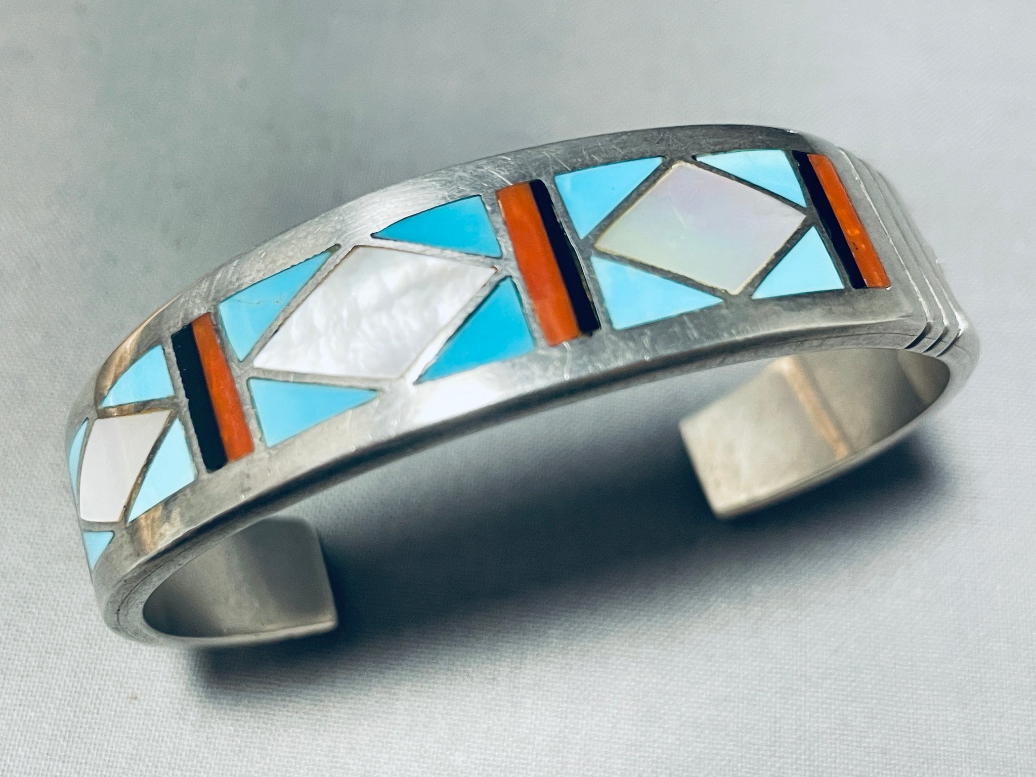 6' Wrist Vintage Navajo Turquoise Inlay Sterling Silver Bracelet Cuff