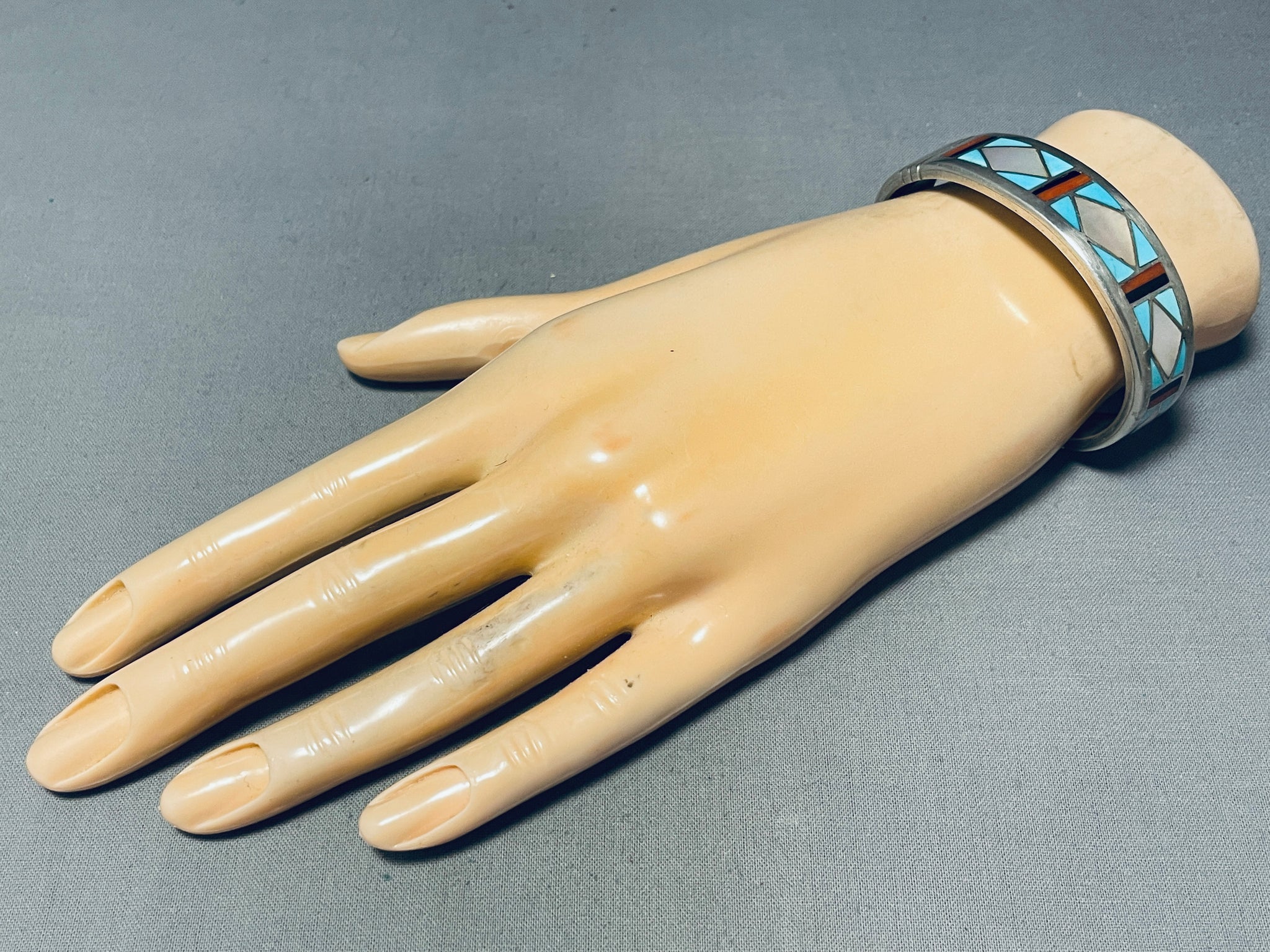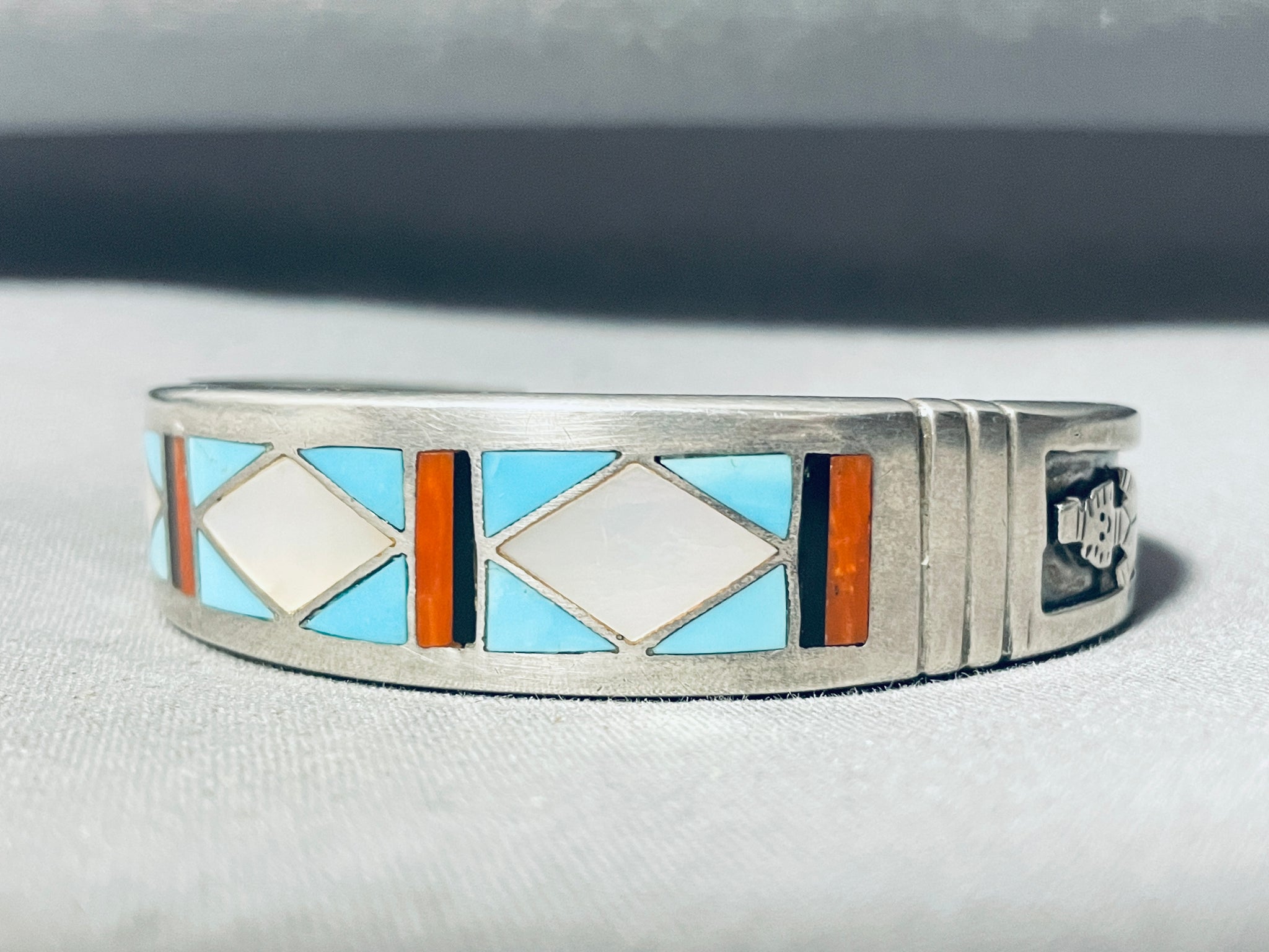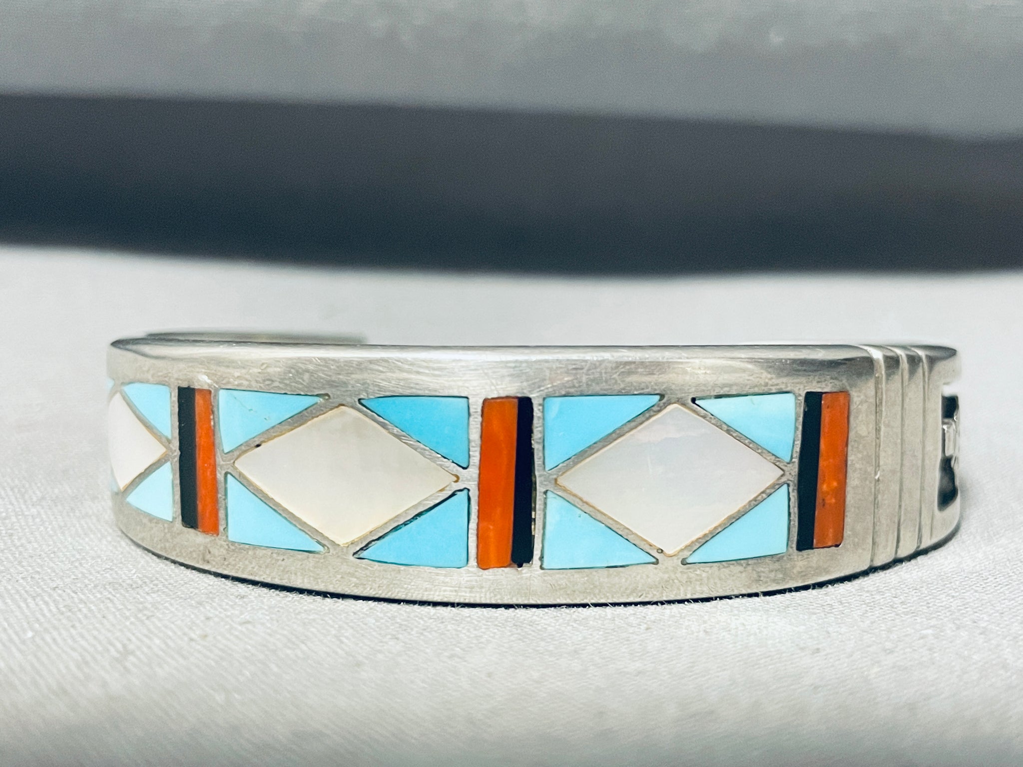 6' Wrist Vintage Navajo Turquoise Inlay Sterling Silver Bracelet Cuff