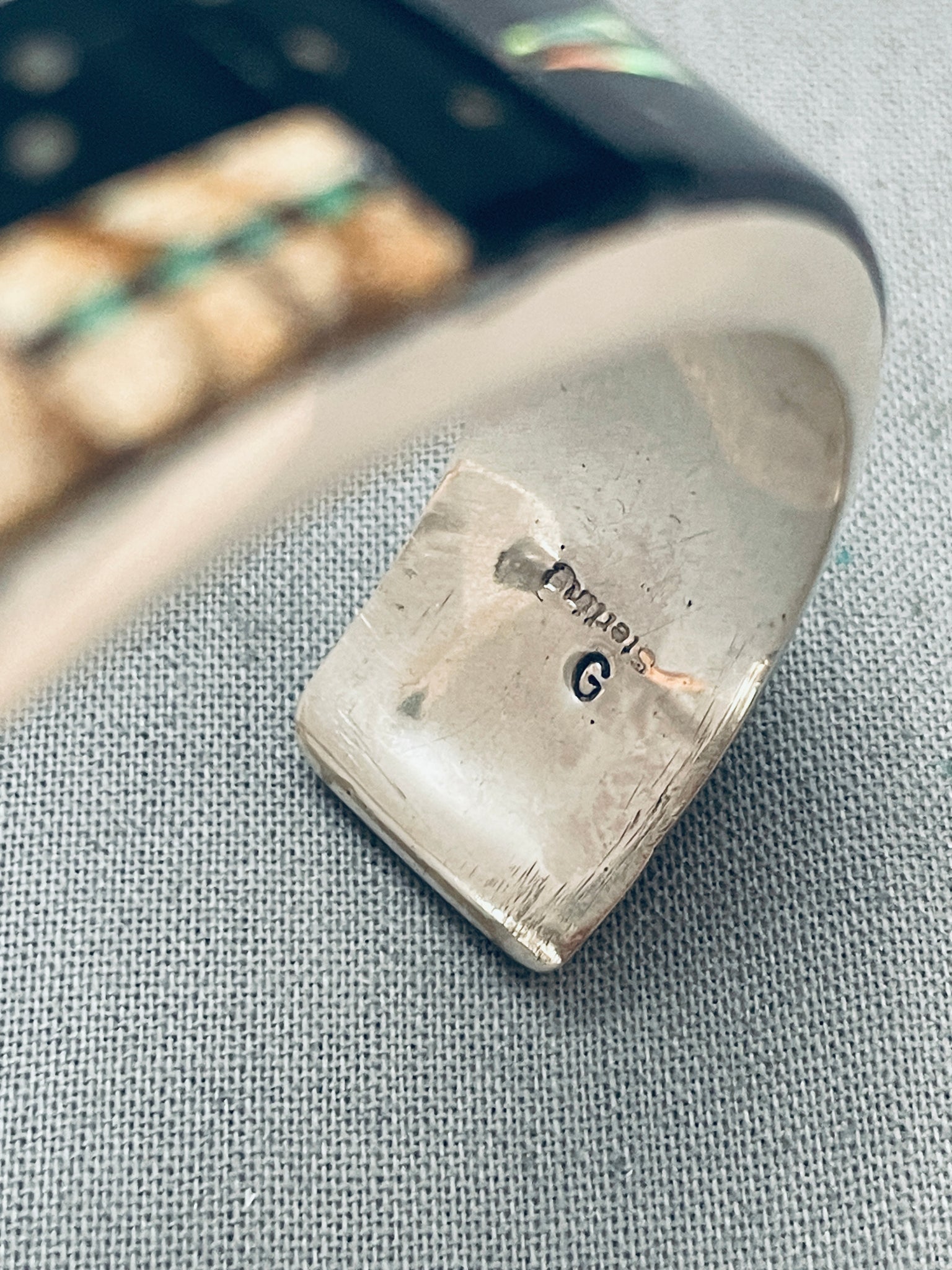 7.5 Inch Vintage Native American Navajo Space Inlay Sterling Silver Turquoise Bracelet