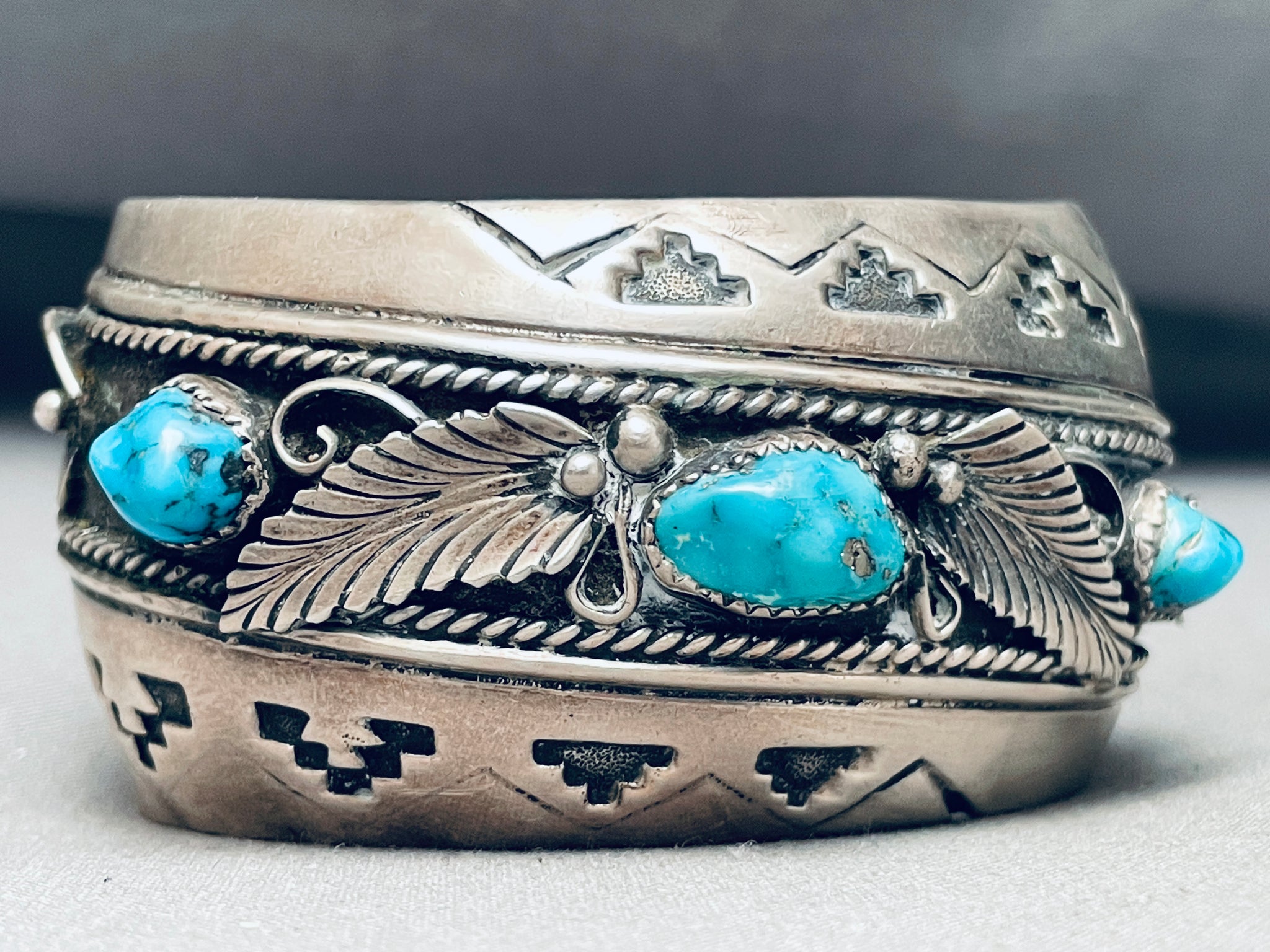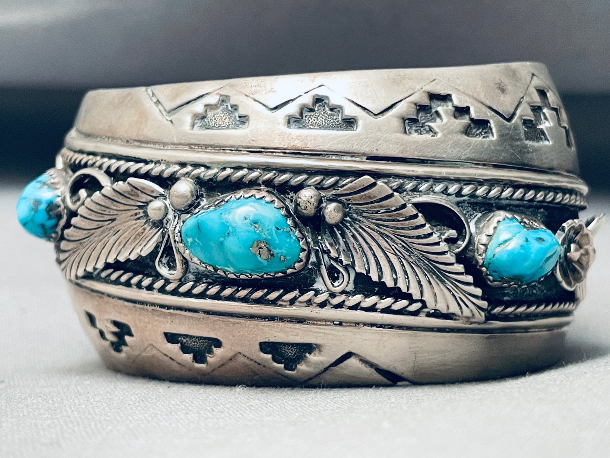 Al Joe Vintage Native American Navajo Turquoise Sterling Silver Leaf Bracelet