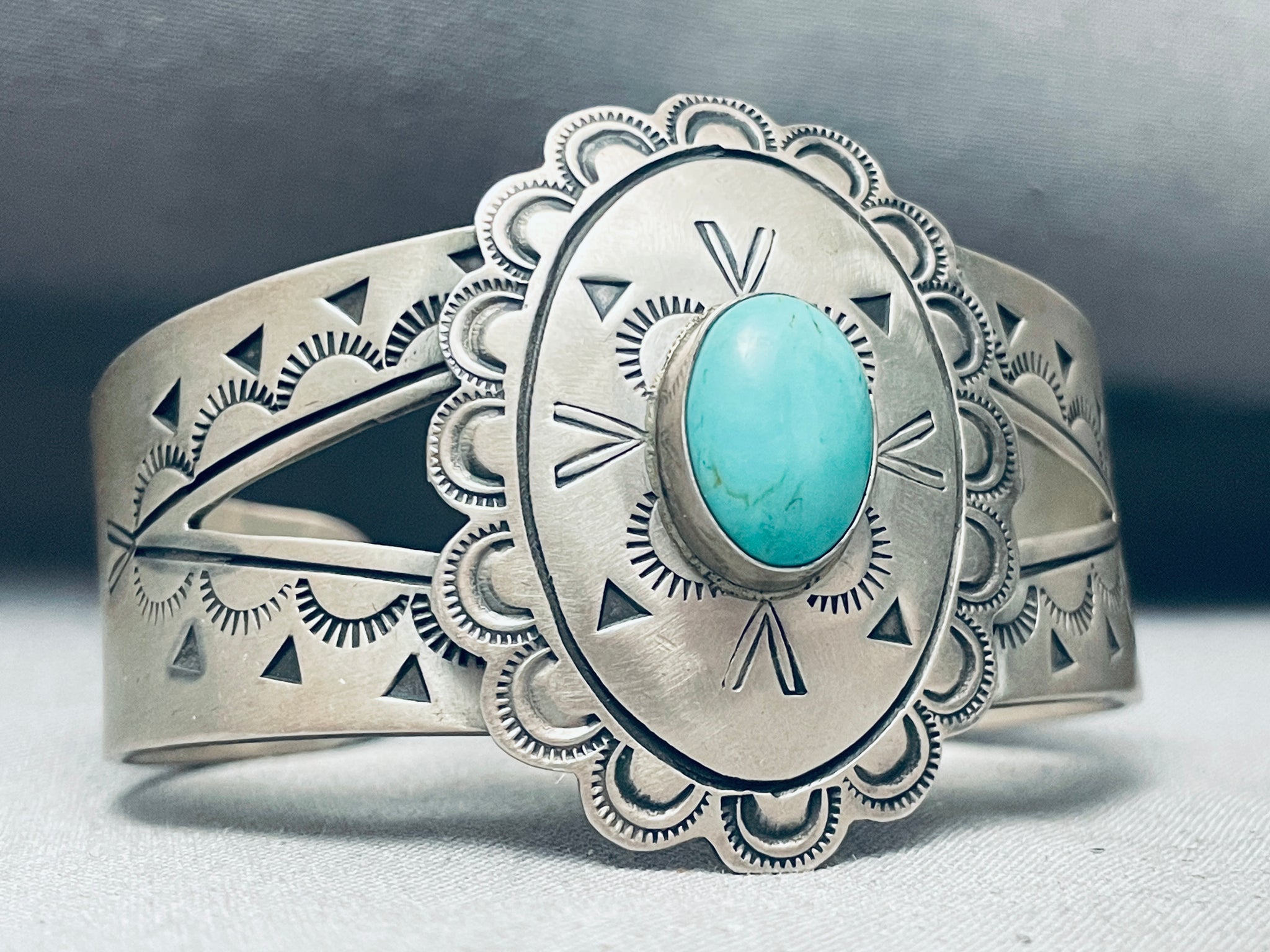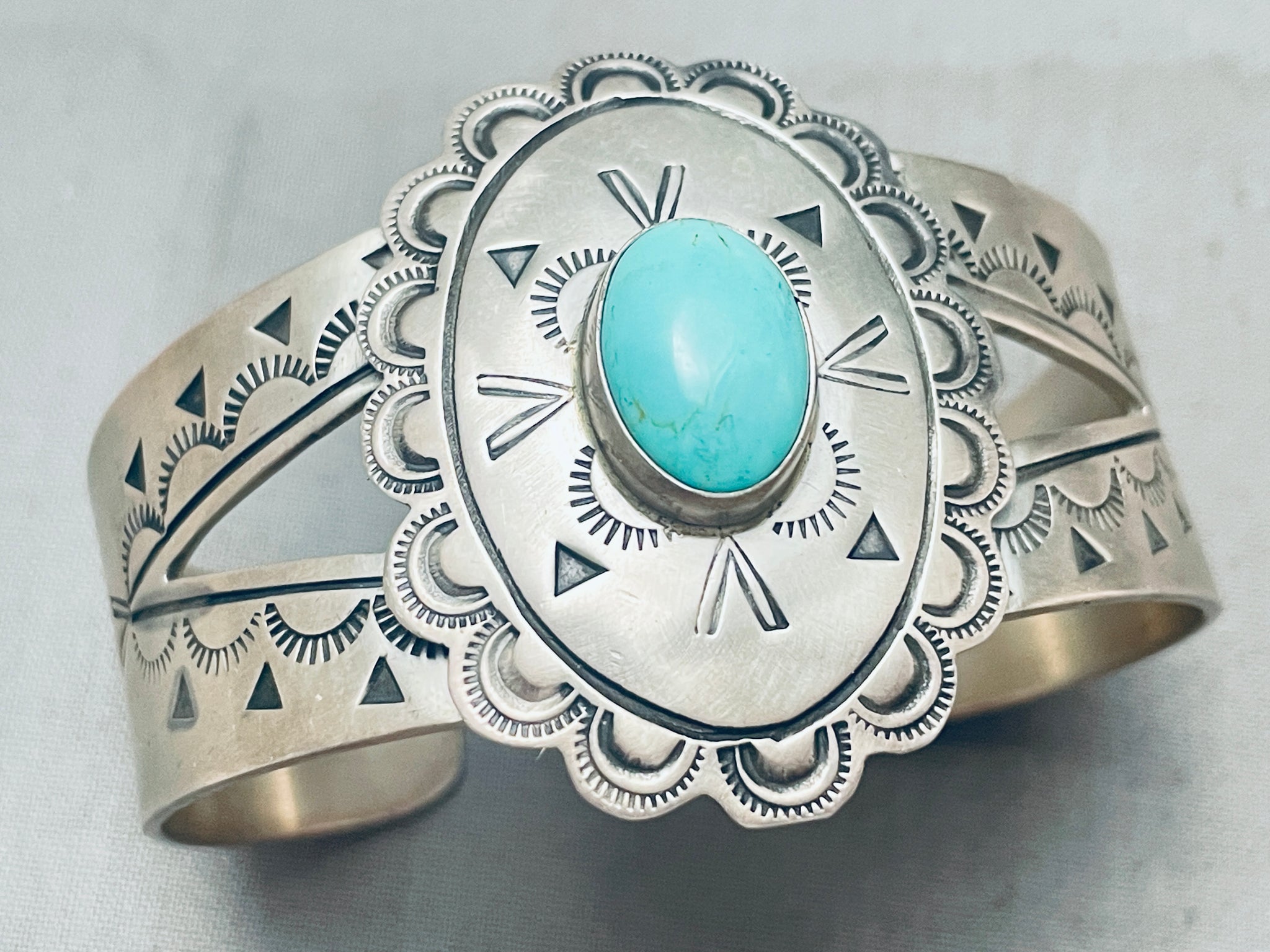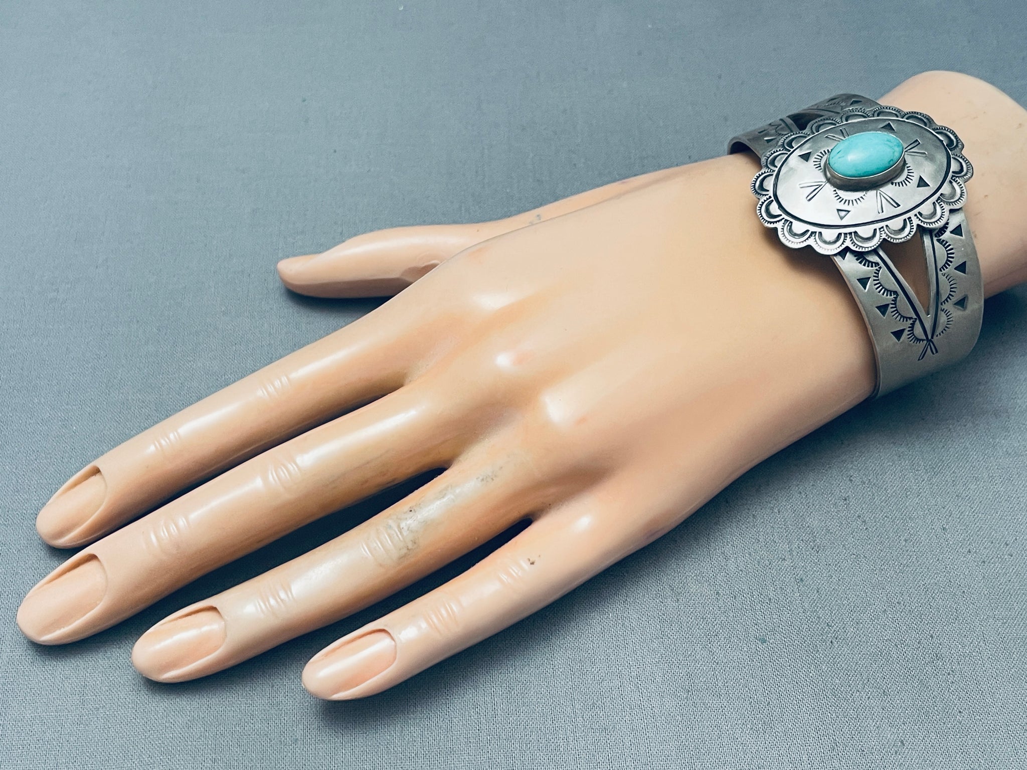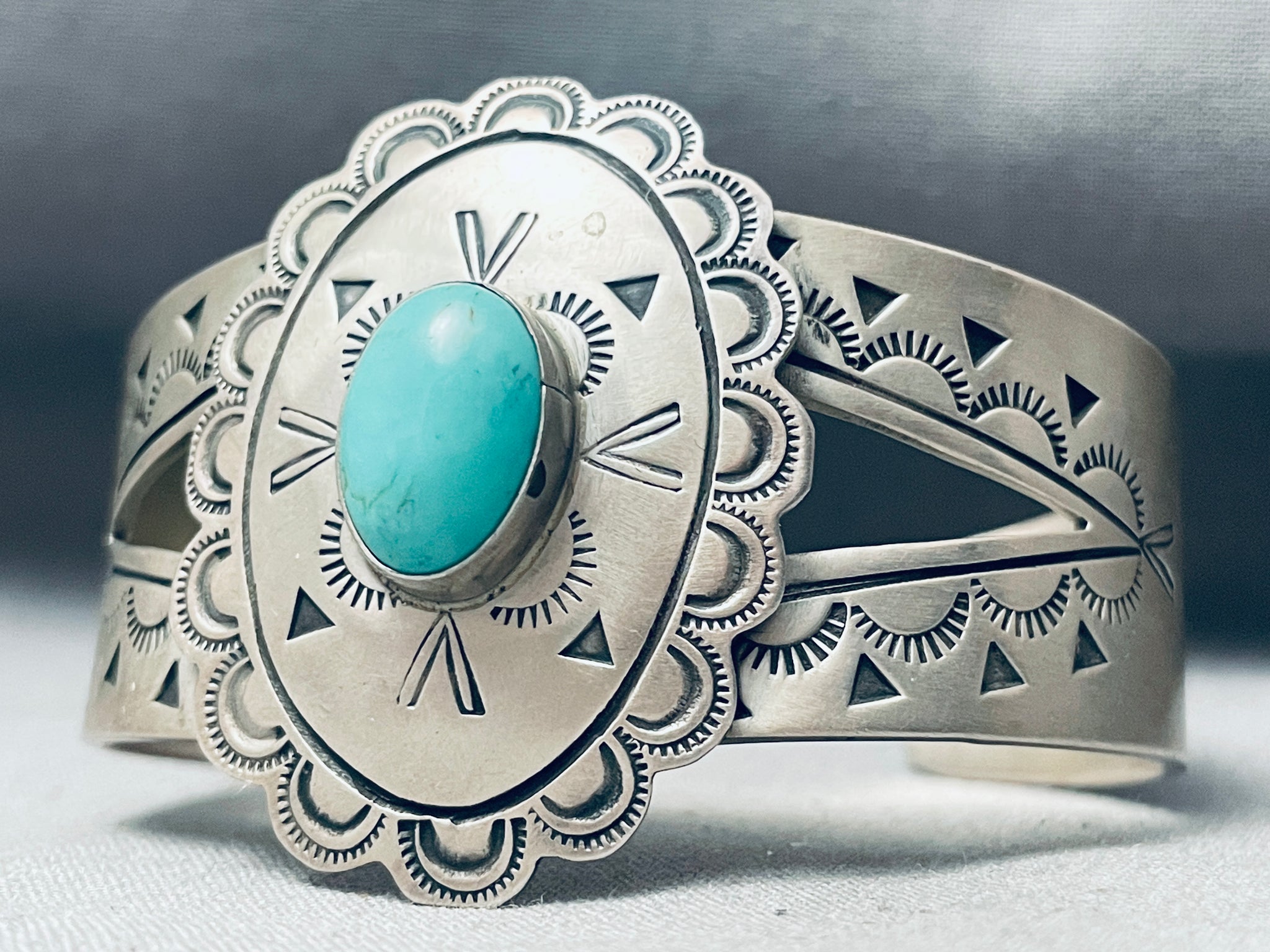Amazing Vintage Native American Navajo Domed Turquoise Concho Sterling Silver Bracelet