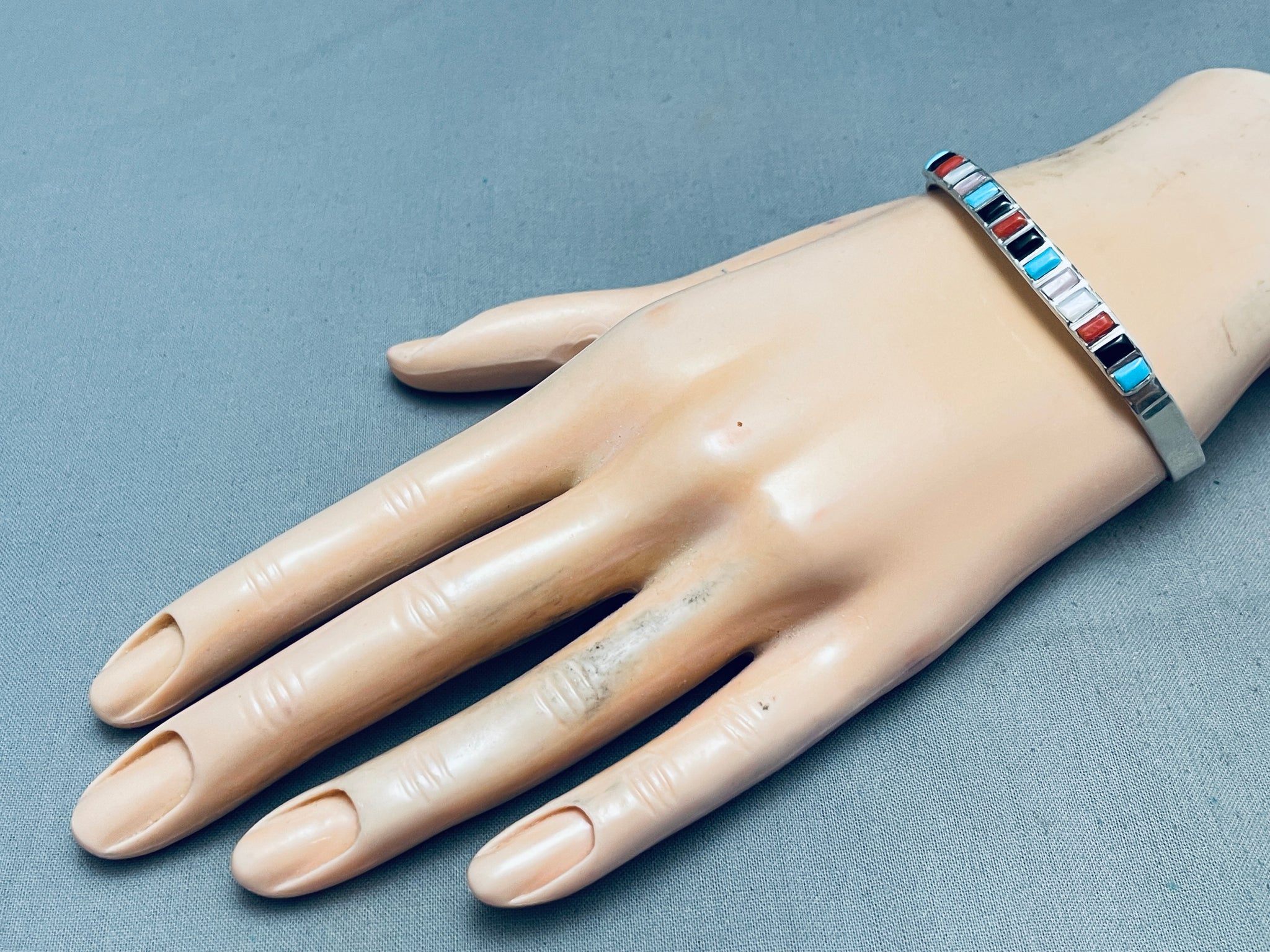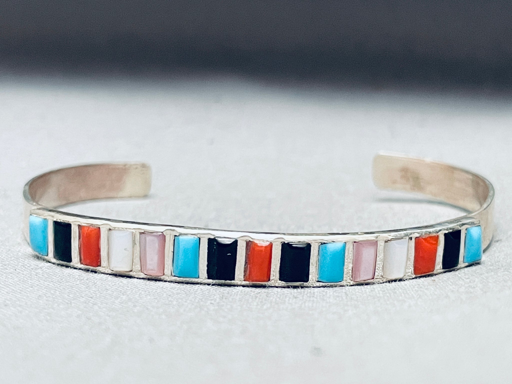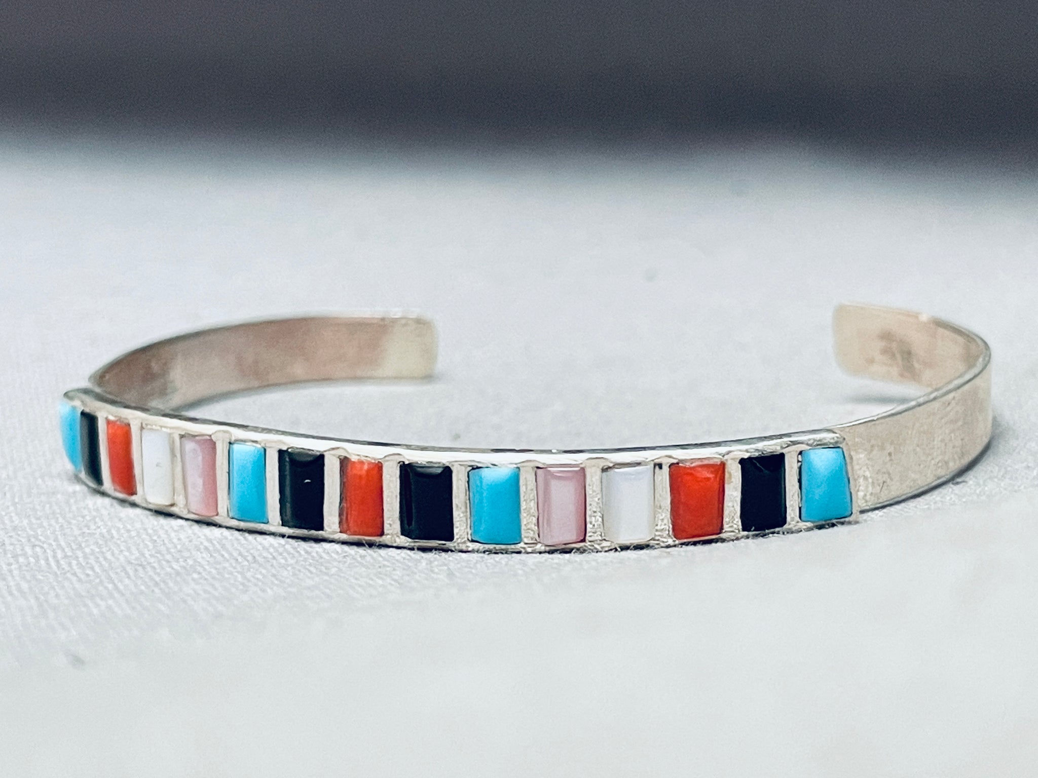 Amazing Vintage Native American Navajo Turquoise Inlay Sterling Silver Bracelet