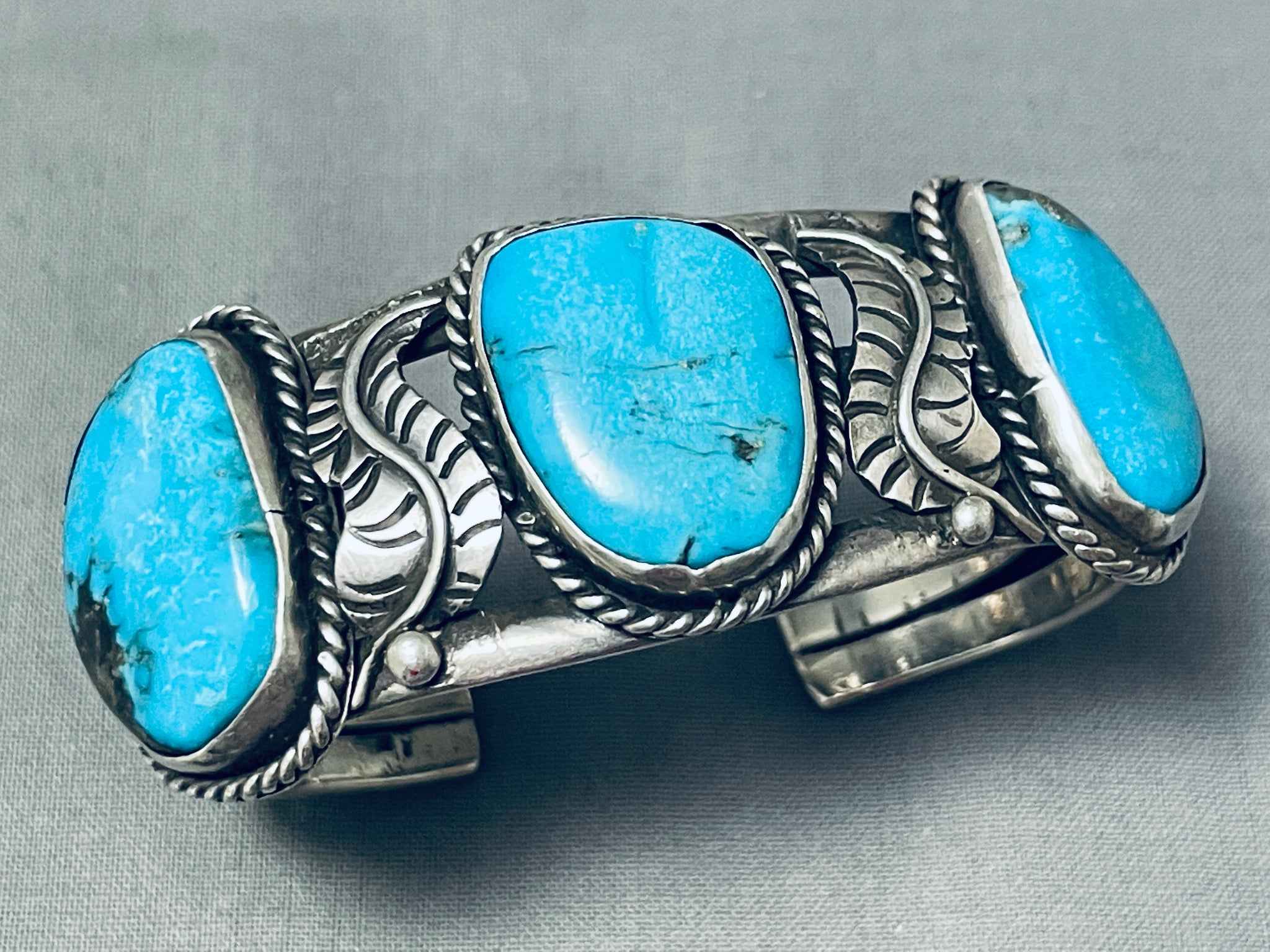 Astounding Vintage Native American Navajo Pilot Mountain Turquoise Sterling Silver Bracelet