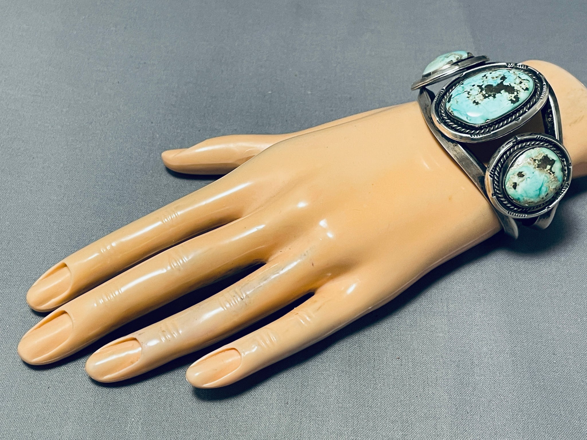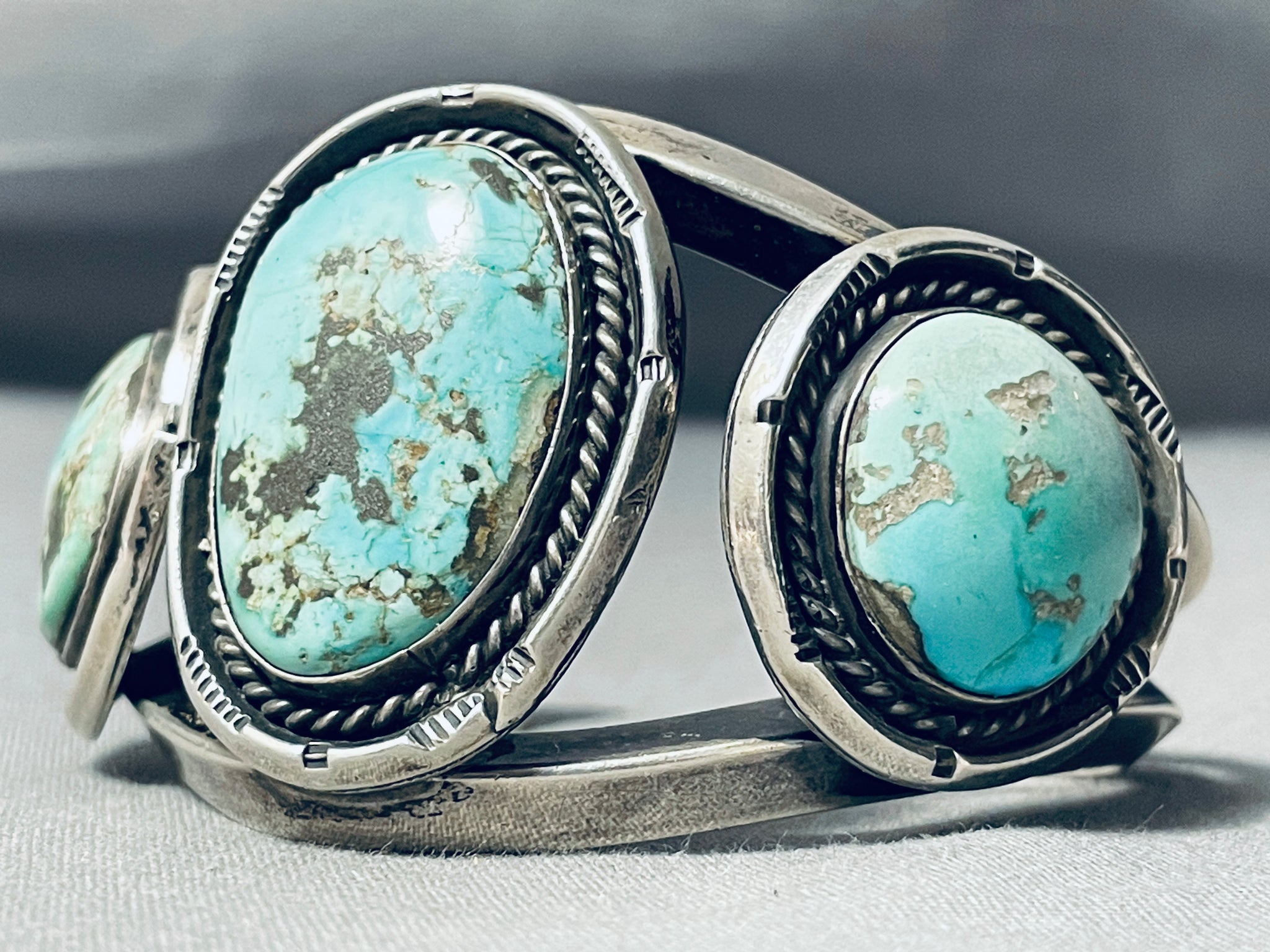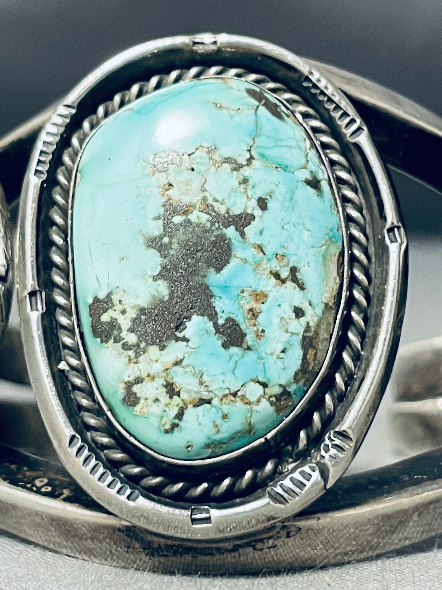 Authentic Vintage Native American Navajo Pilot Mountain Turquoise Sterling Silver Bracelet