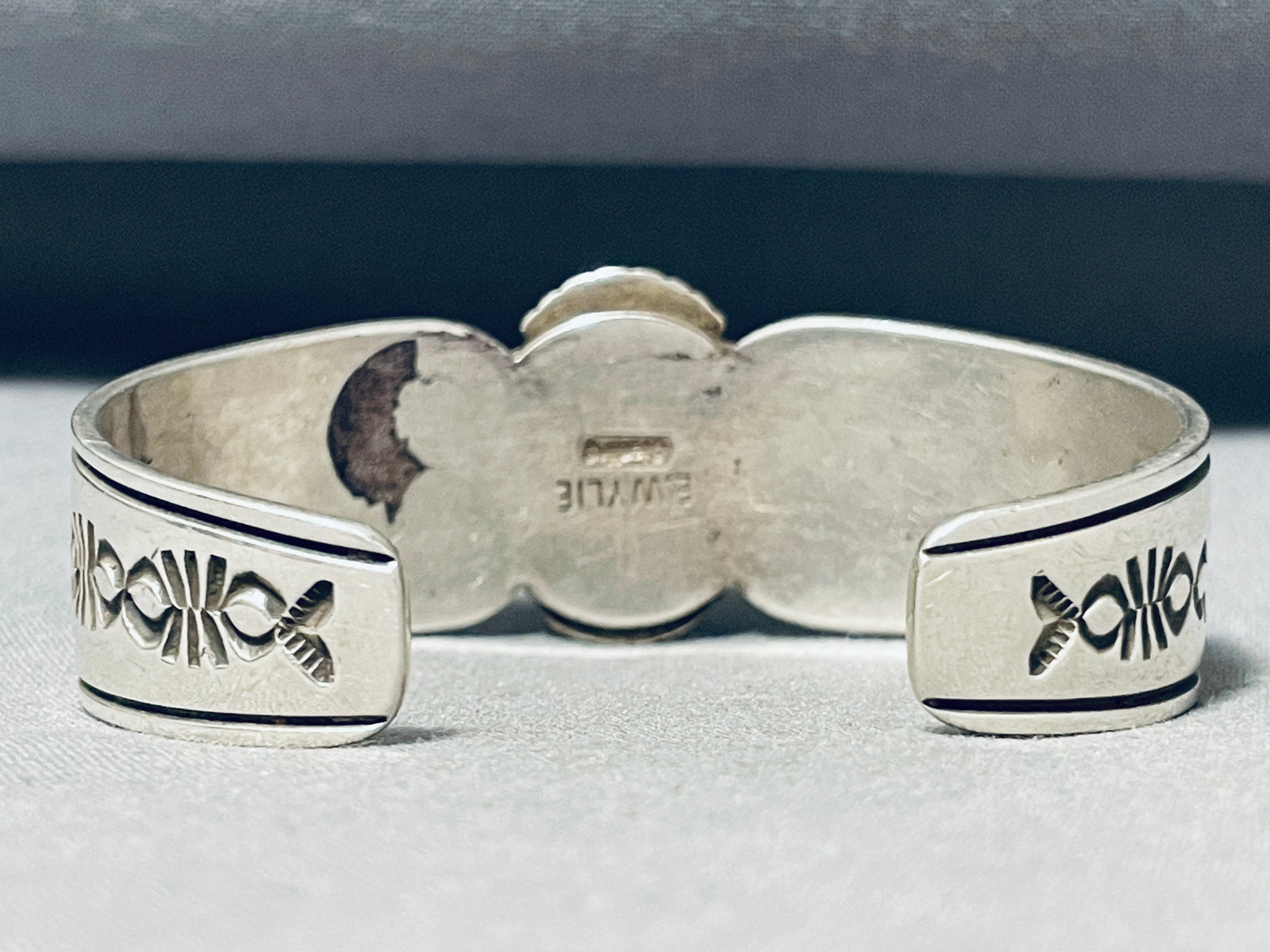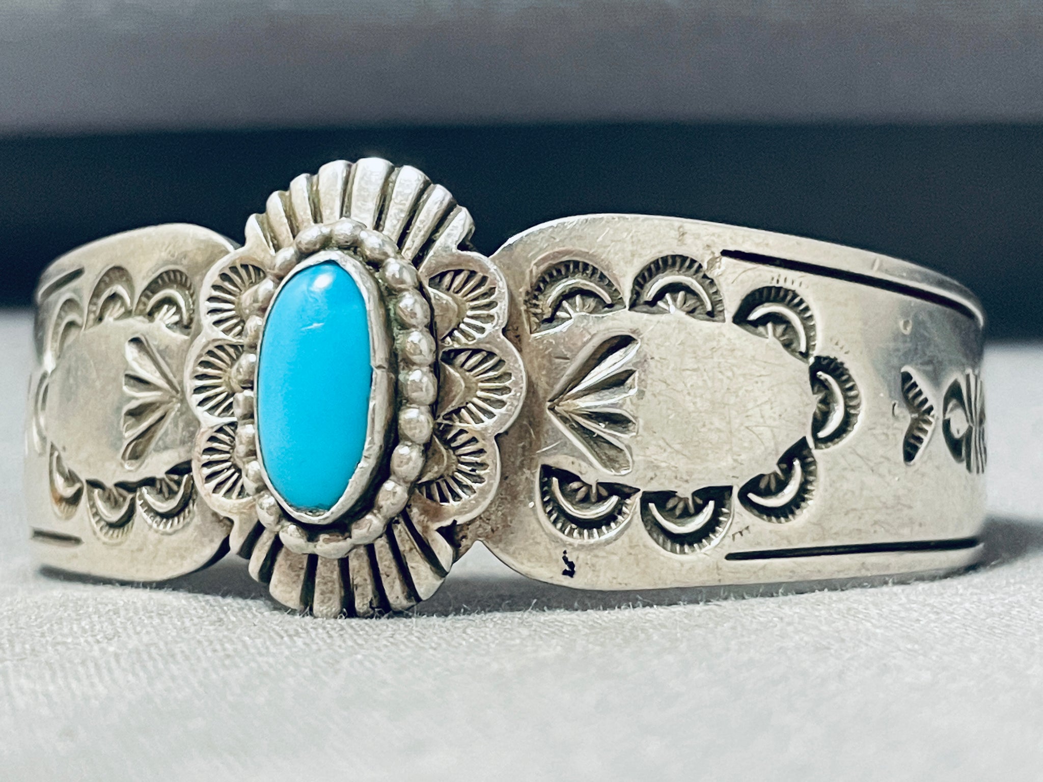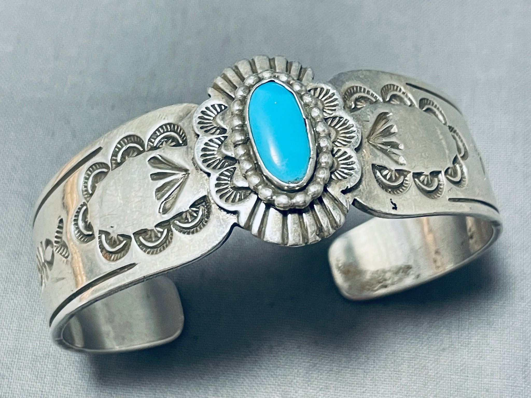 Beautiful Vintage Signed Native American Navajo Blue Gem Turquoise Sterling Silver Bracelet