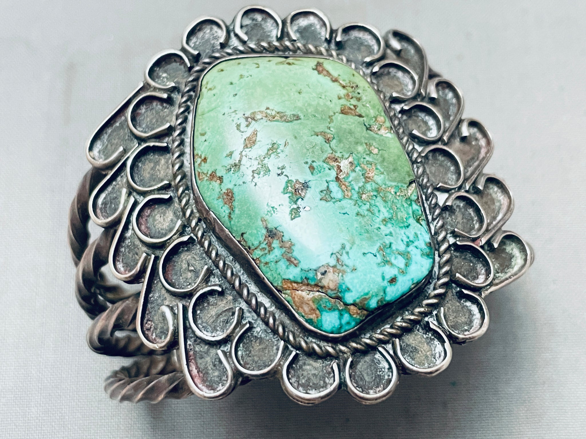 Best Heavy Coil Early Vintage Native American Navajo Royston Turquoise Sterling Silver Bracelet