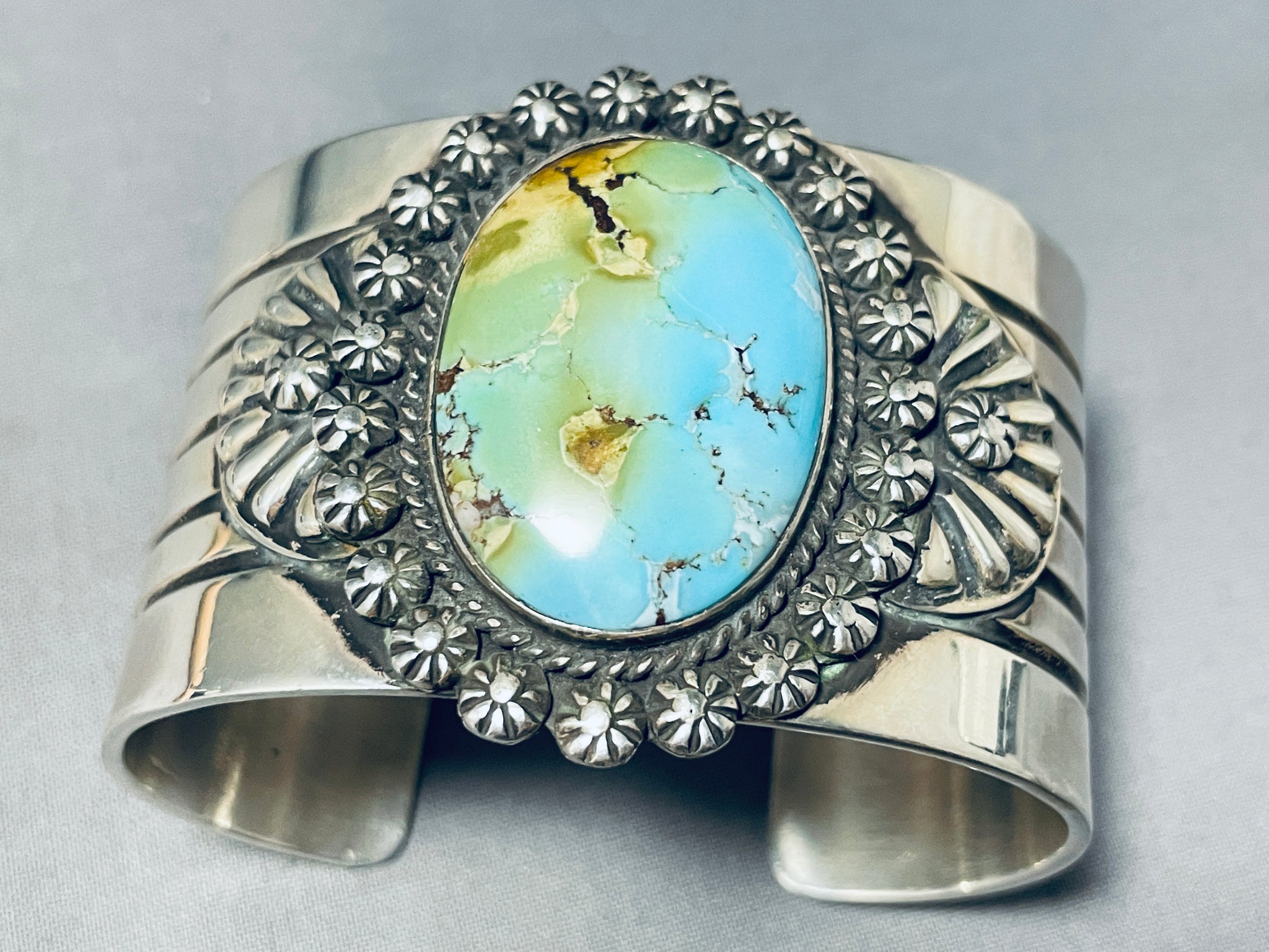 Best Native American Navajo Rob Yellowhorse Turquoise Sterling Silver Heavy Bracelet