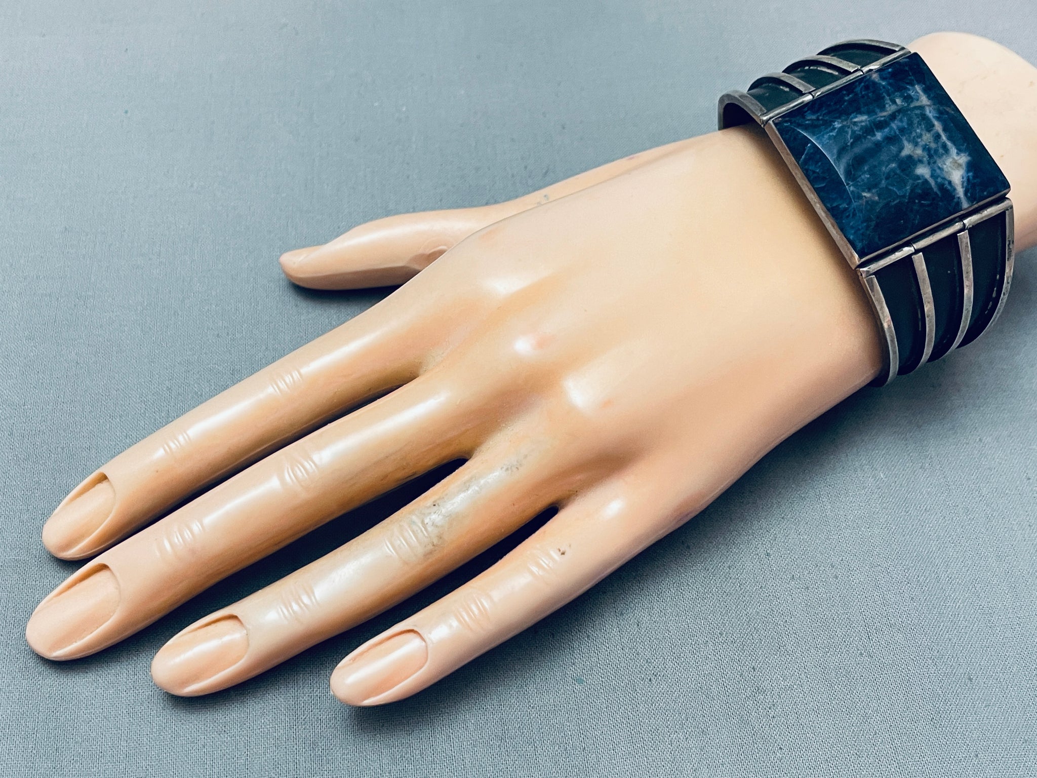 Best Vintage Southwest Sterling Silver Lapis Clasp Hinge Bracelet