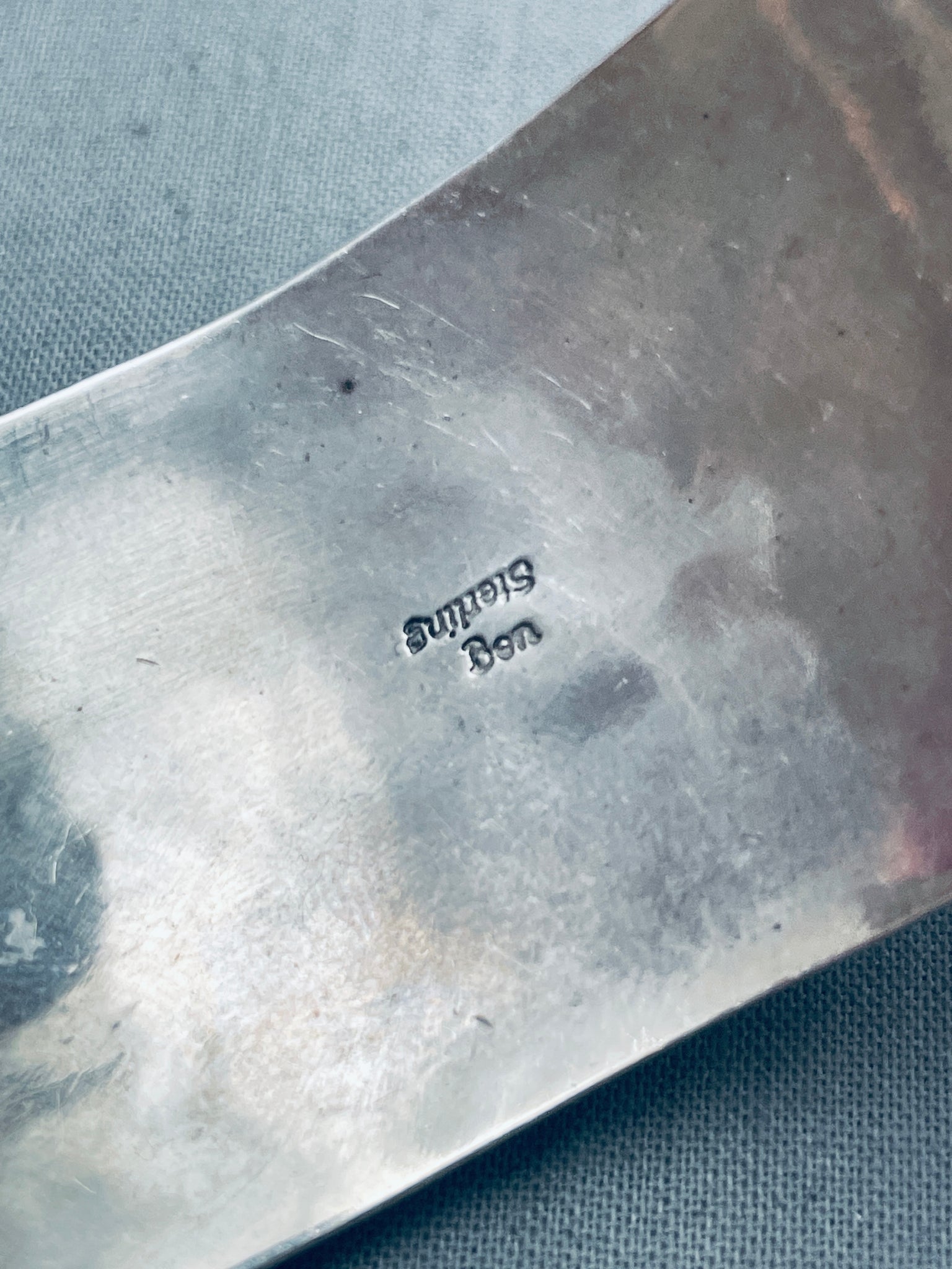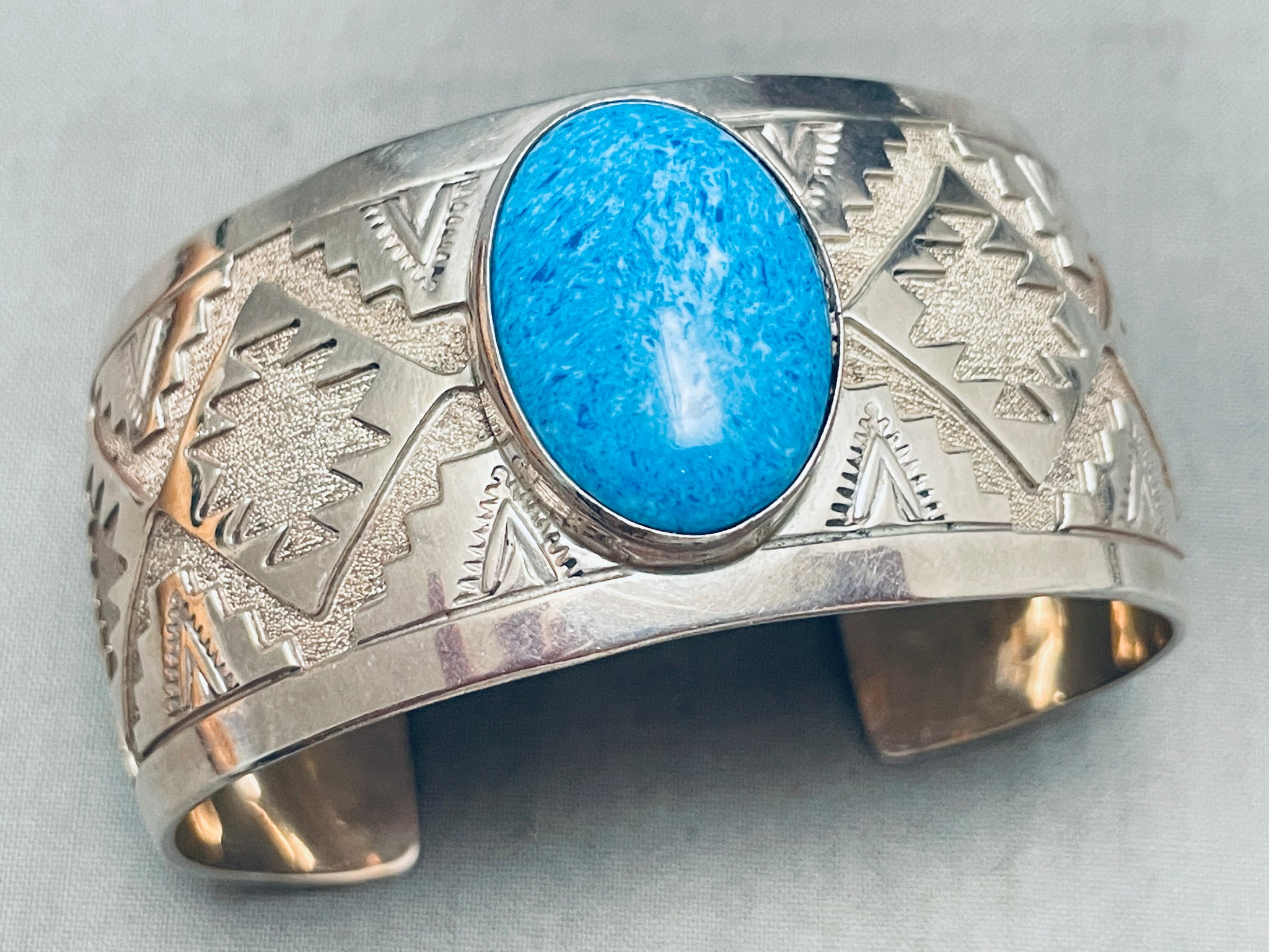 Big Lapis Vintage Native American Navajo Geomtric Sterling Silver Bracelet Cuff