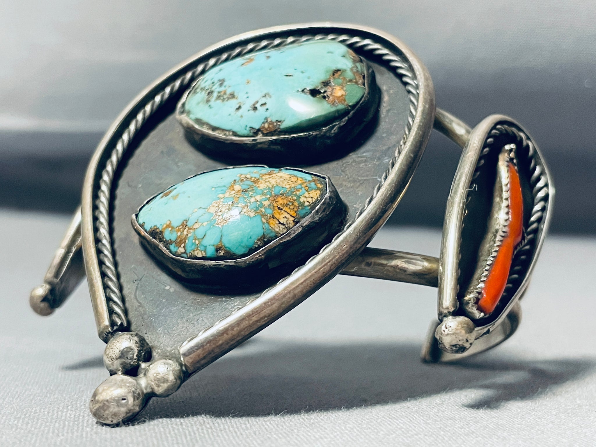 Big Museum Quality Vintage Native American Navajo Turquoise Sterling Silver Bracelet