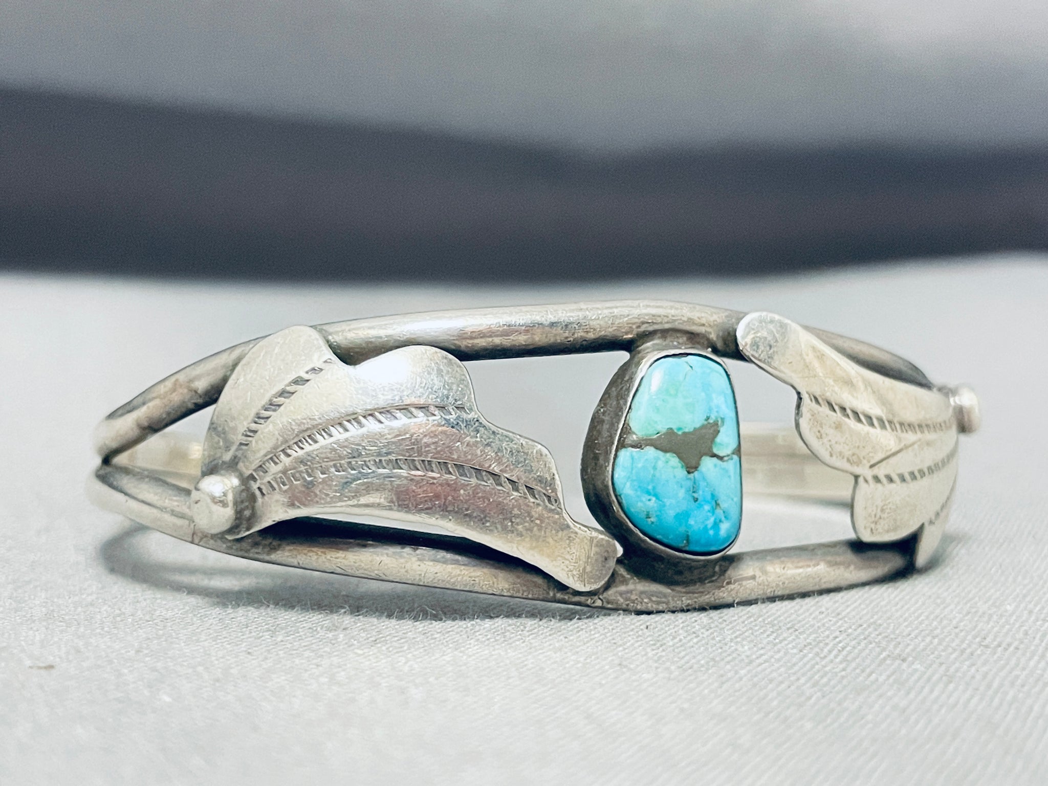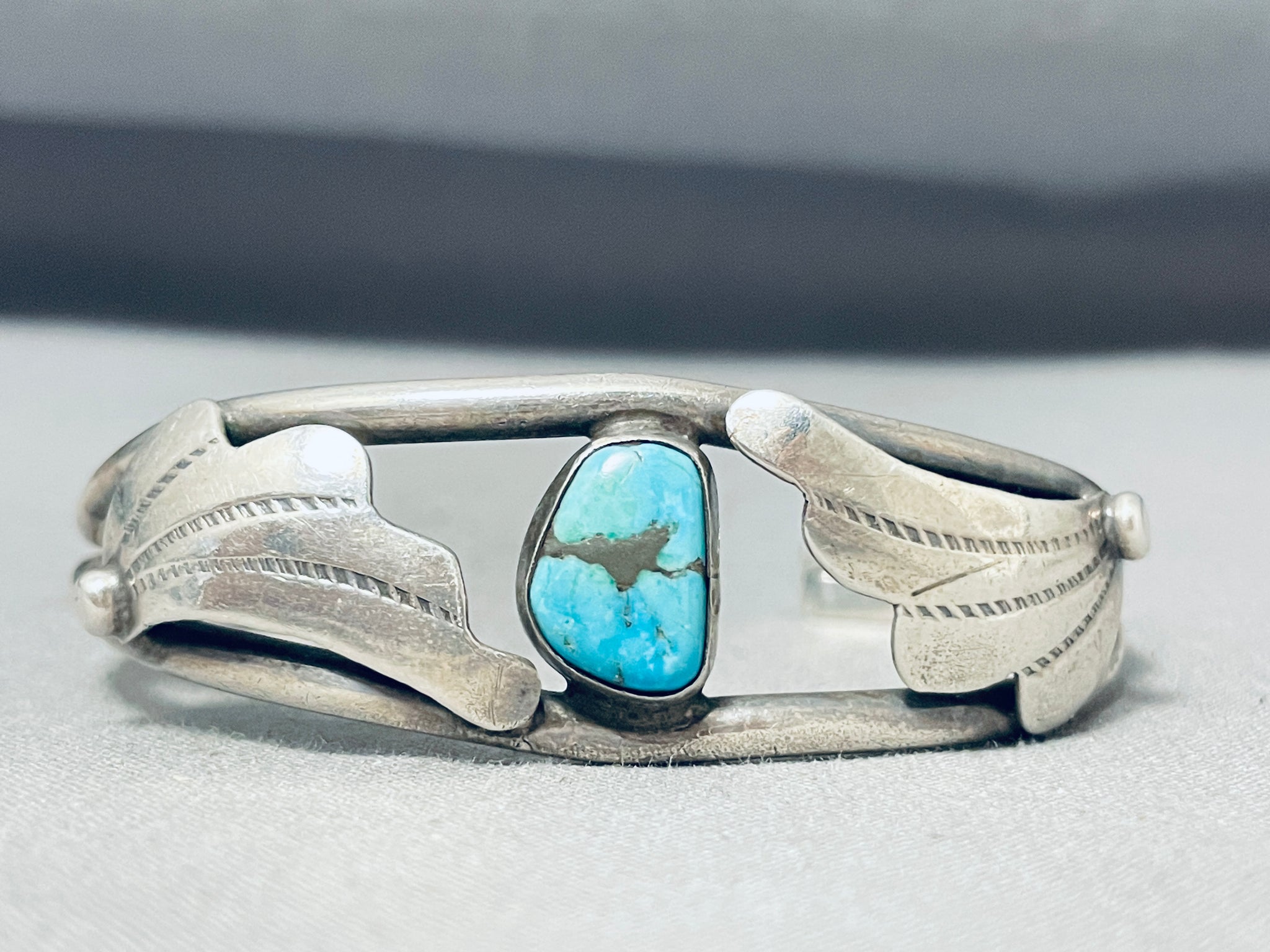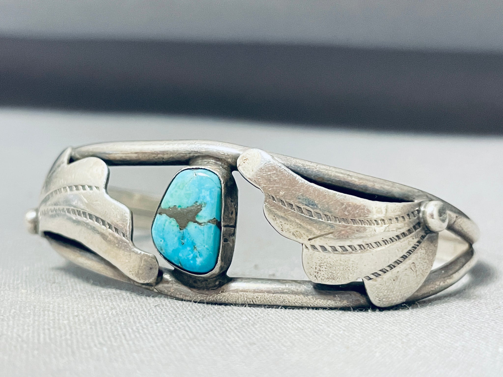 Breathtaking Vintage Native American Navajo Pilot Mountain Turquoise Sterling Silver Bracelet