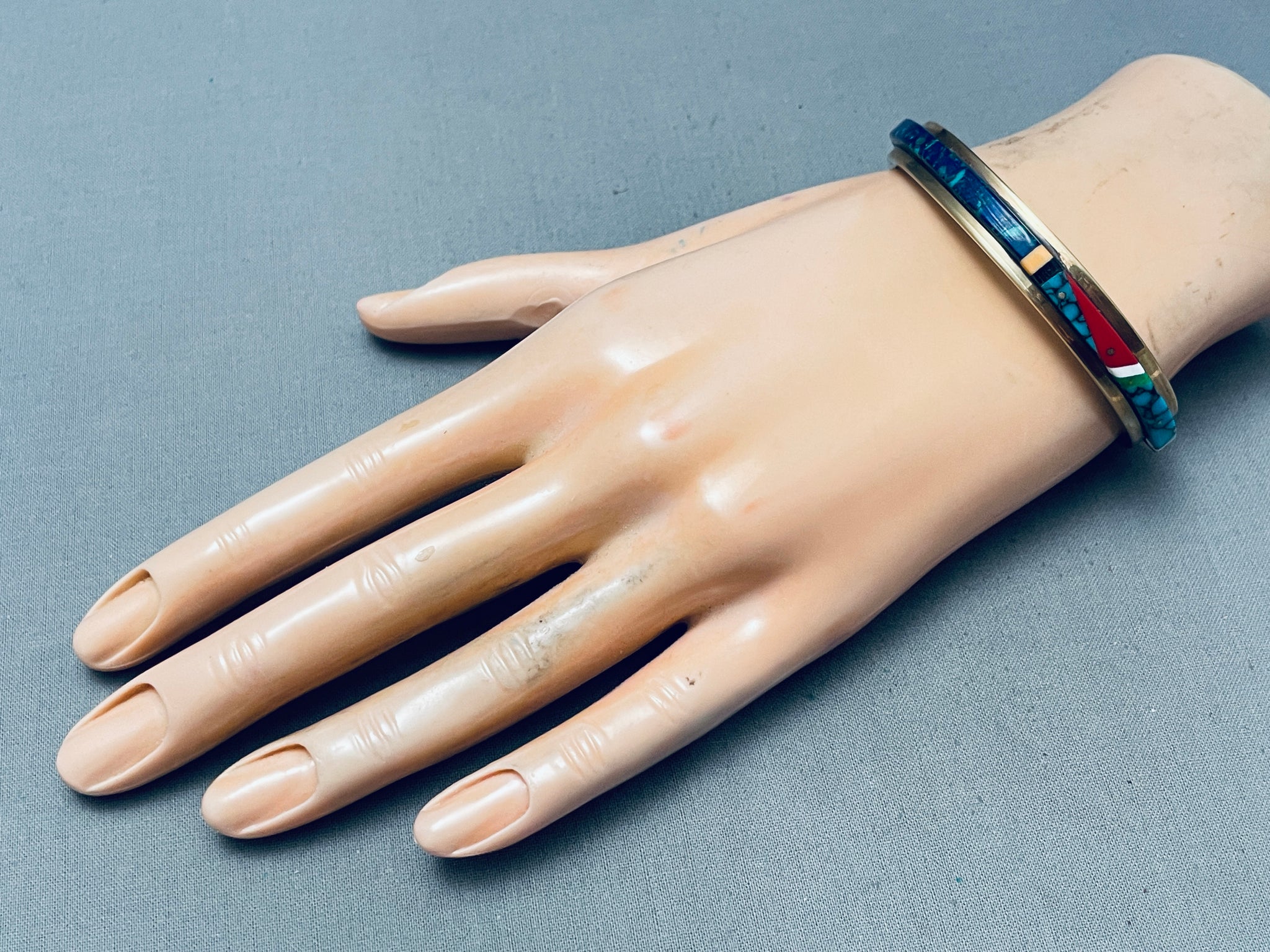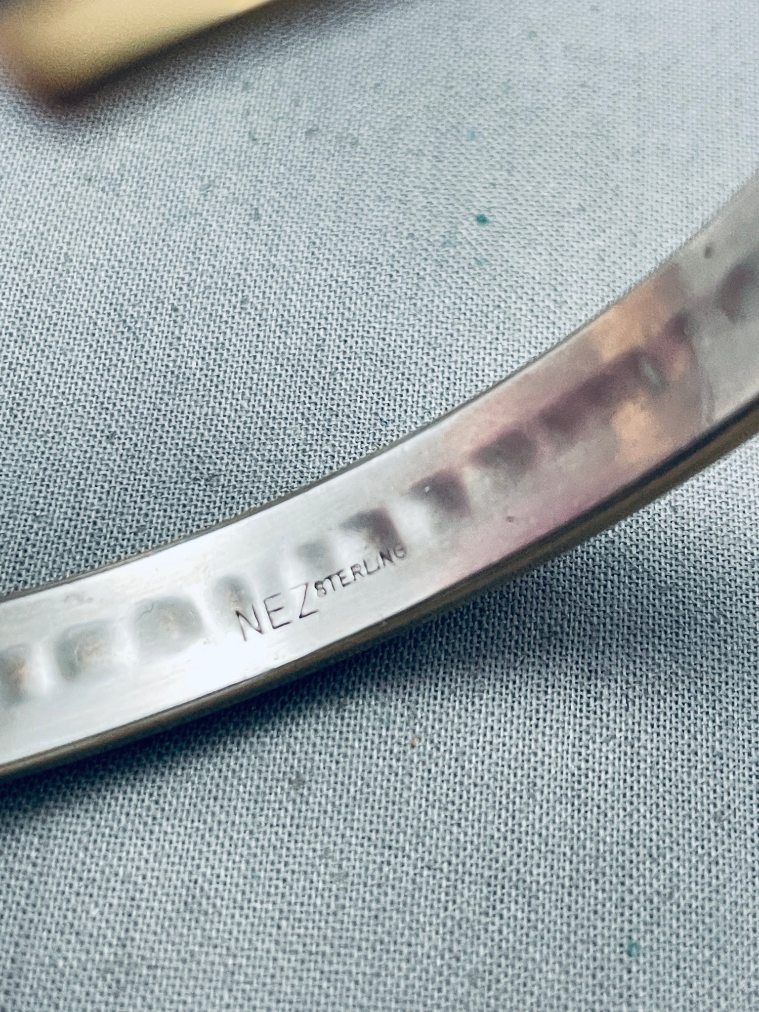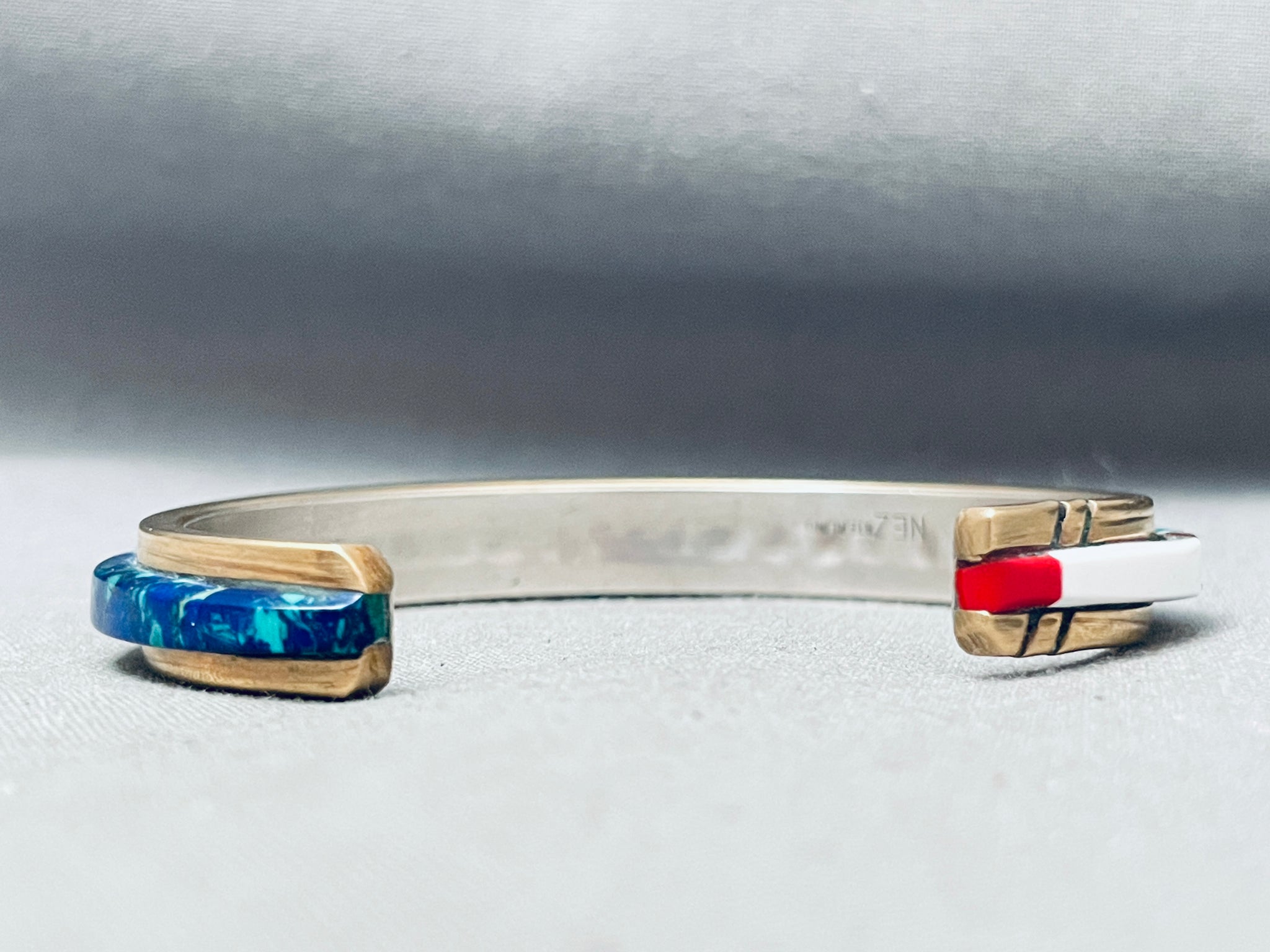 Carol Nez Vintage Native American Navajo Inlay Sterling Silver Bracelet Cuff