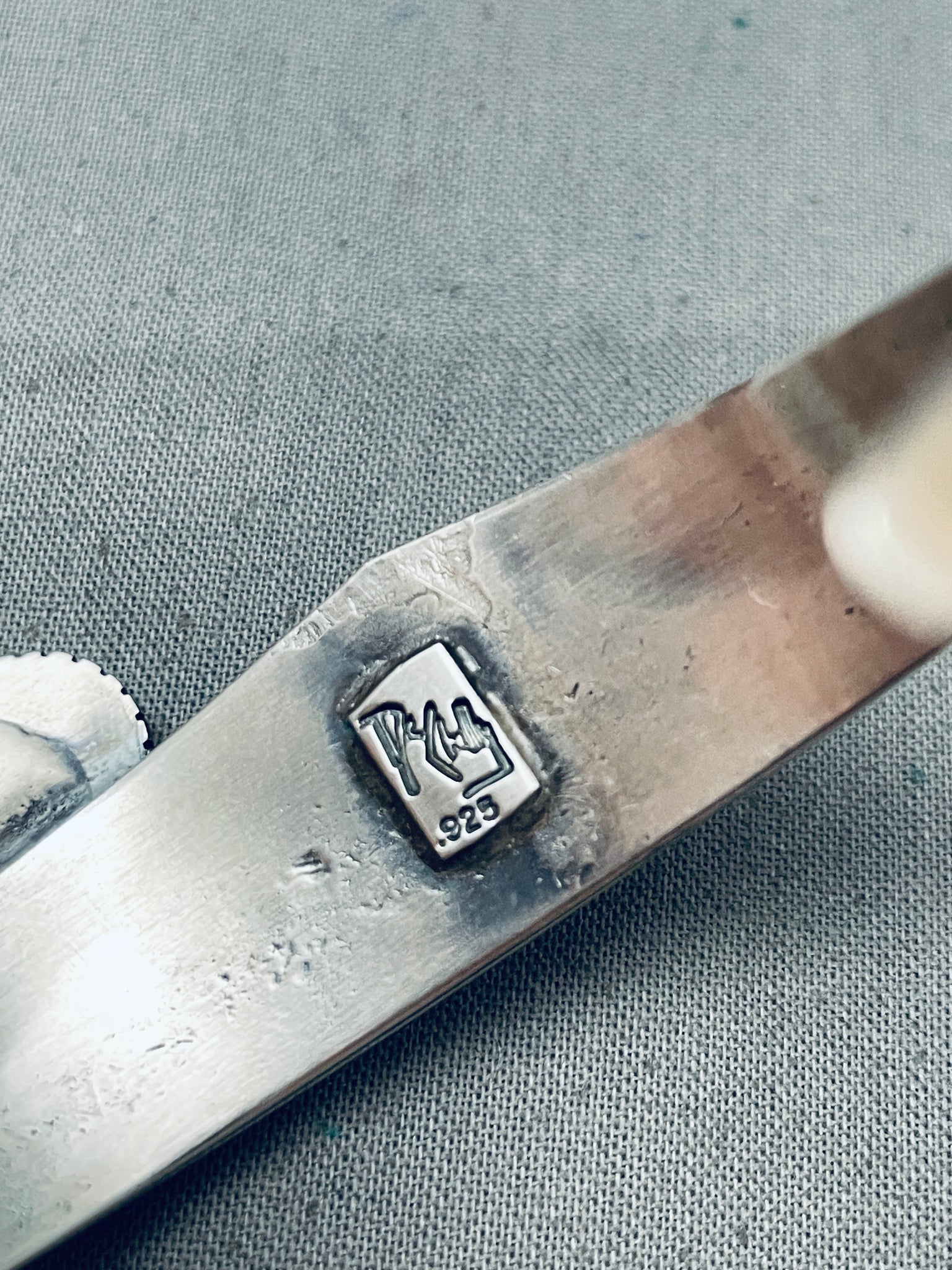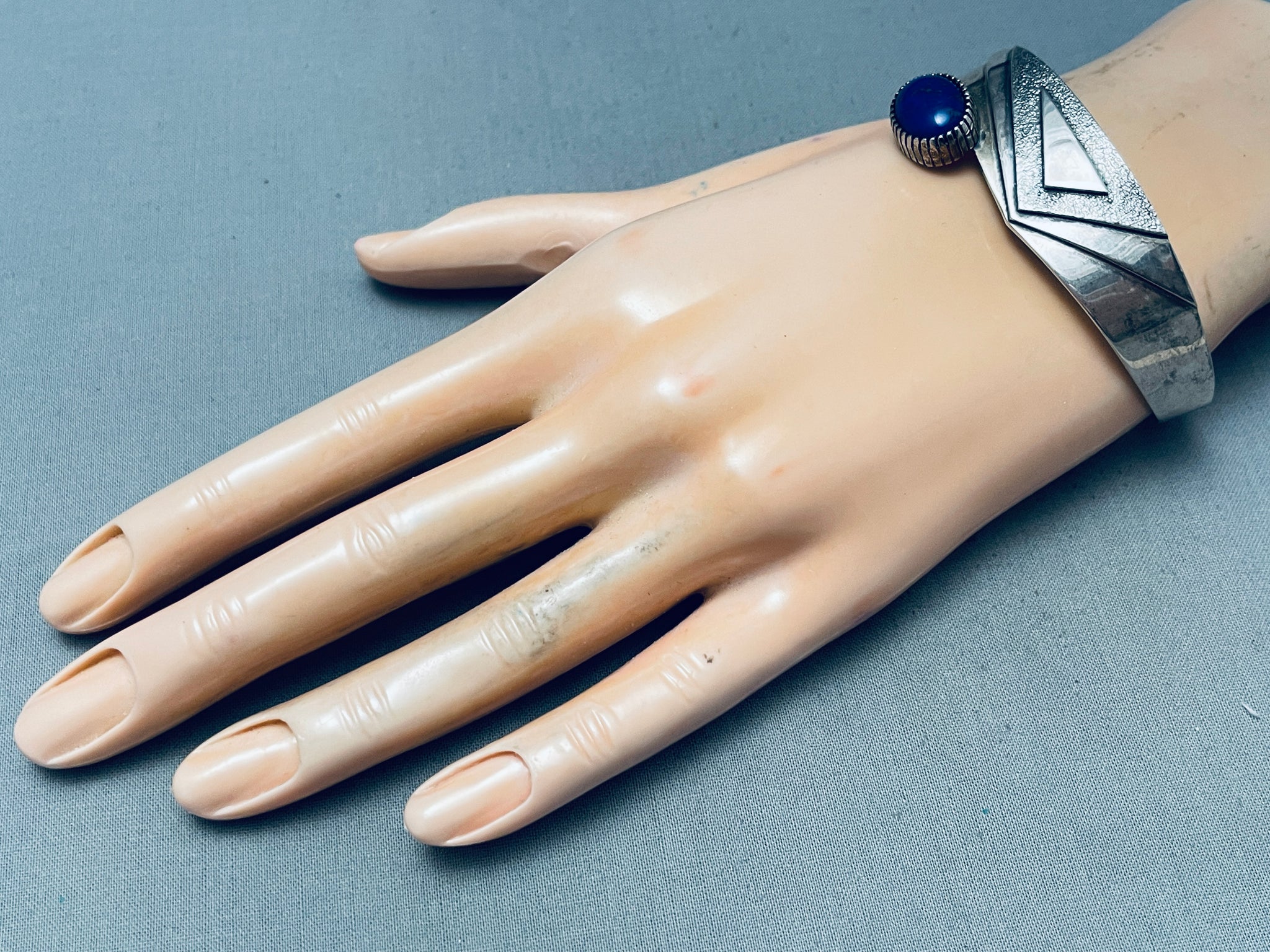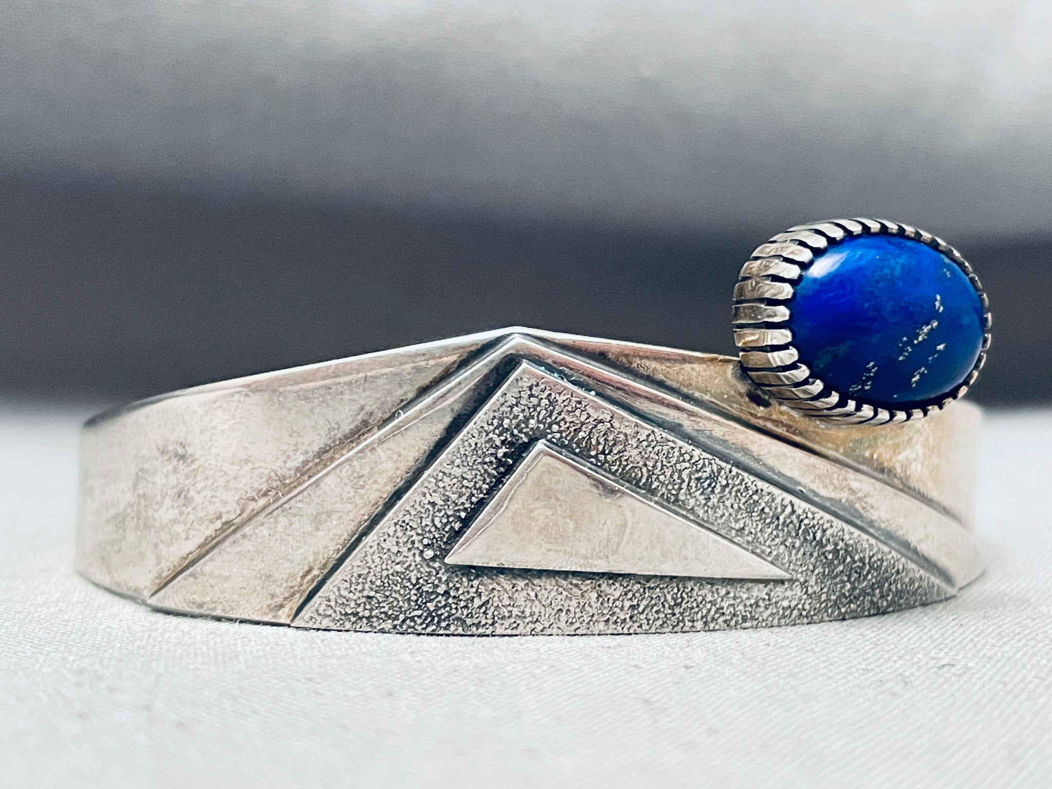 Cool Geomtric Vintage Native American Navajo Lapis Sterling Silver Bracelet
