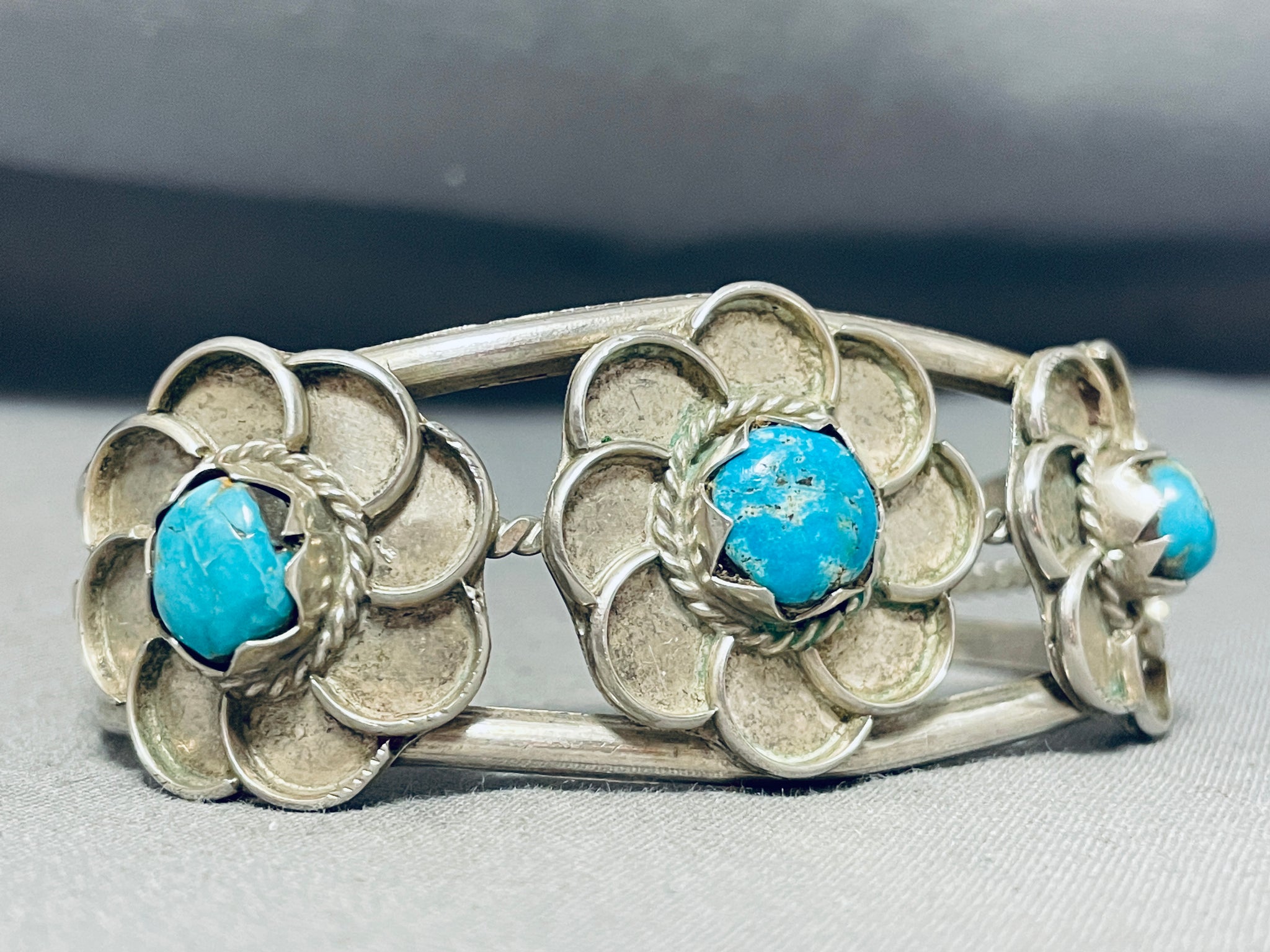 Daisy Love Vintage Native American Navajo Turquoise Sterling Silver Bracelet Old
