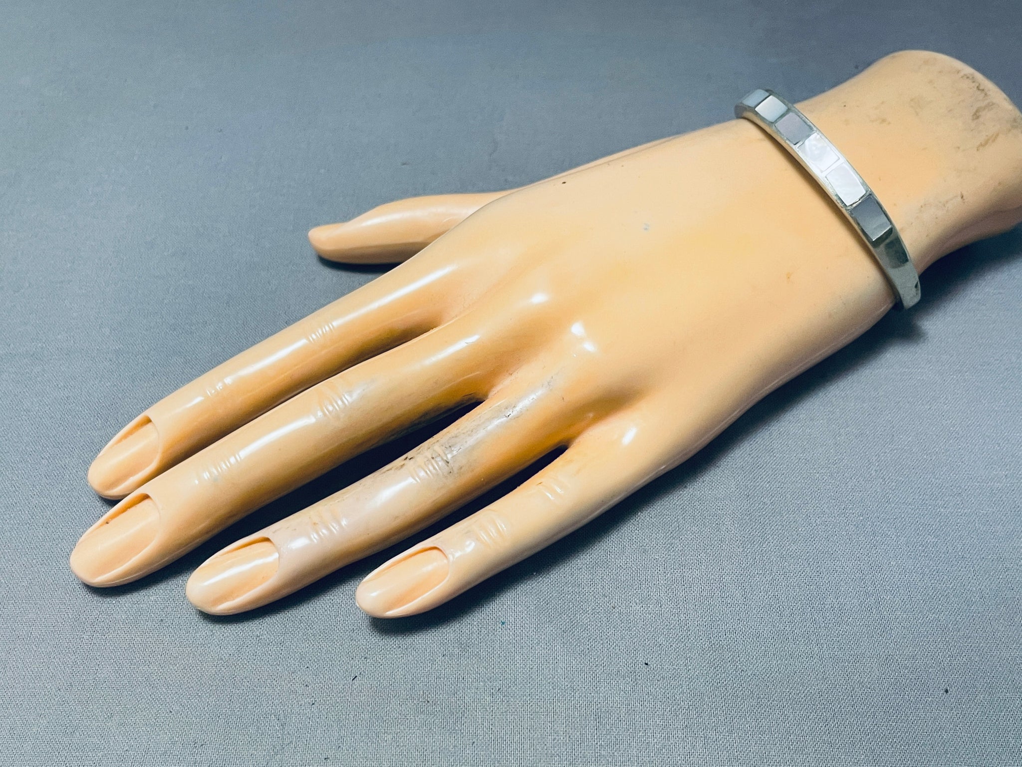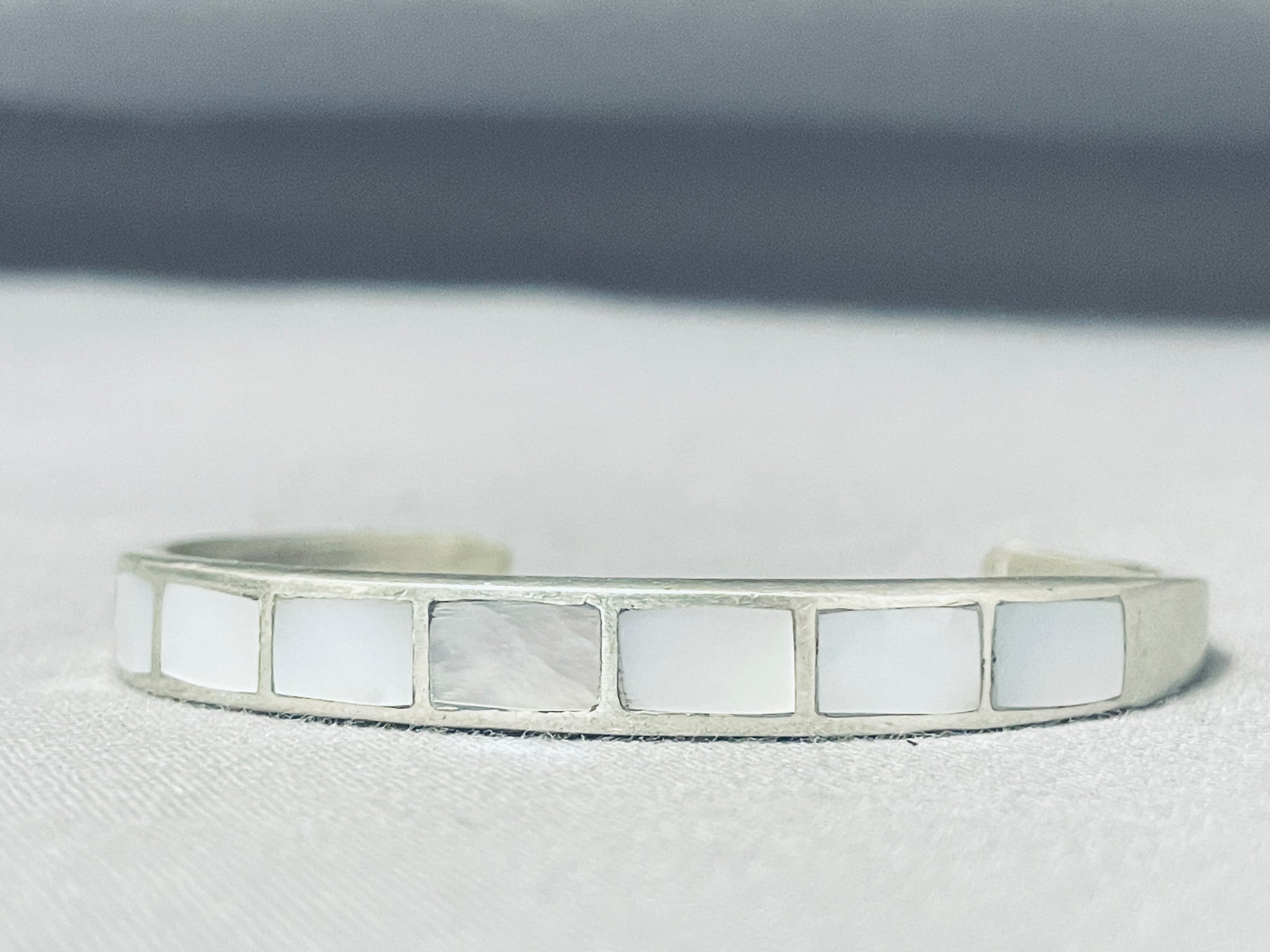Dazzling Vintage Native American Navajo Mother Of Pearl Sterling Silver Bracelet