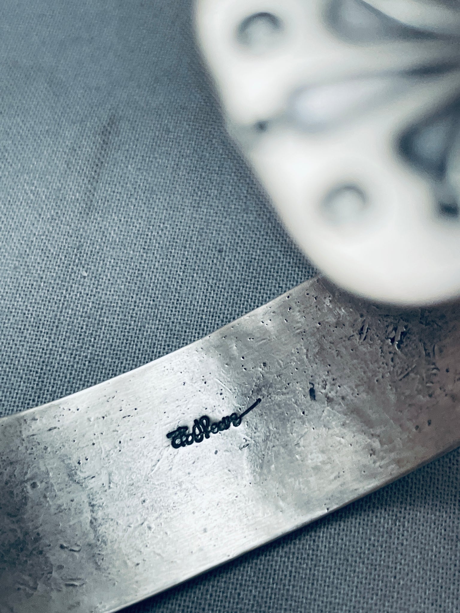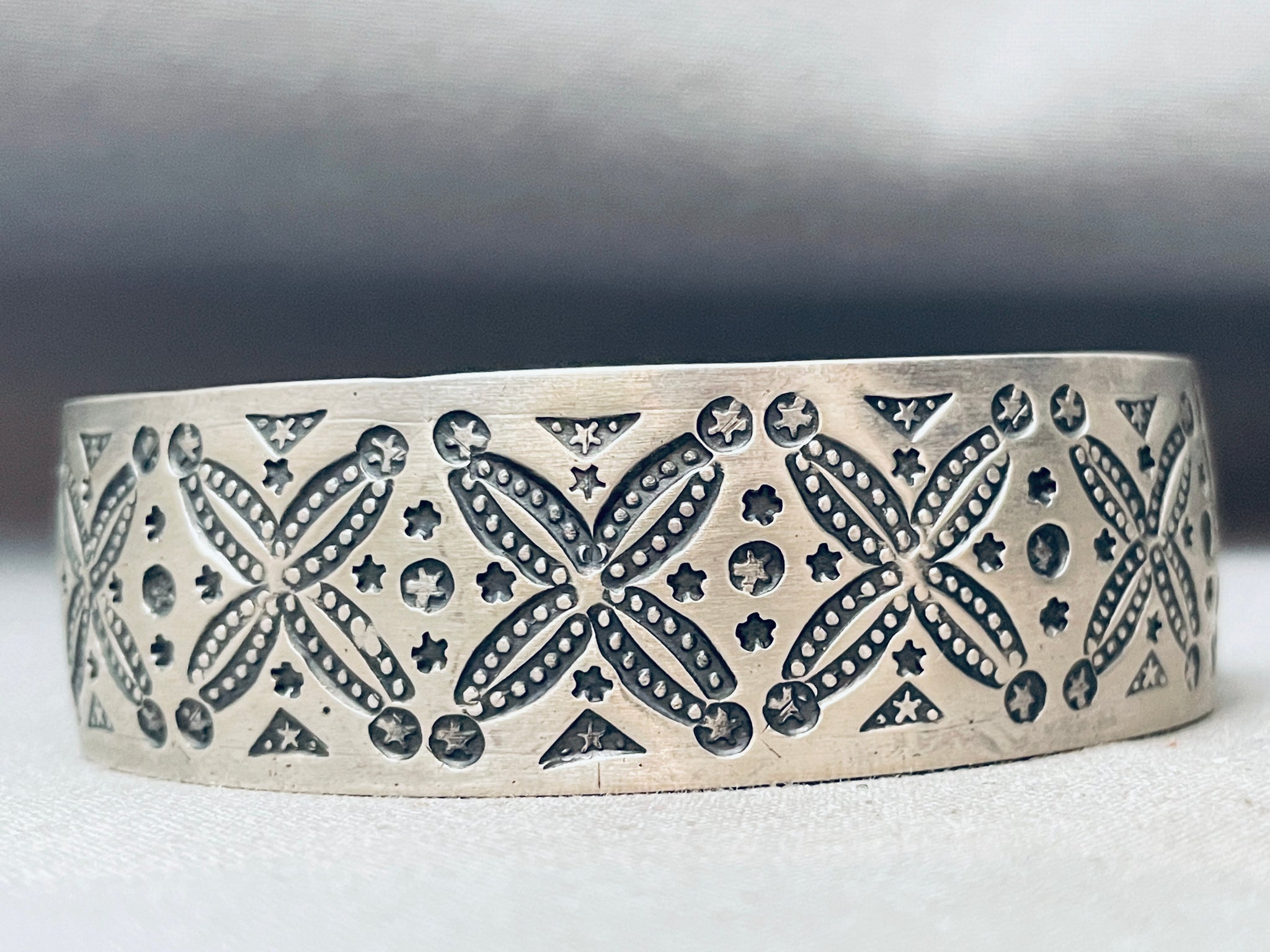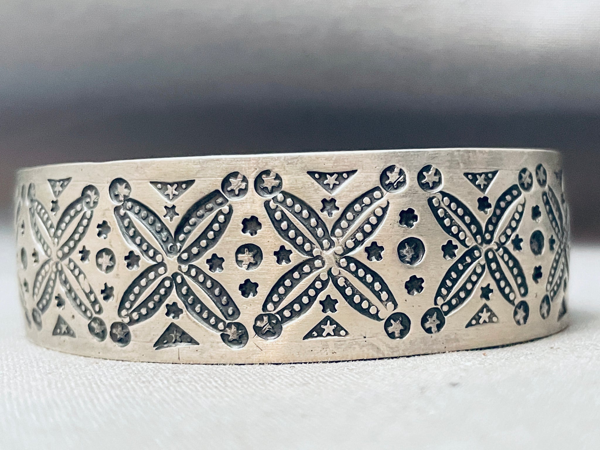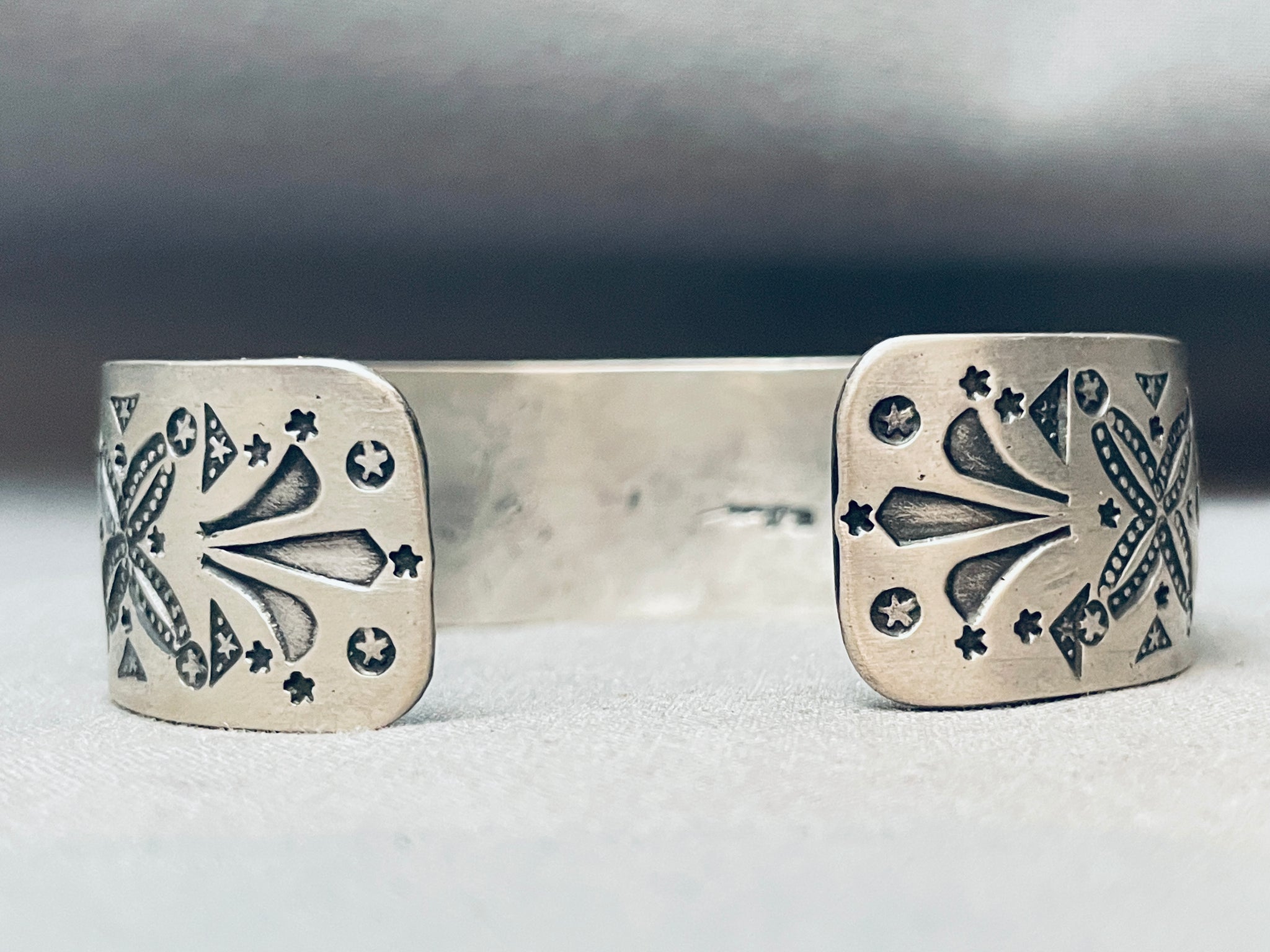 Detailed Flower Vintage Native American Navajo Sterling Silver Bracelet Cuff