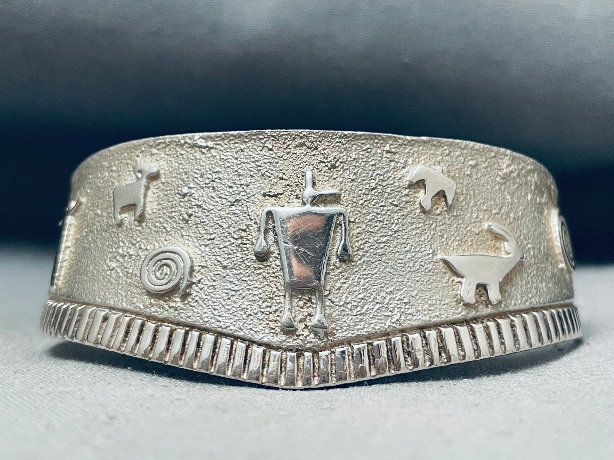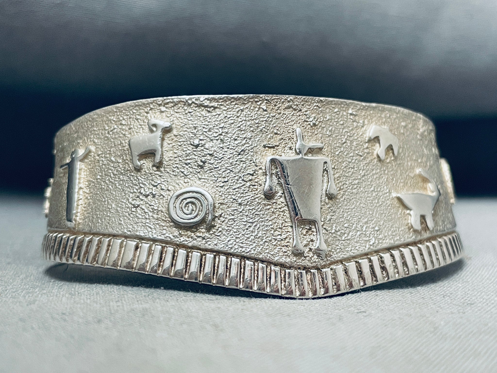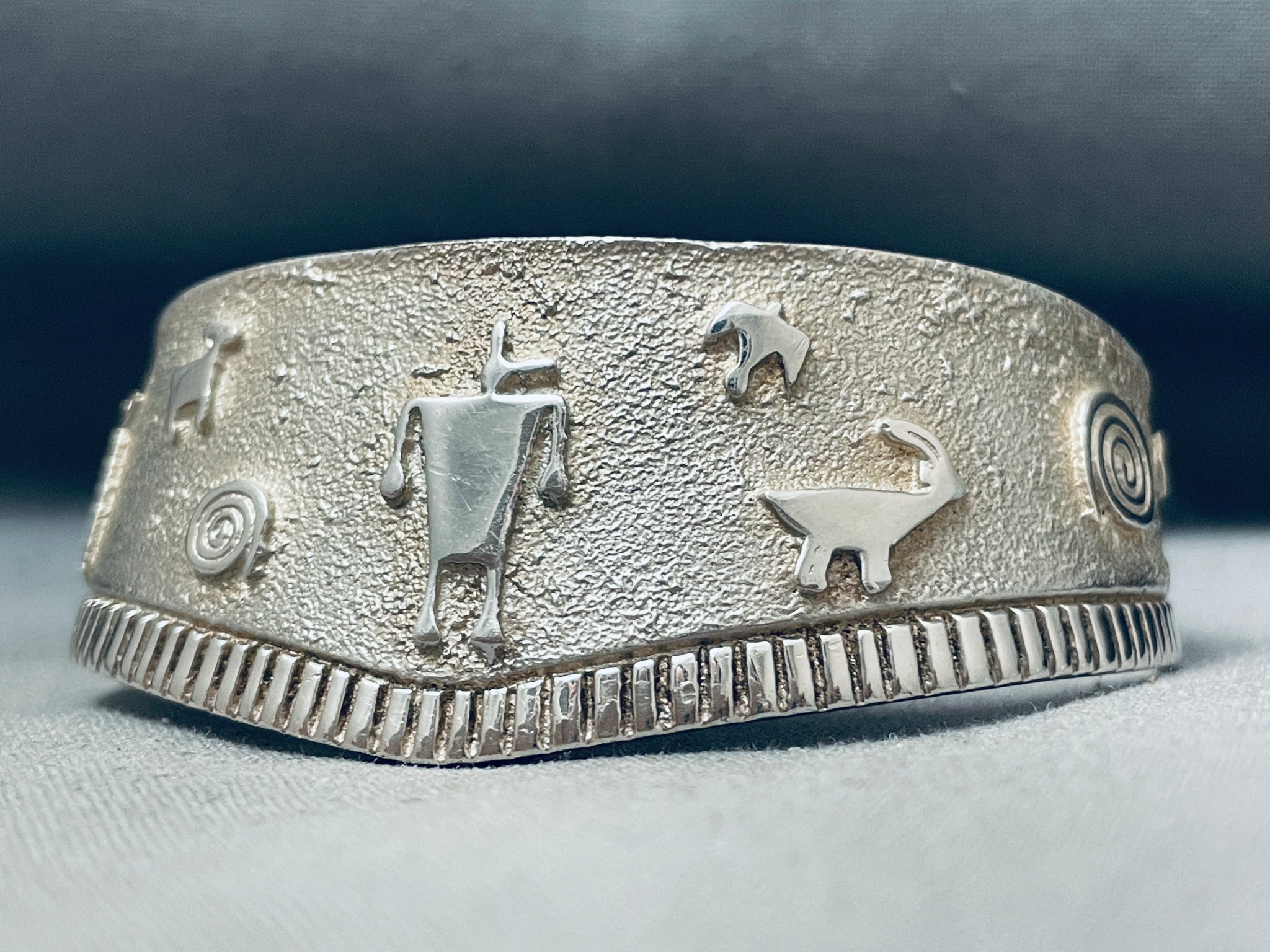 Detailed Petroglyph Vintage Sterling Silver Bracelet