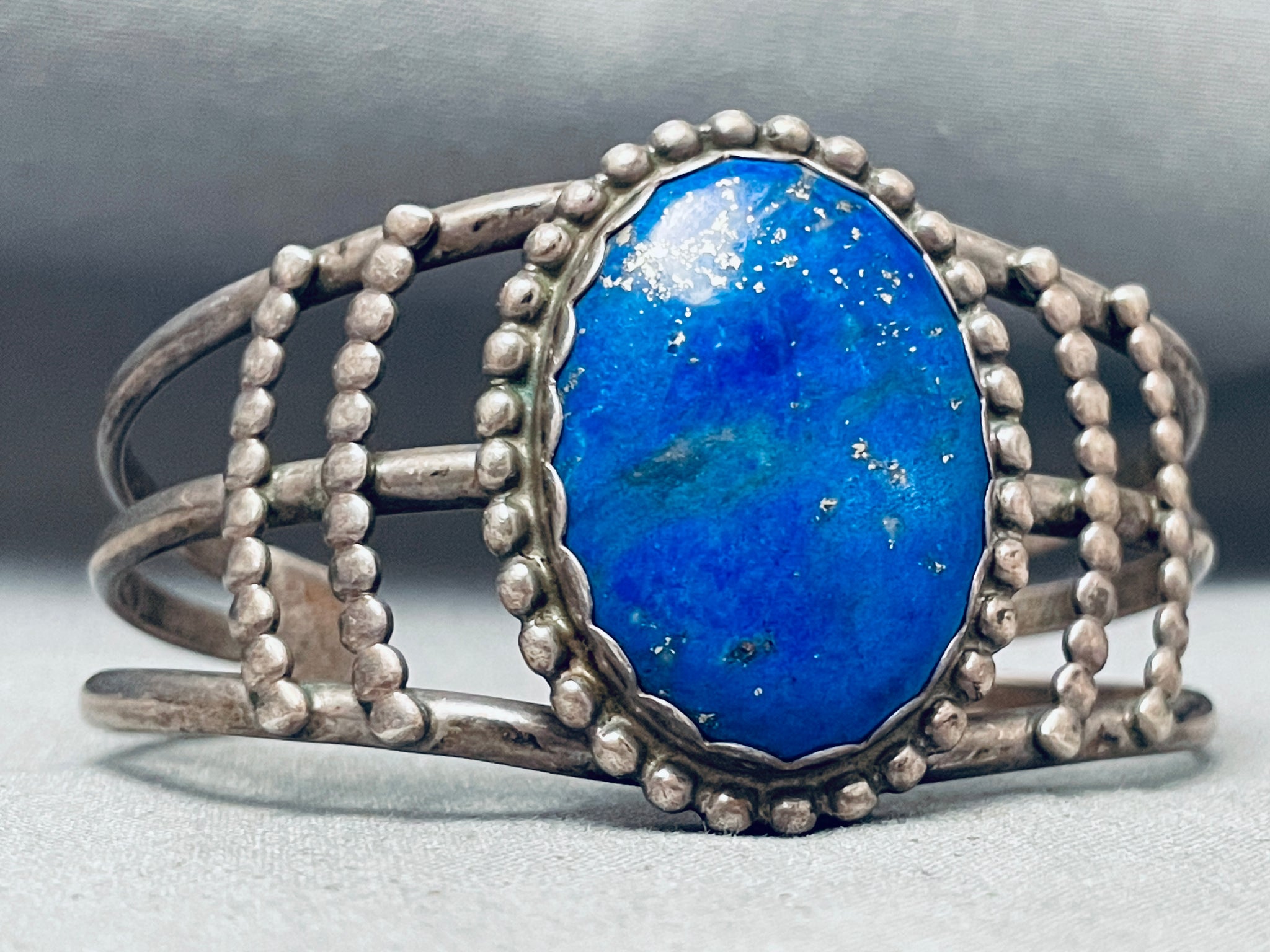Domed Lapis Vintage Native American Navajo Sterling Silver Bracelet Cuff Old