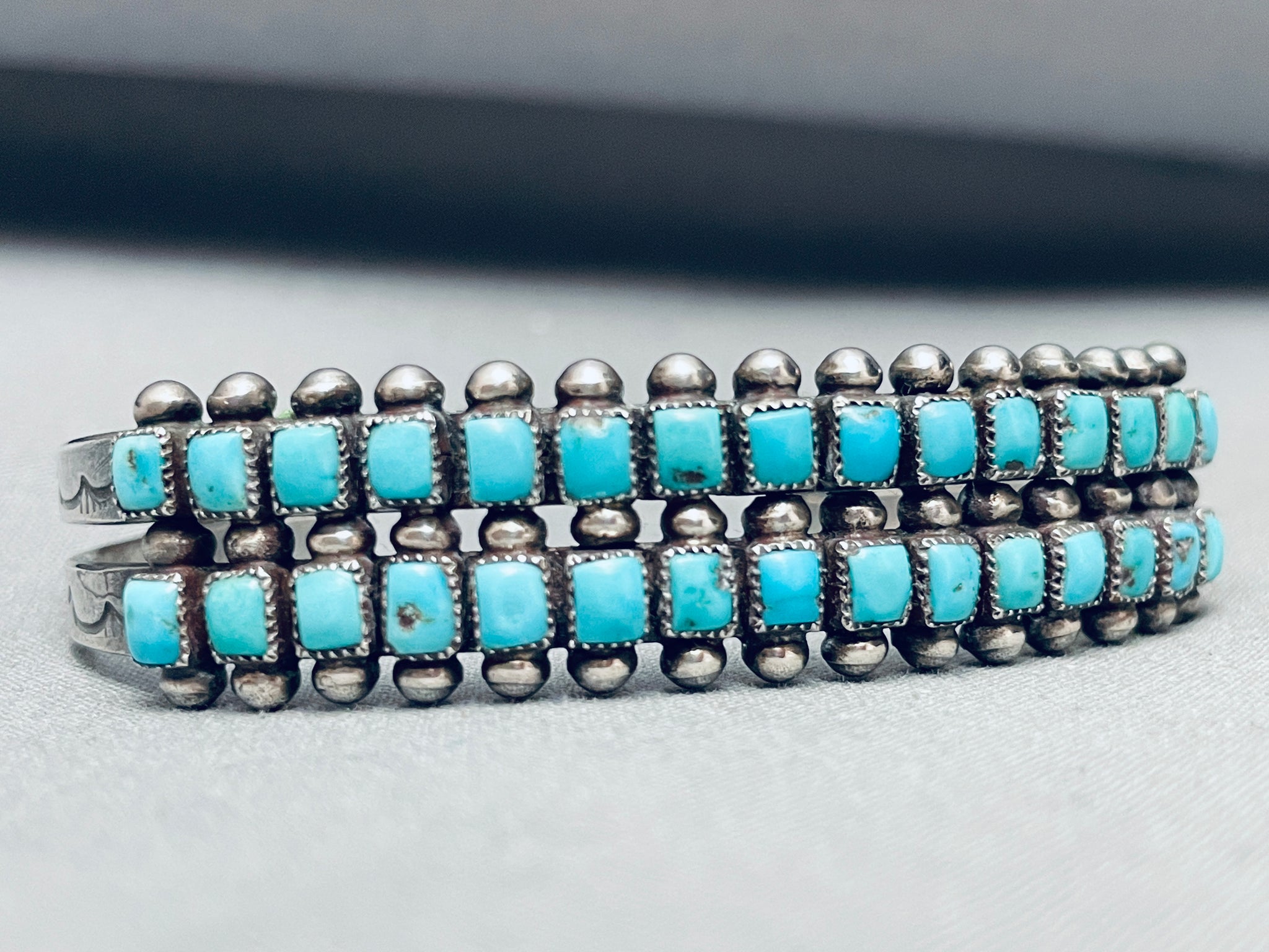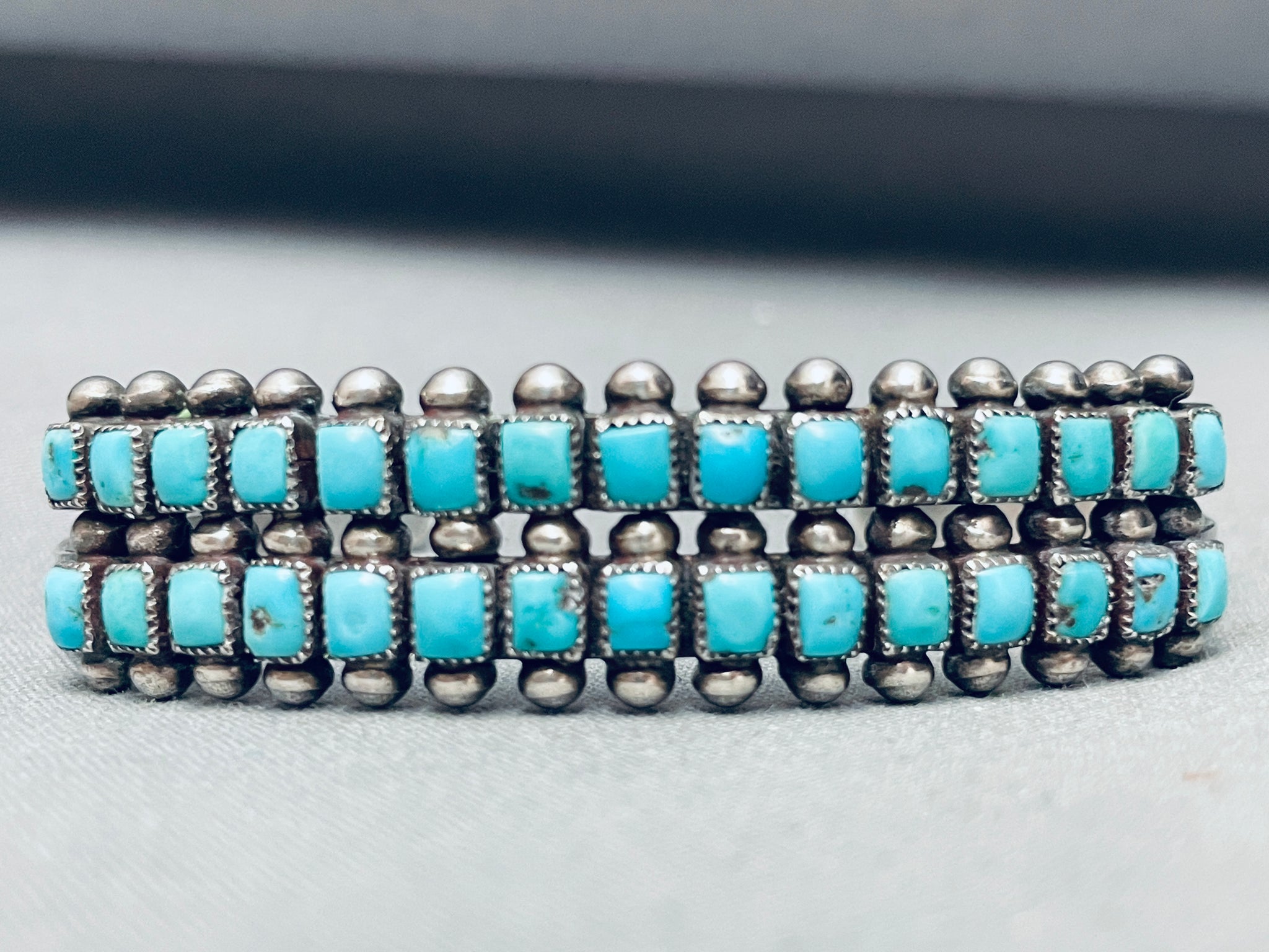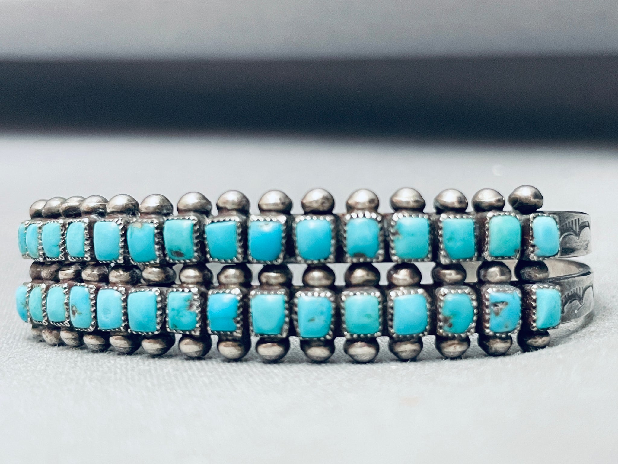 Early 1930's Vintage Native American Zuni Turquoise Sterling Silver Bracelet