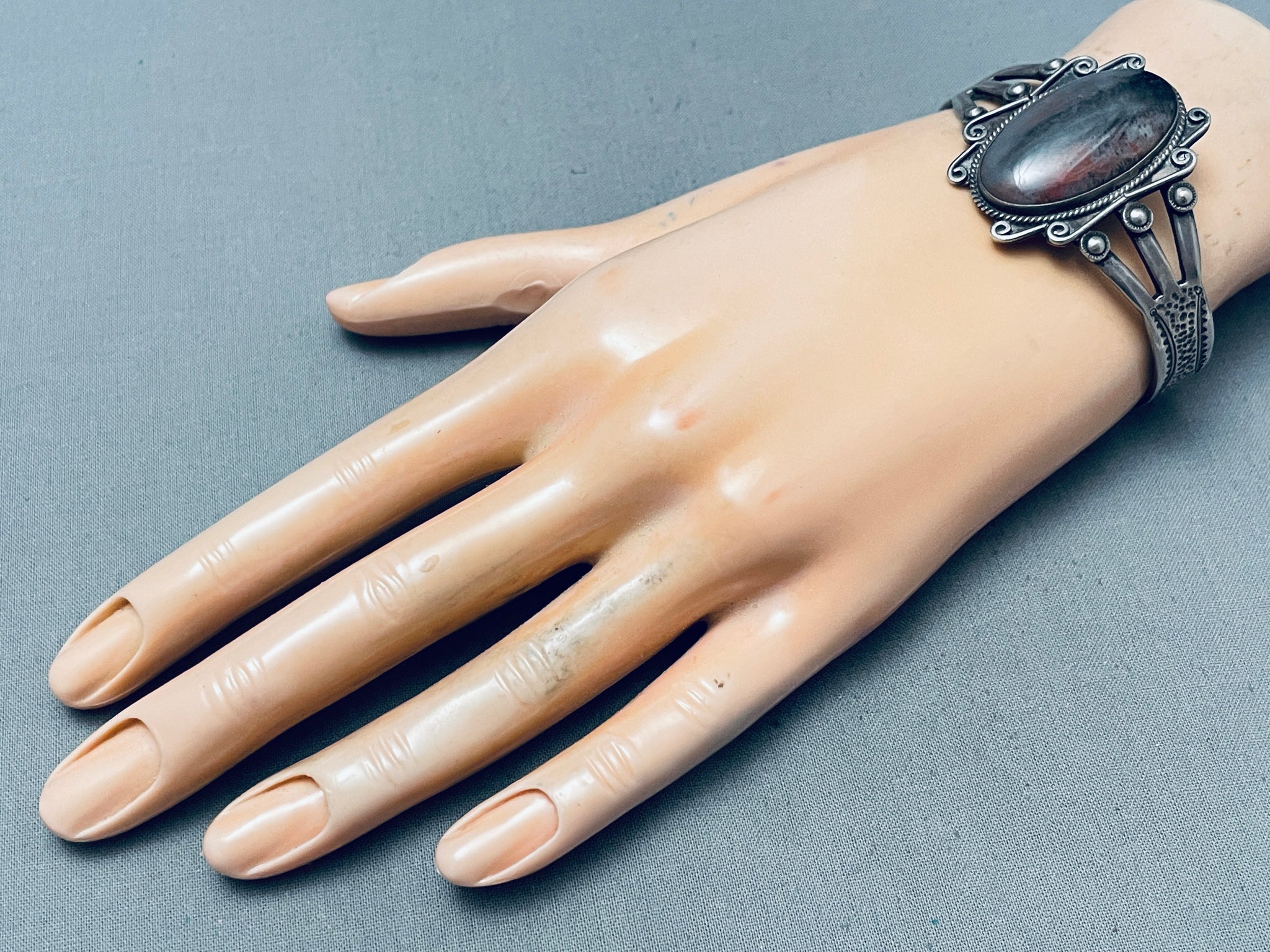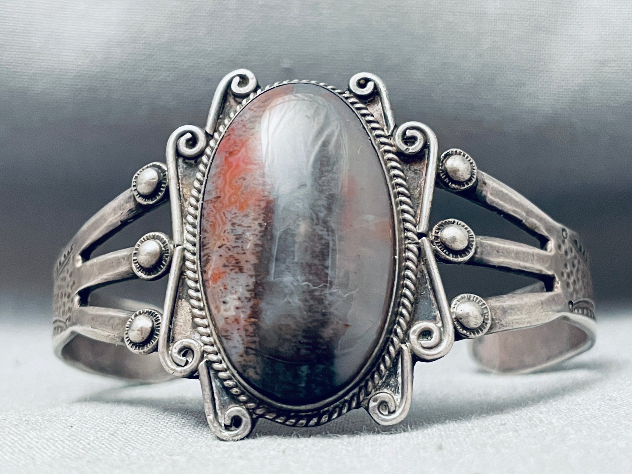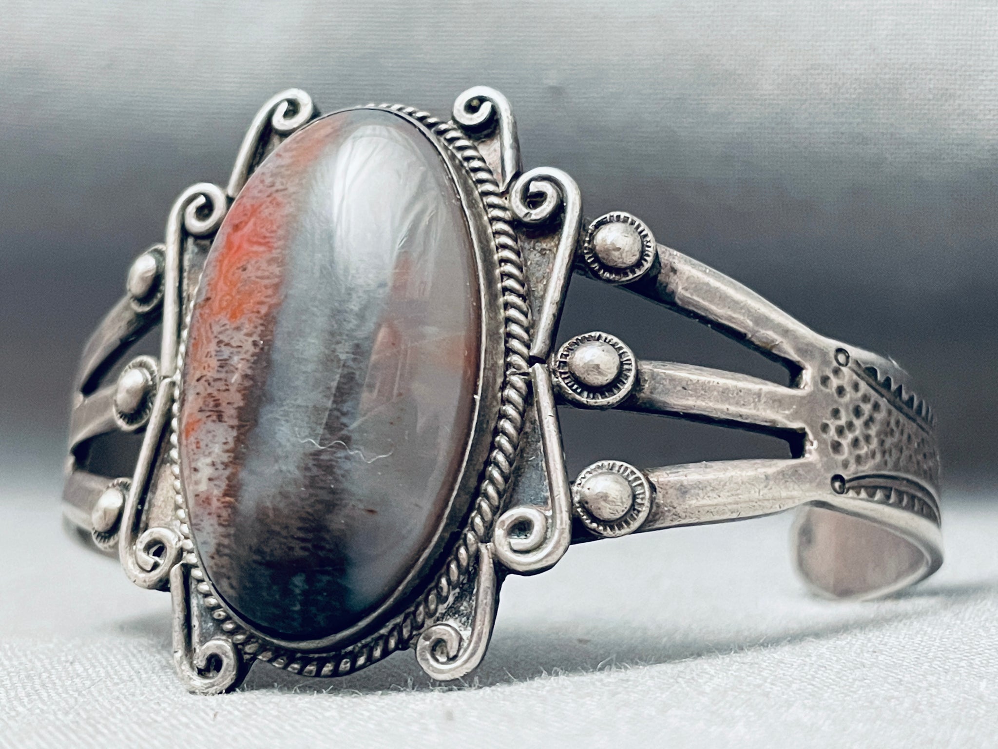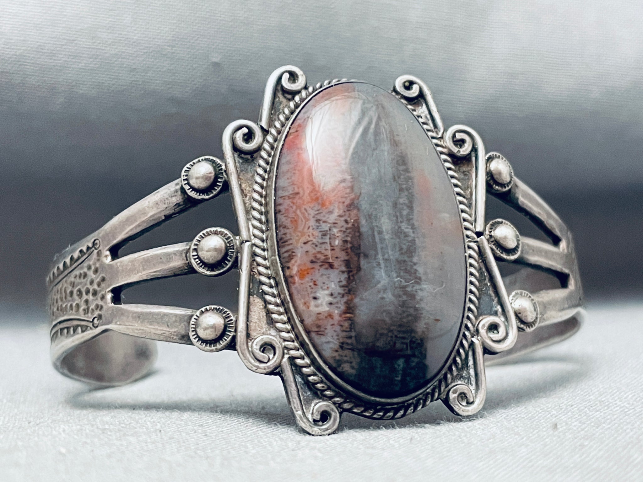 Early Century Vintage Native American Navajo Petrified Wood Sterling Silver Bracelet