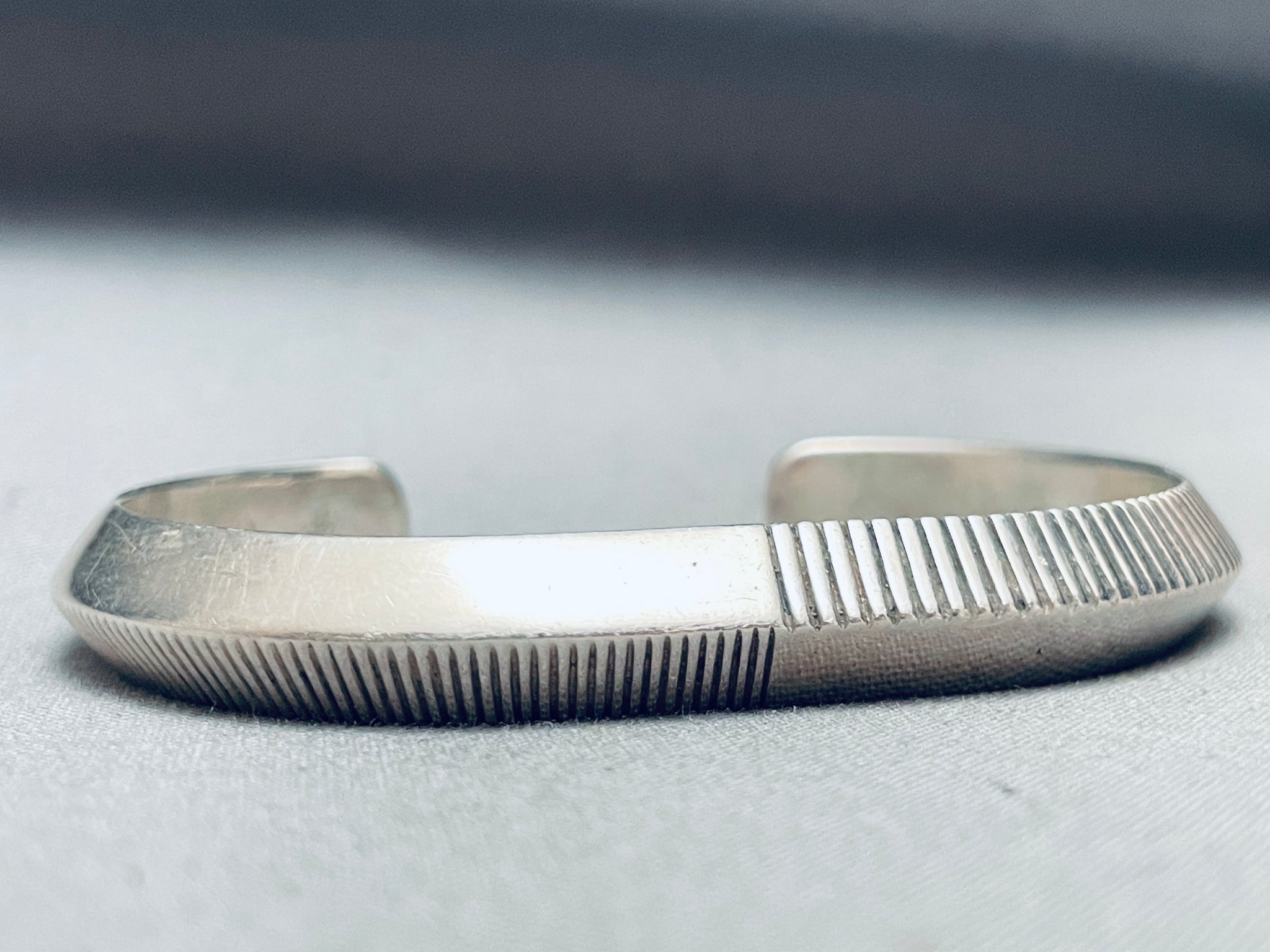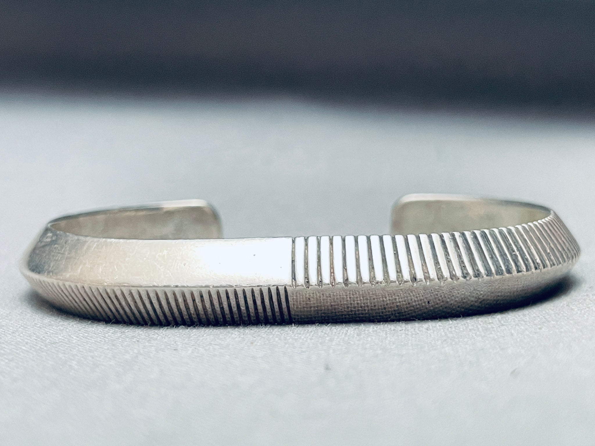Expert Segmented Vintage Native American Navajo Sterling Silver Channcel Bracelet
