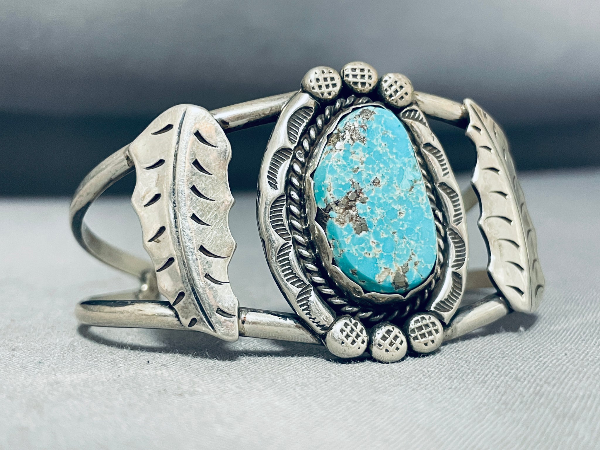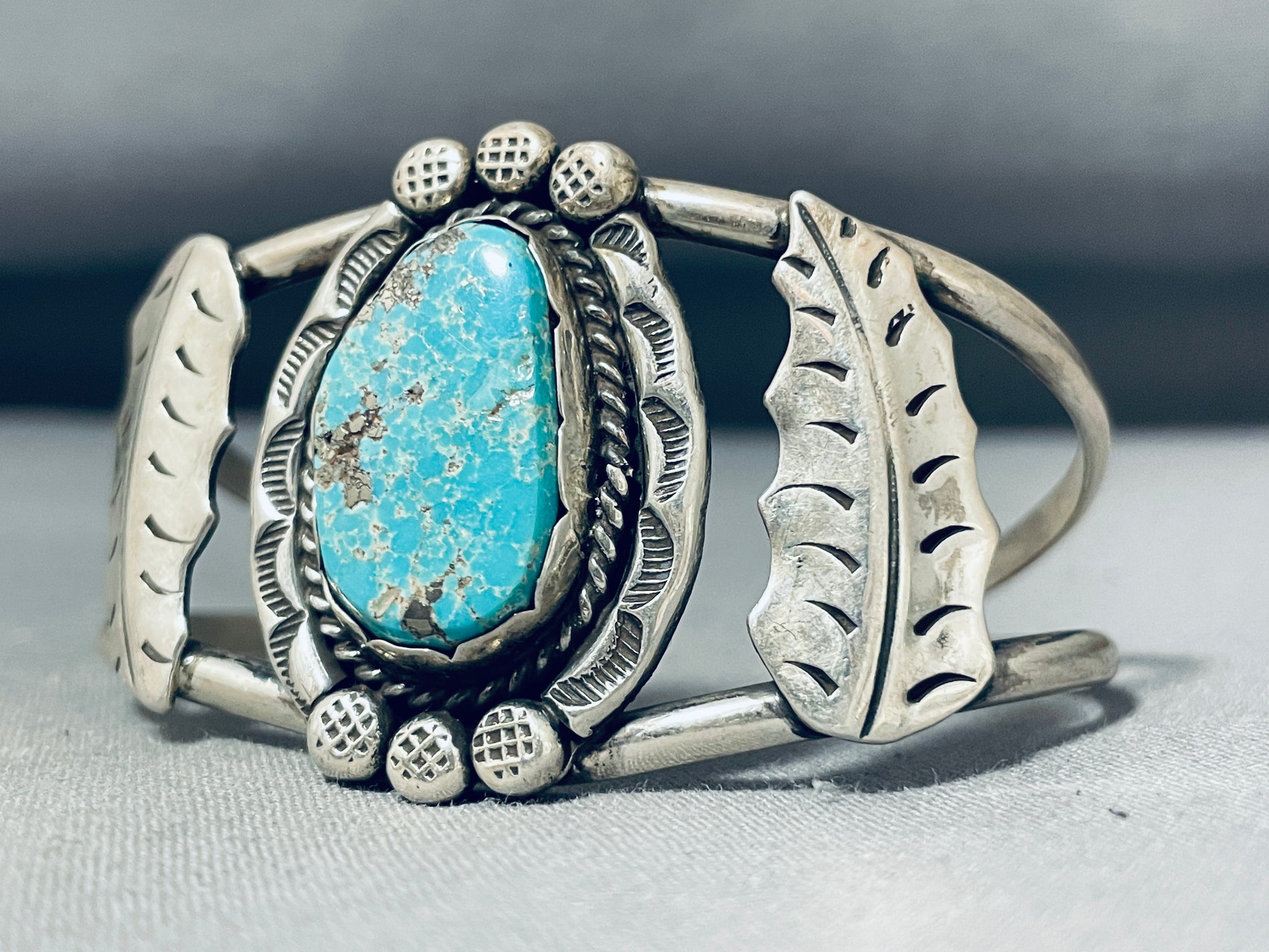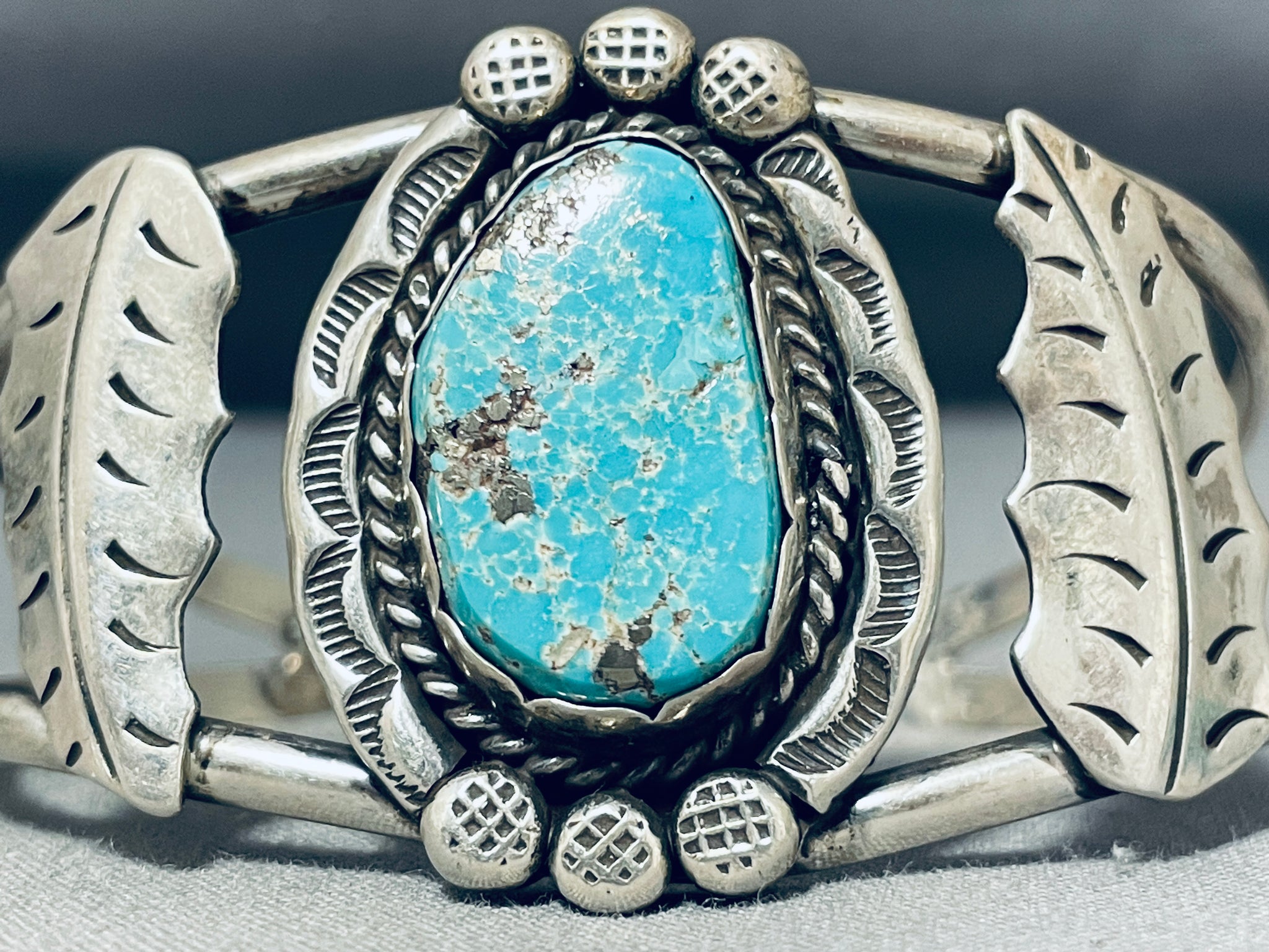 Exquisite Vintage Native American Navajo Pilot Mountain Turquoise Sterling Silver Bracelet