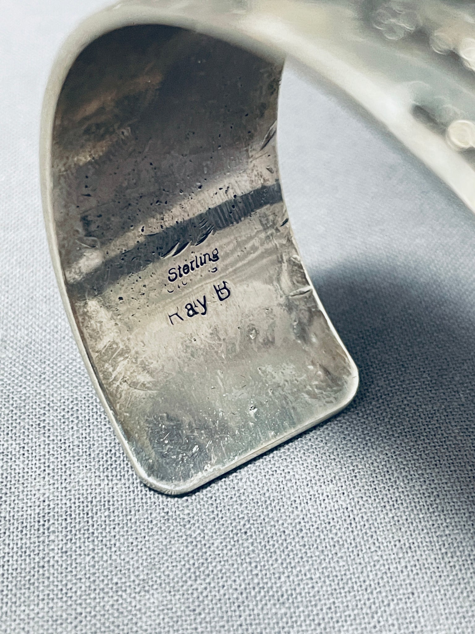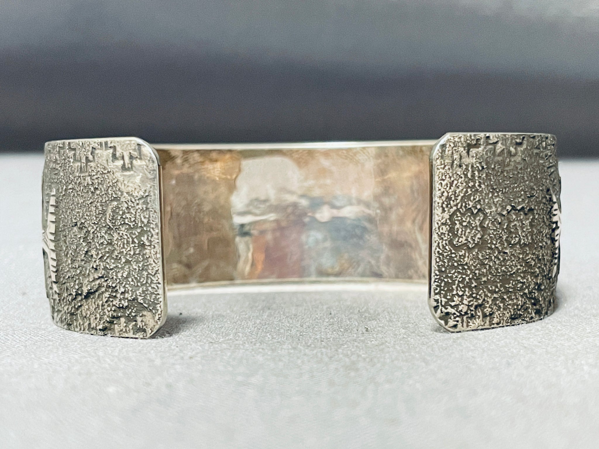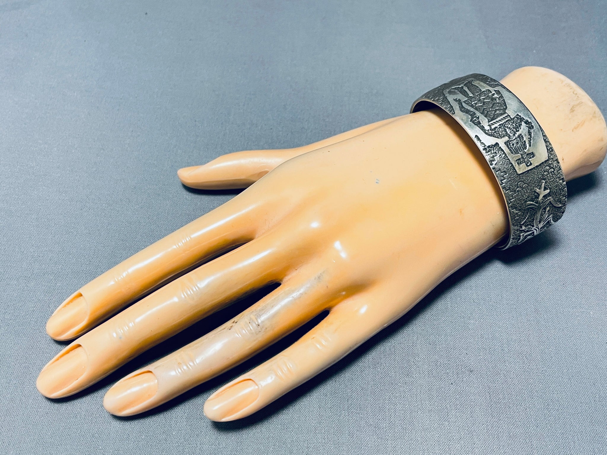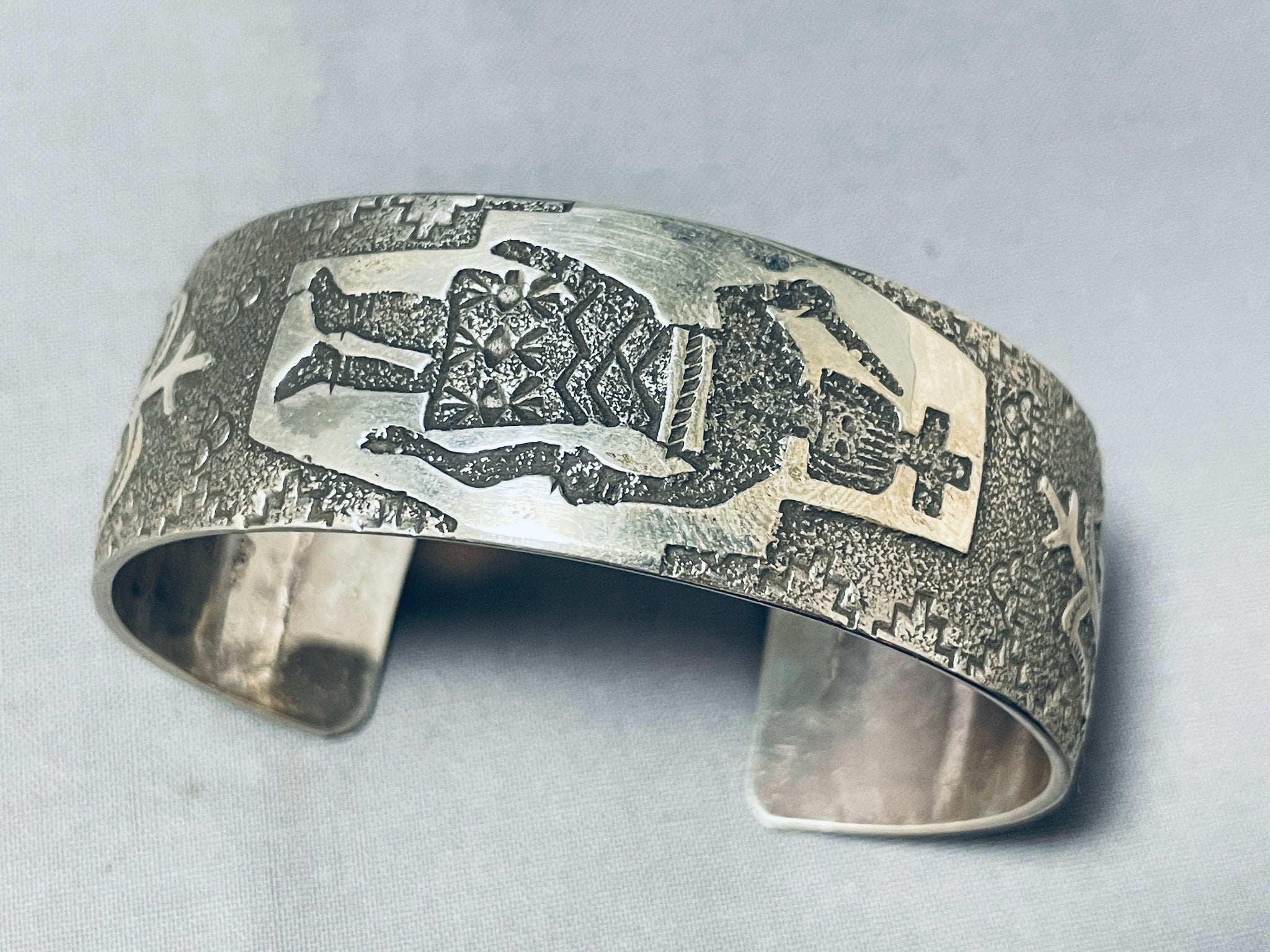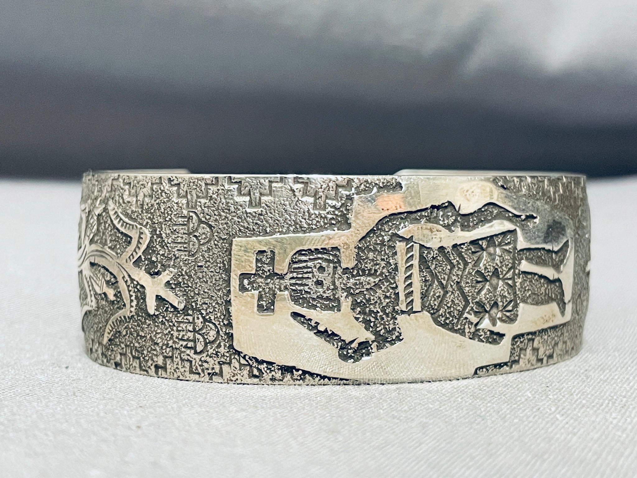 Extremely Detailed Vintage Native American Navajo Kachina Sterling Silver Bracelet