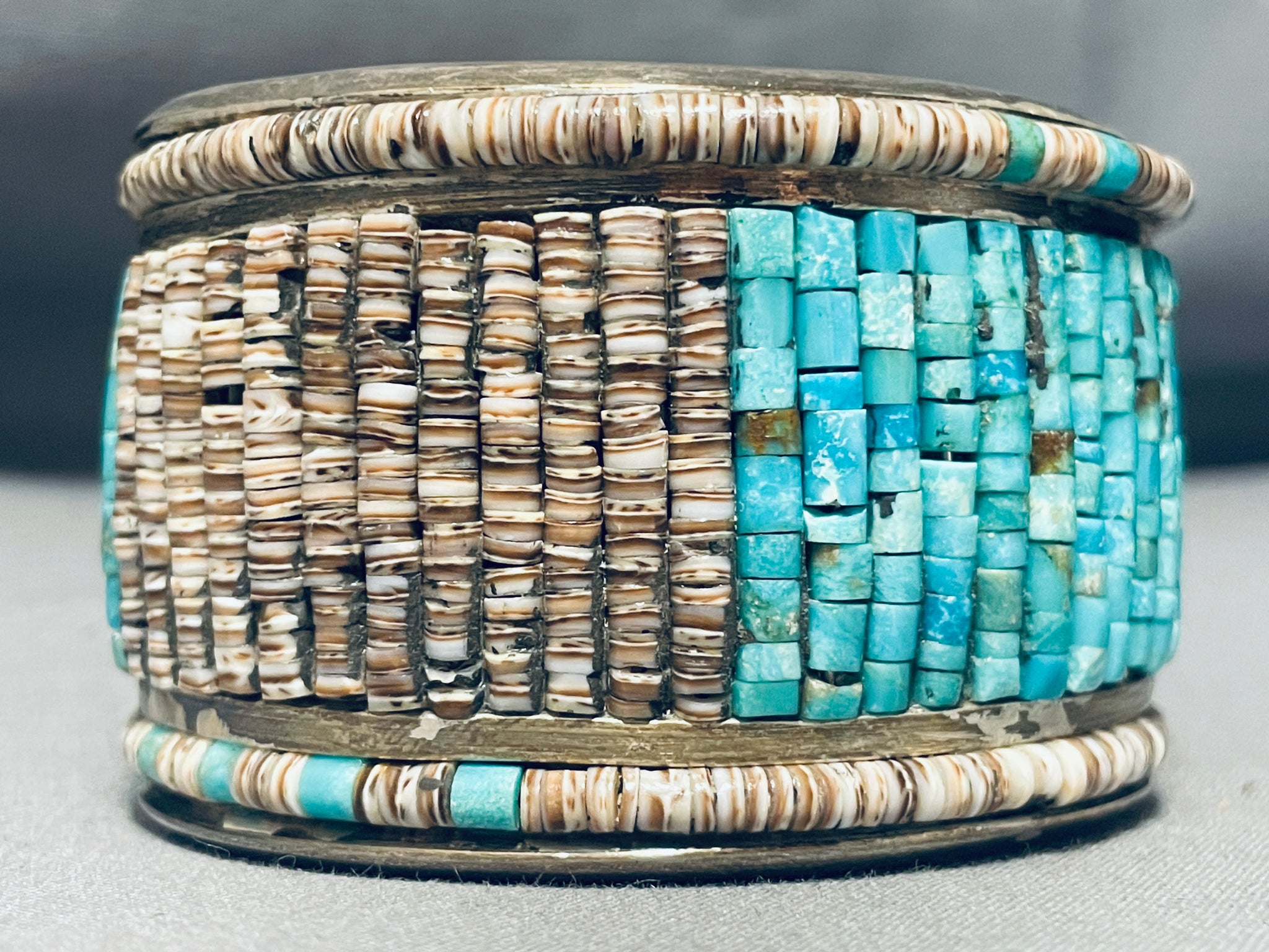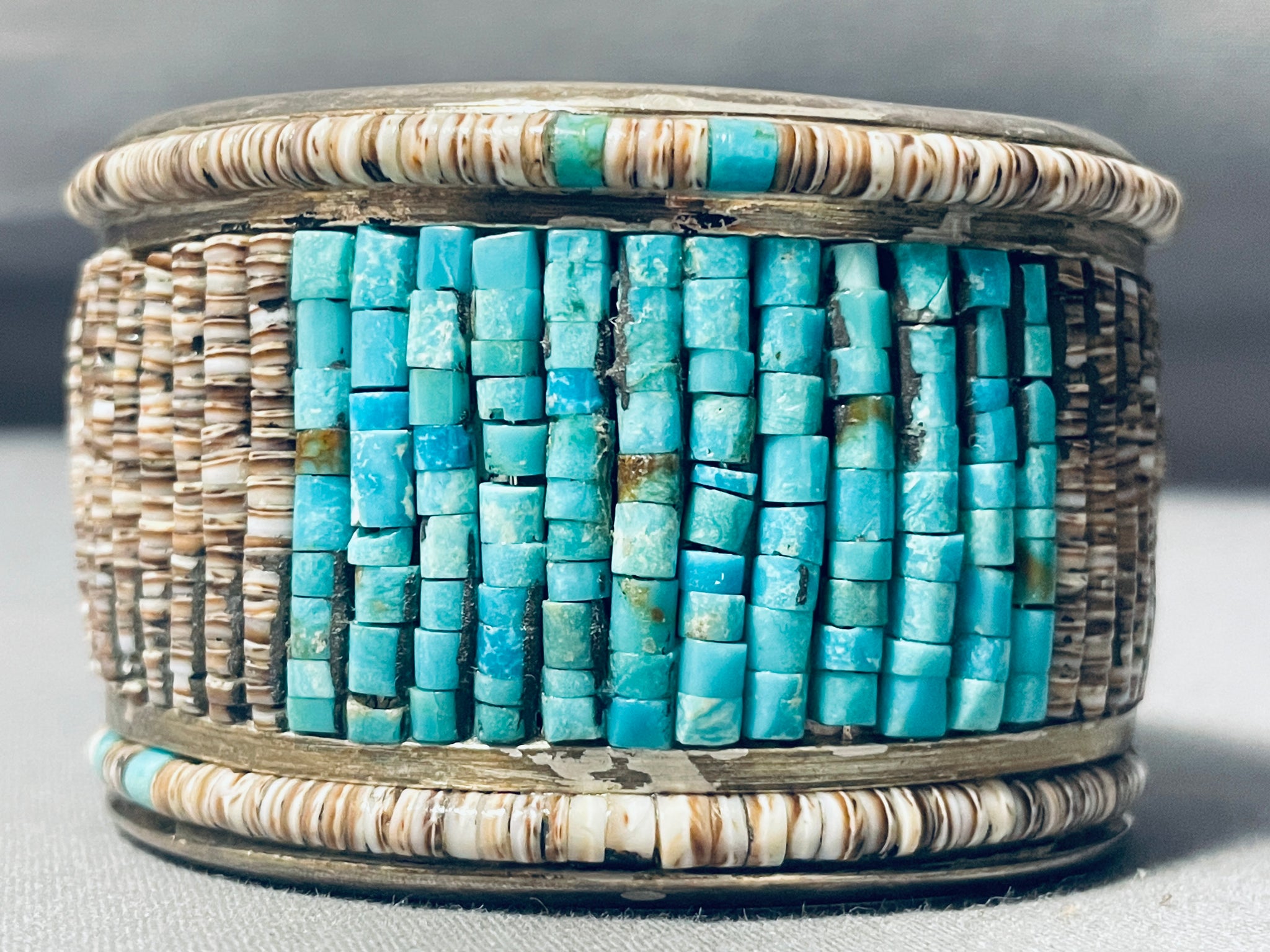 Eye Catching Best Vintage Native American Navajo Turquoise Heishi Sterling Silver Bracelet