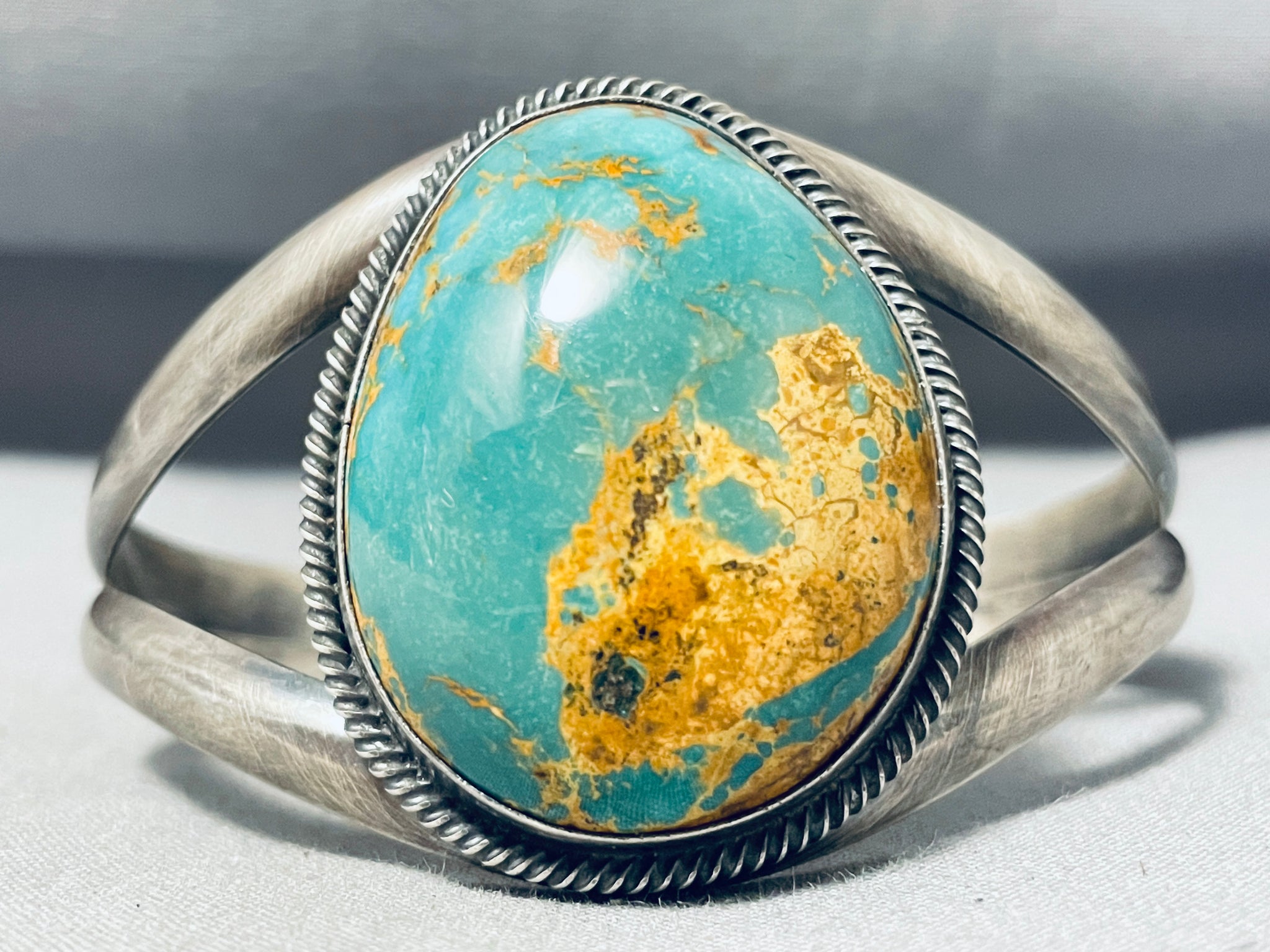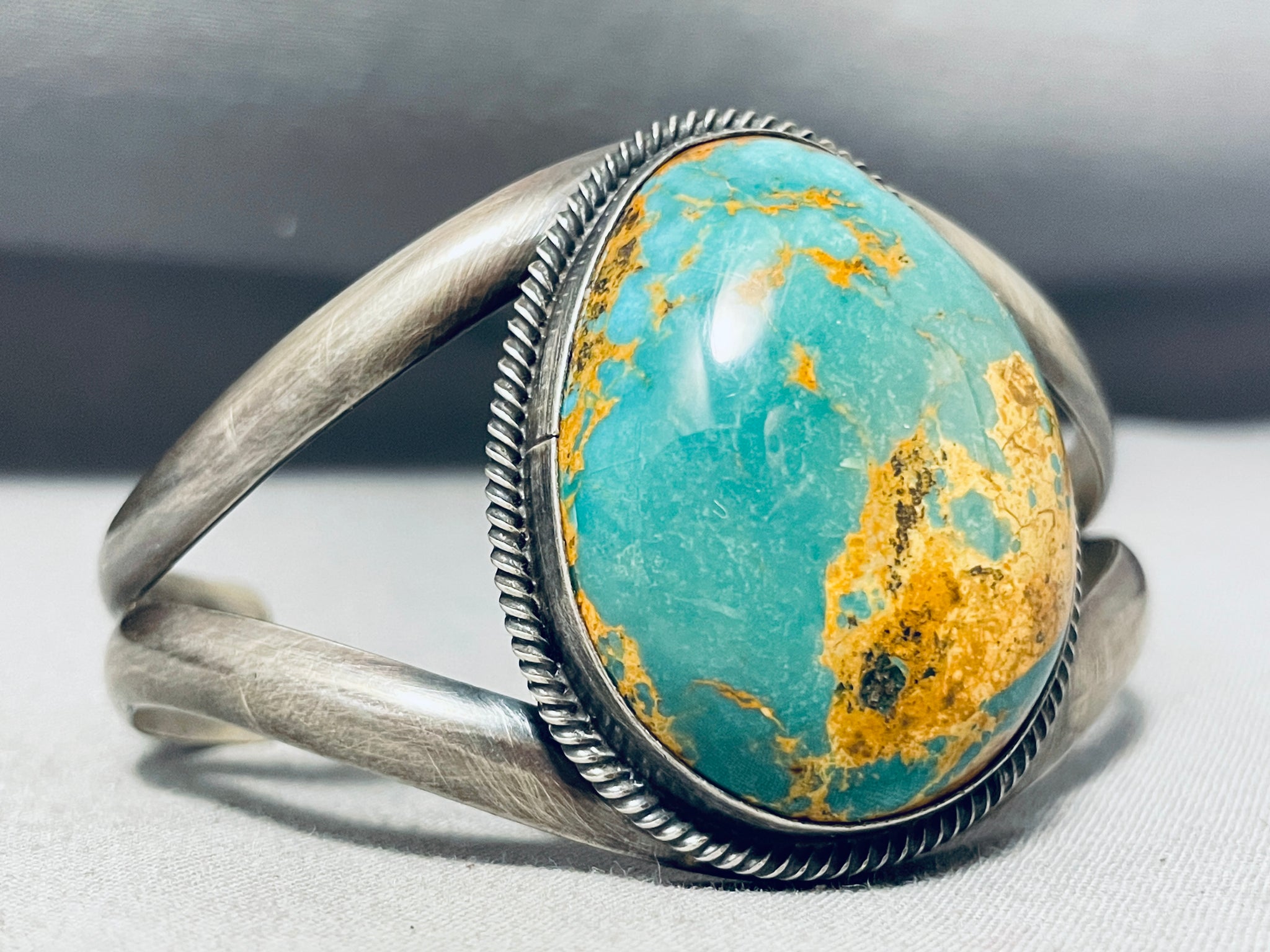 Eyecatching Vintage Native American Navajo Royston Turquoise Dome Sterling Silver Bracelet