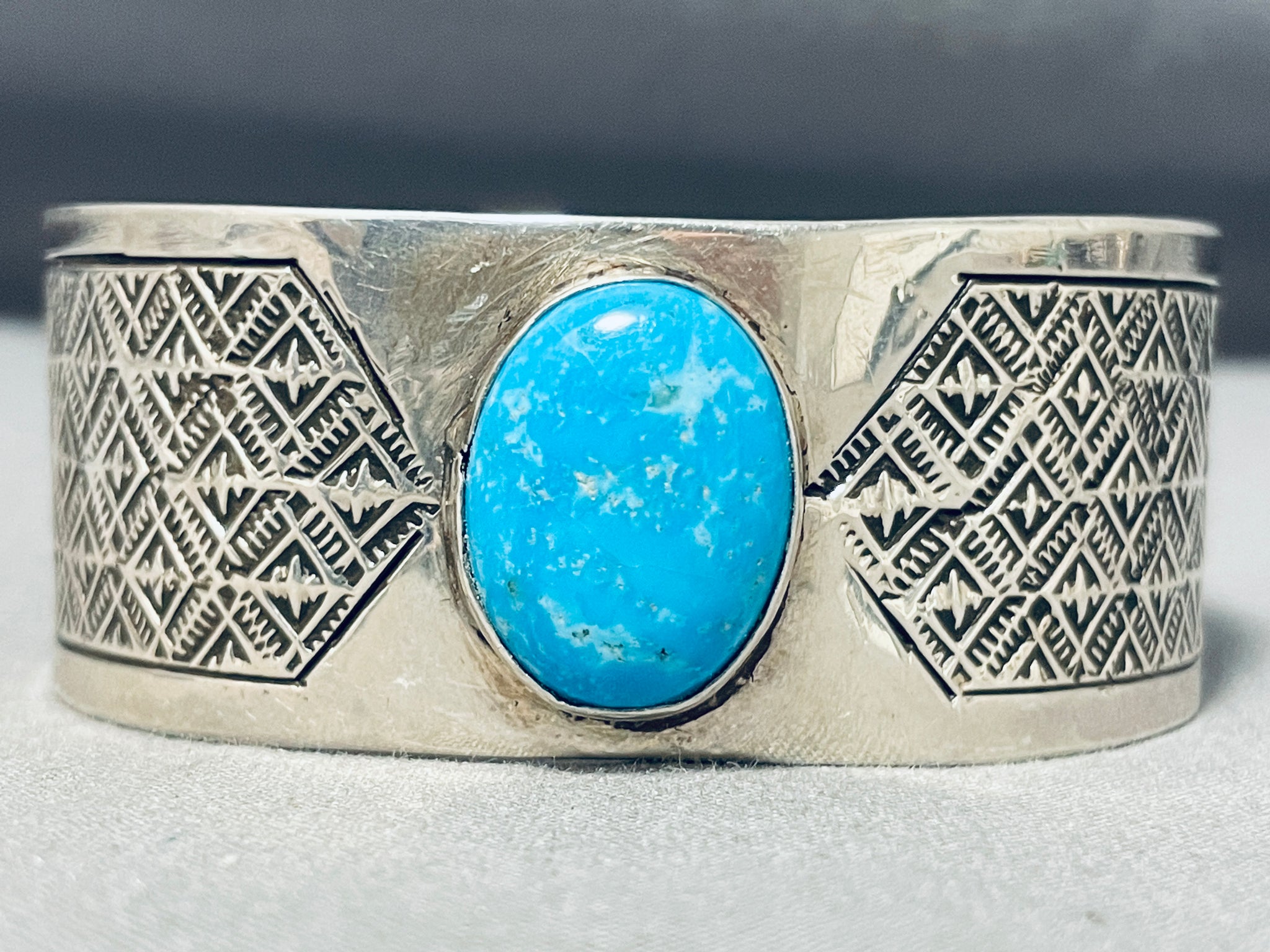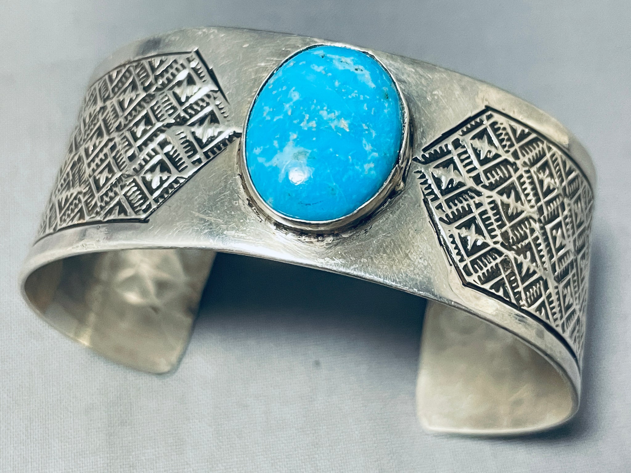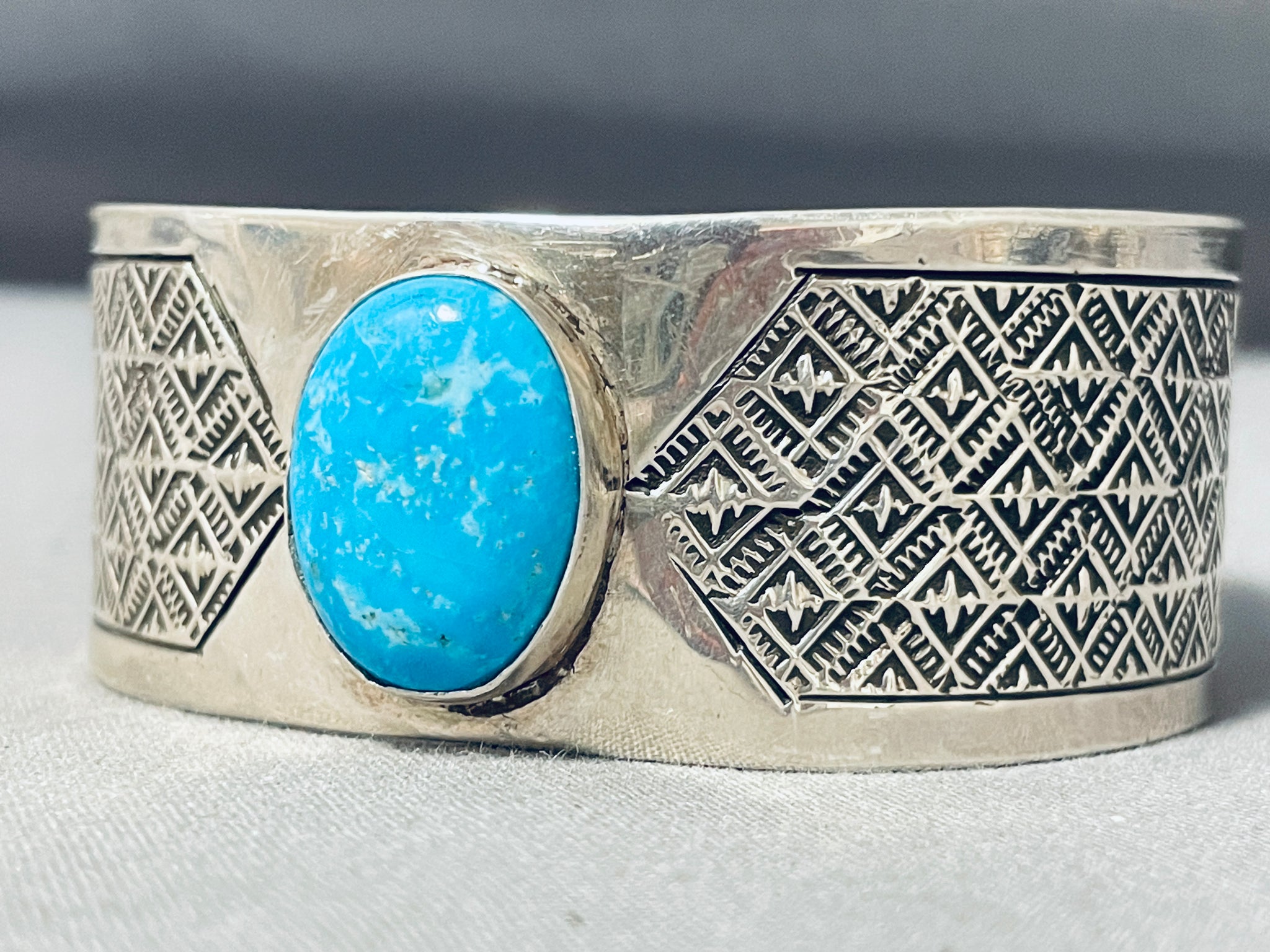 Family Of Teepees Vintage Native American Navajo Turquoise Sterling Silver Bracelet