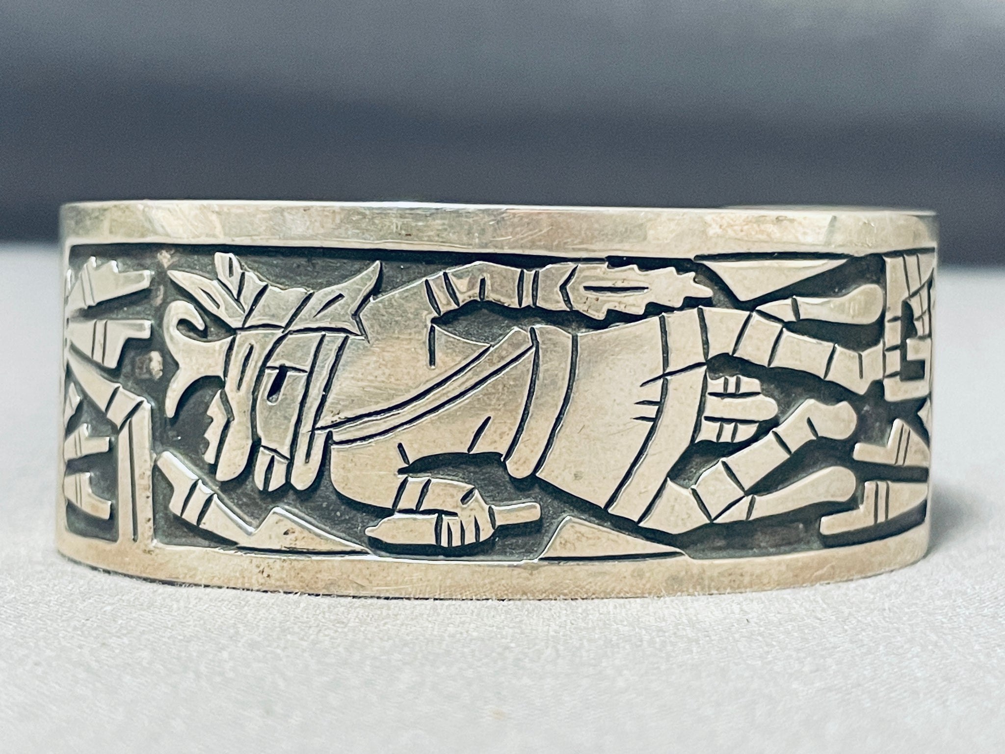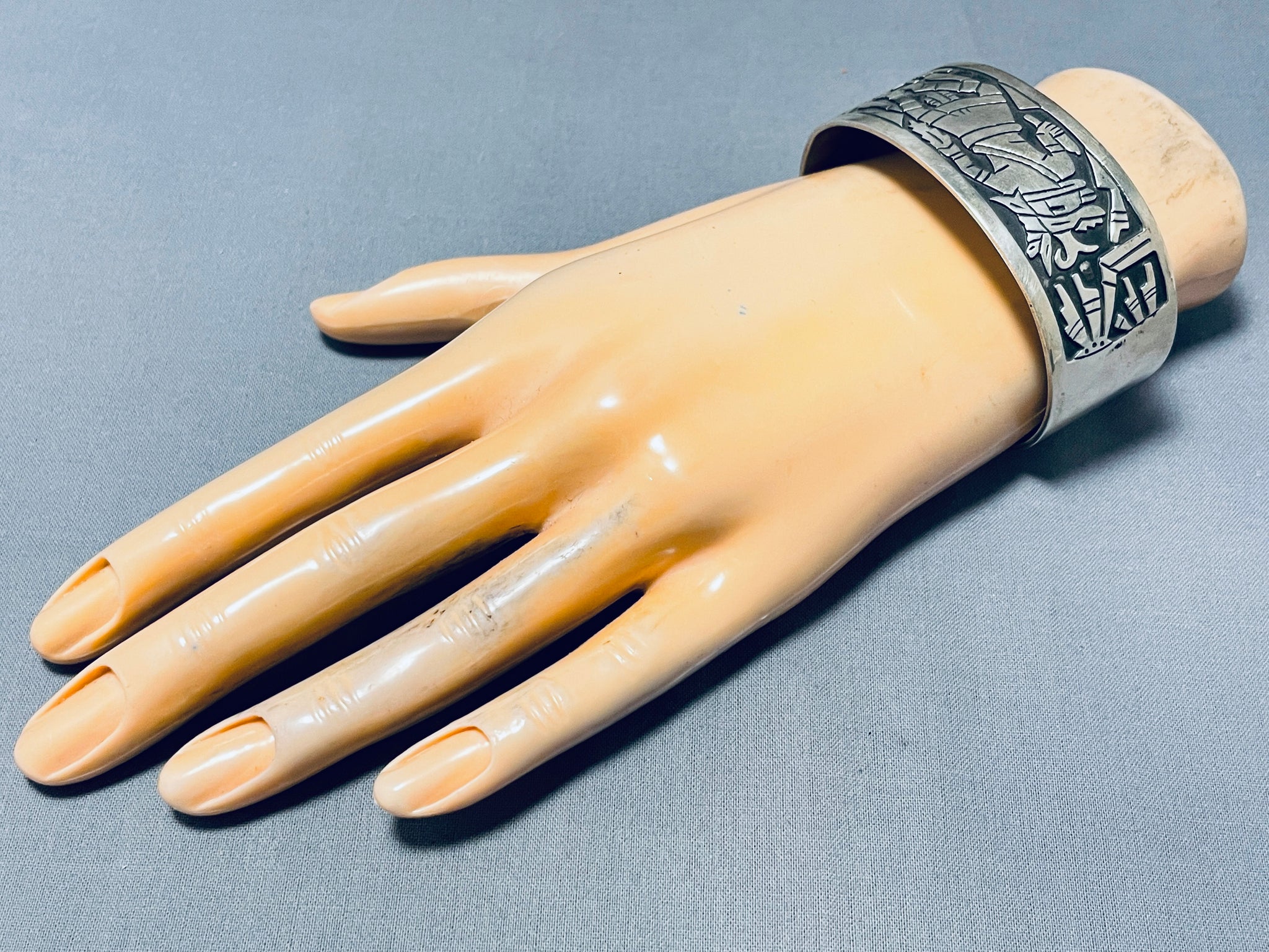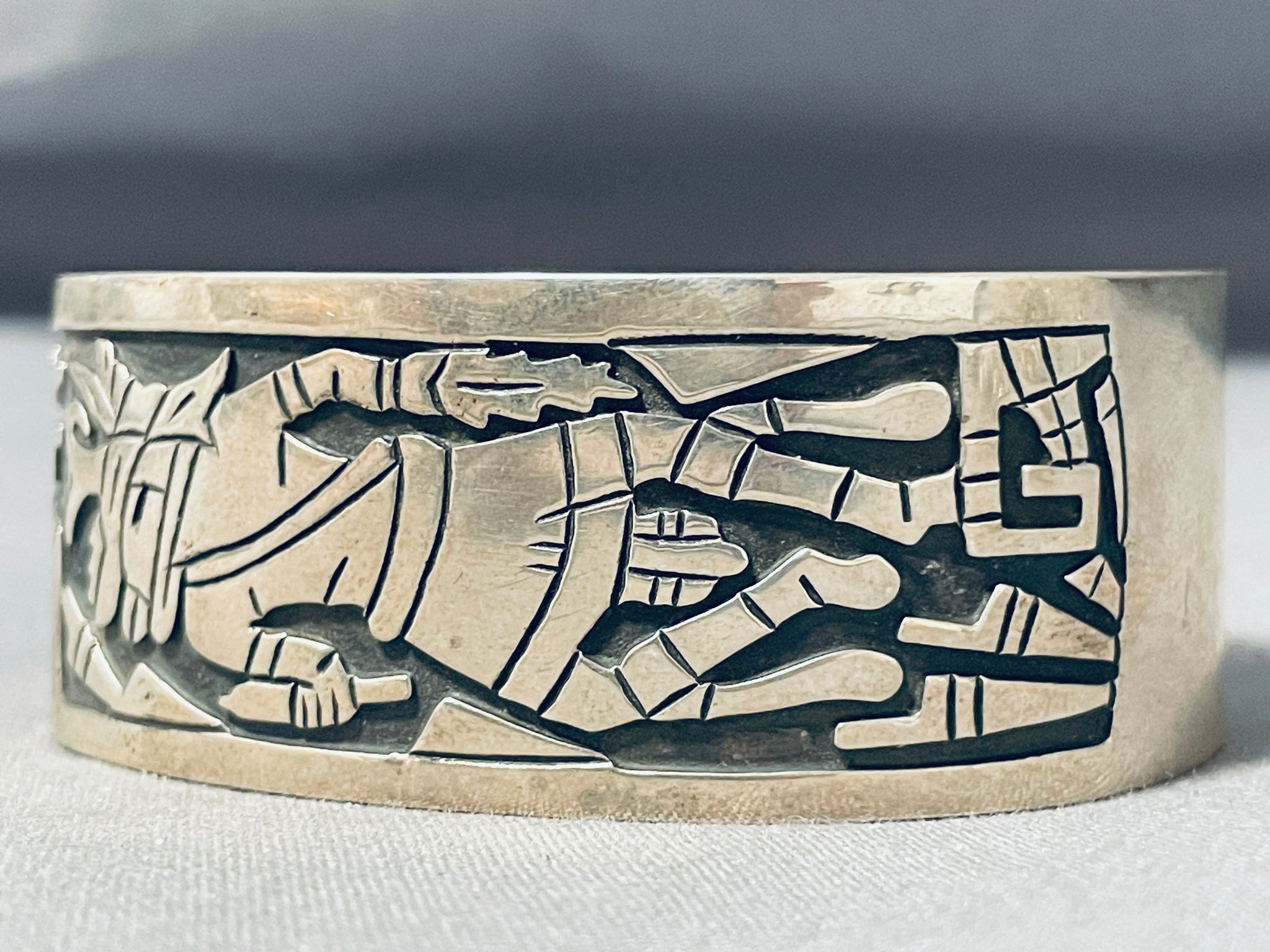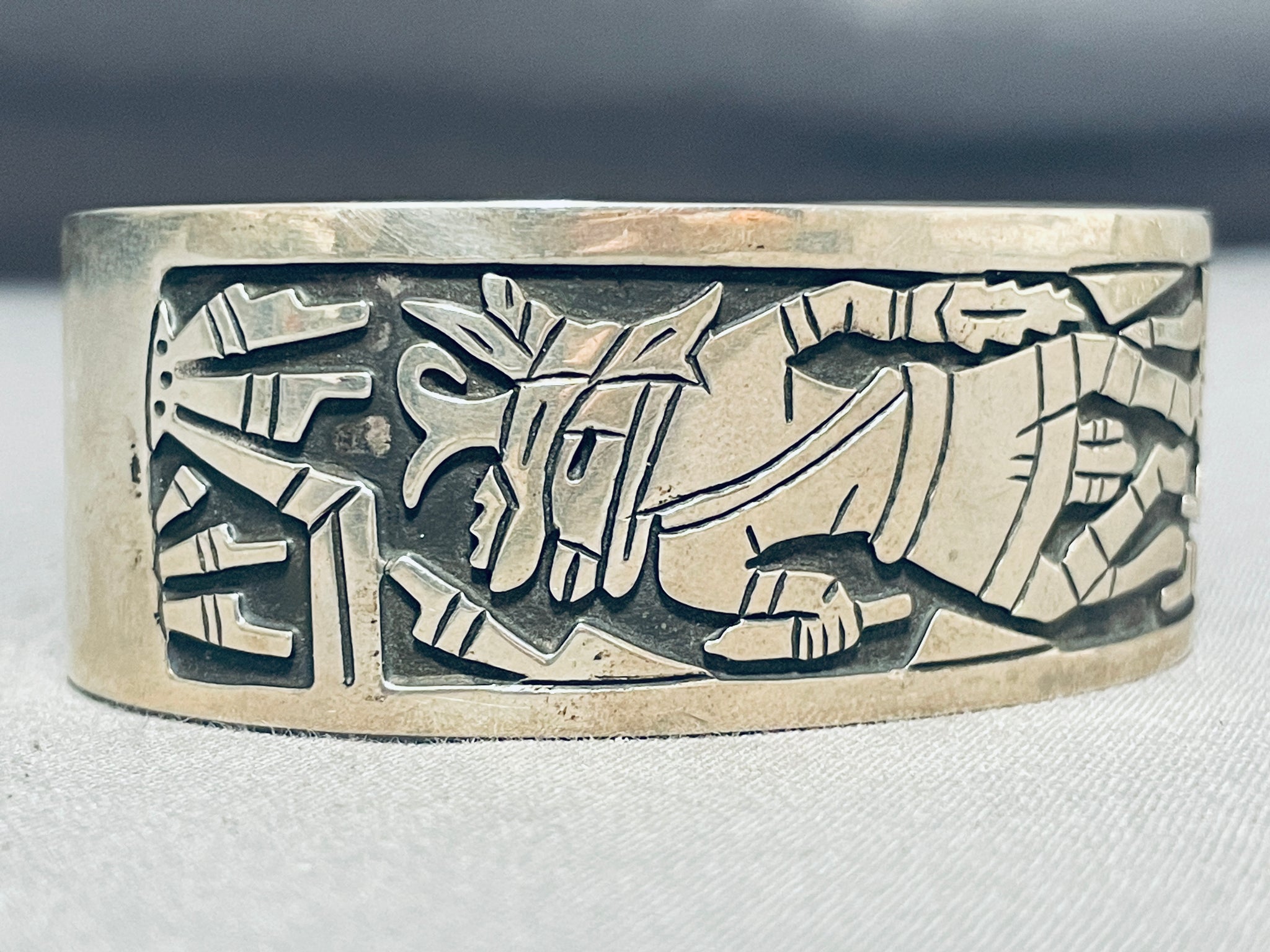 Fascinating Vintage Native American Navajo Sterling Silver Kachina Bracelet