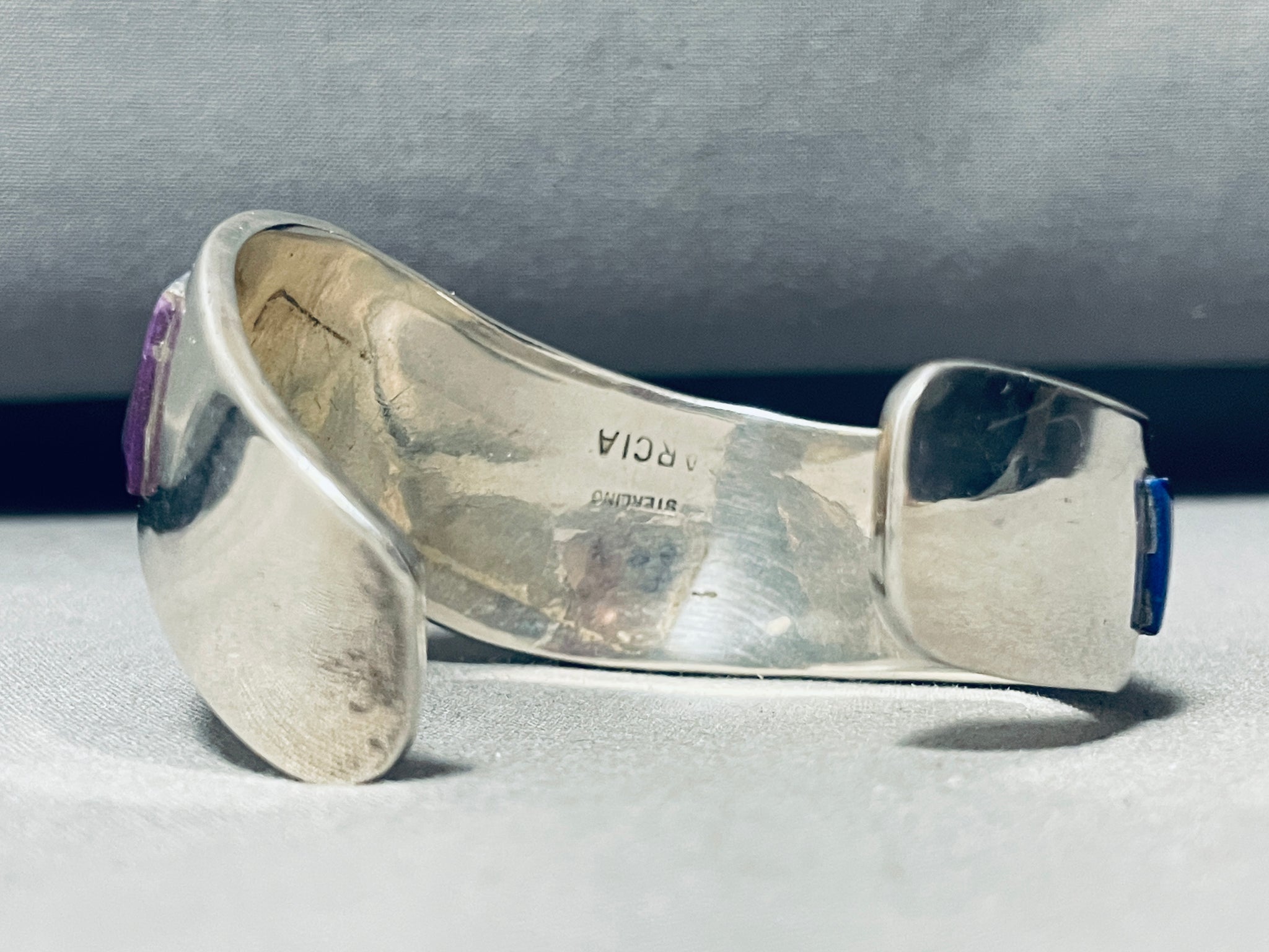 Garcia Fam Vintage Native American Navajo 6.5 Inch Wrist Sterling Silver Inlay Bracelet