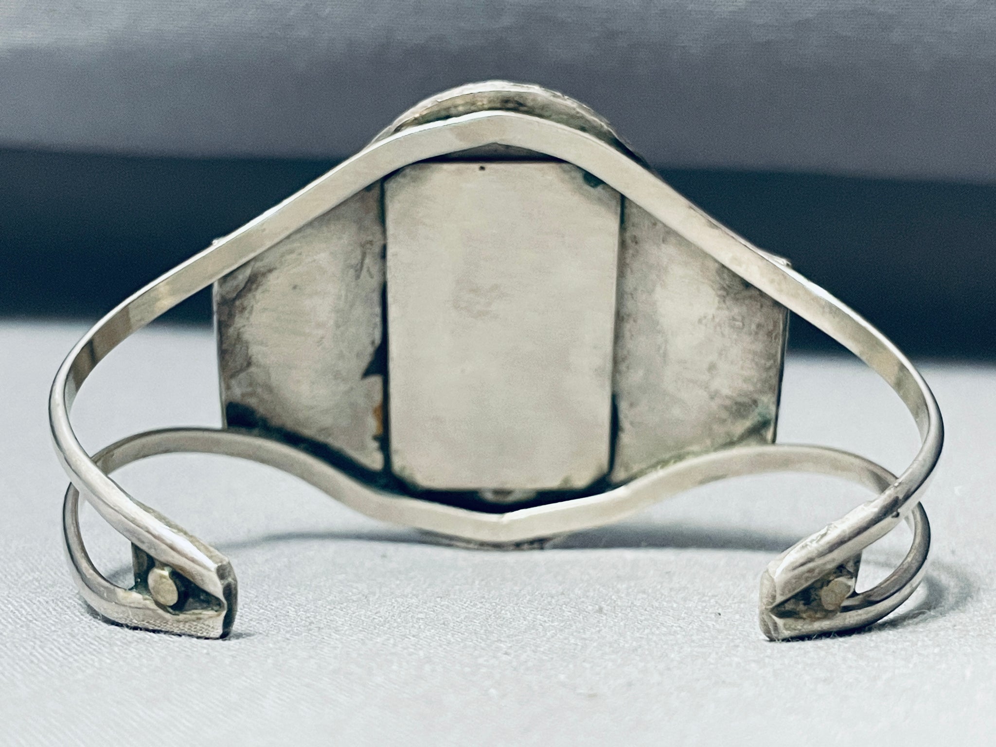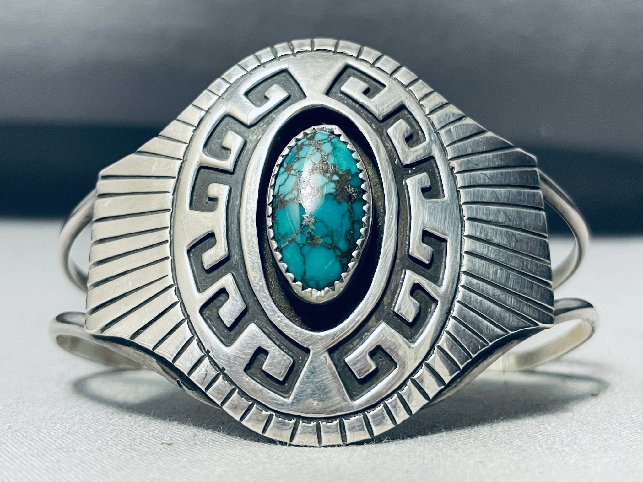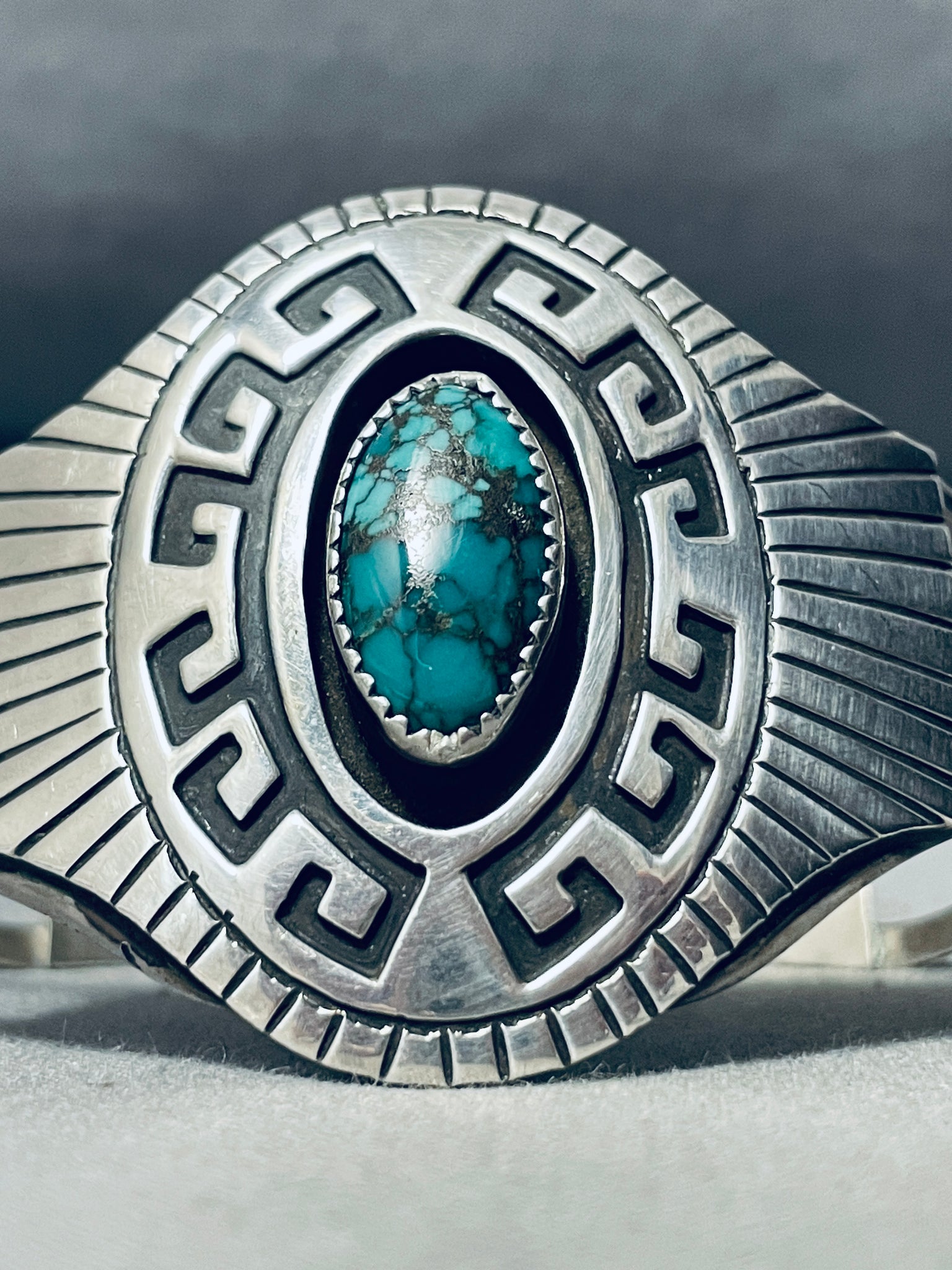 Geomtric Water Vintage Native American Navajo Spiderweb Turquoise Sterling Silver Bracelet
