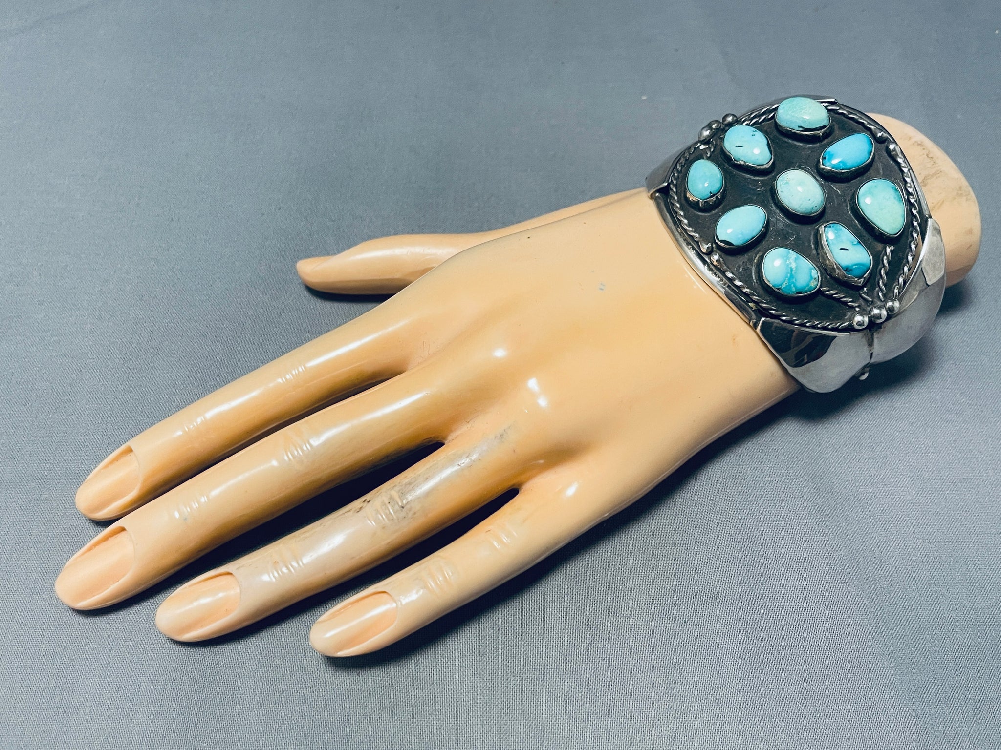 Gigantic Vintage Native American Navajo Turquoise Sterling Silver Flank Bracelet