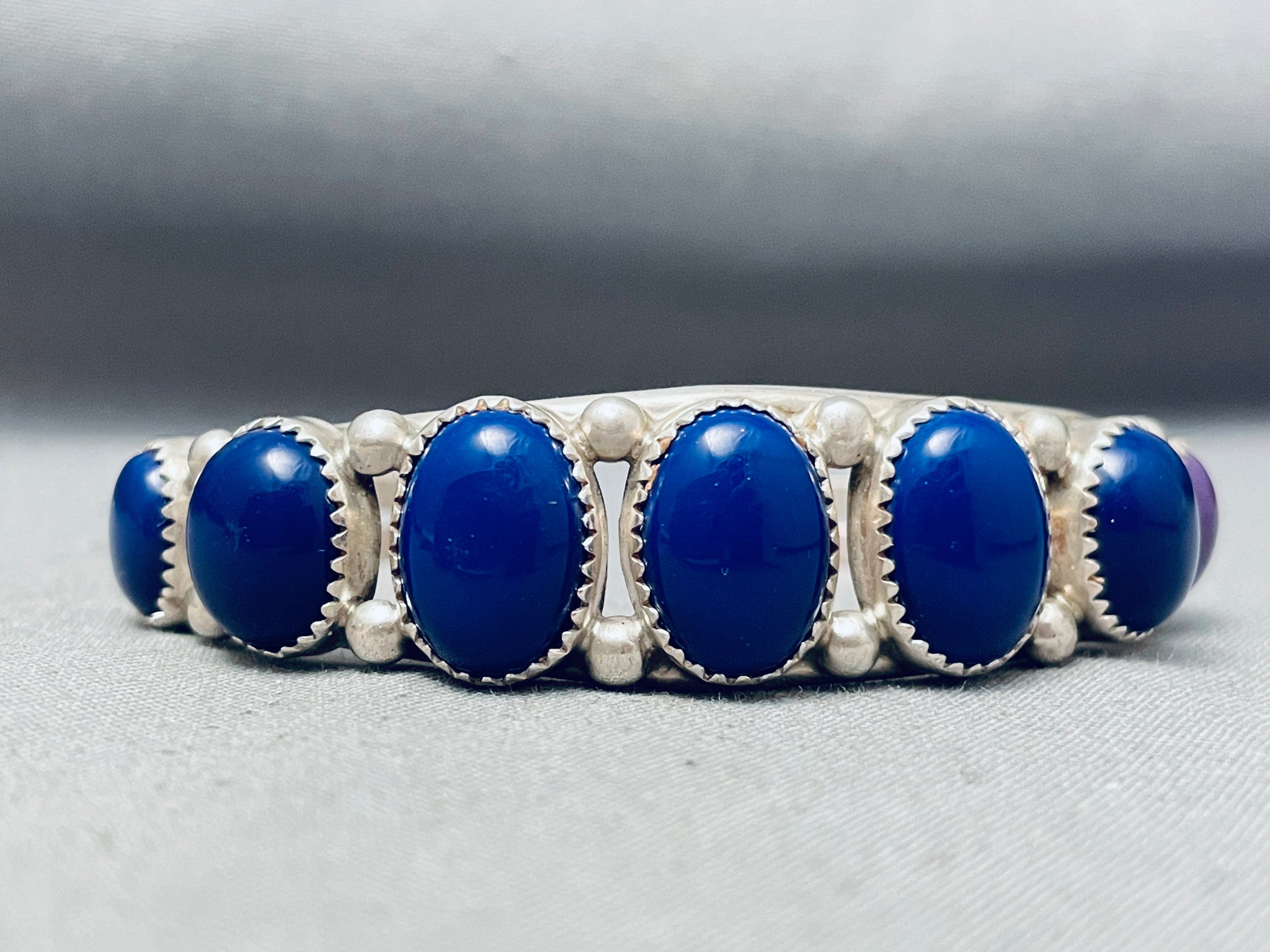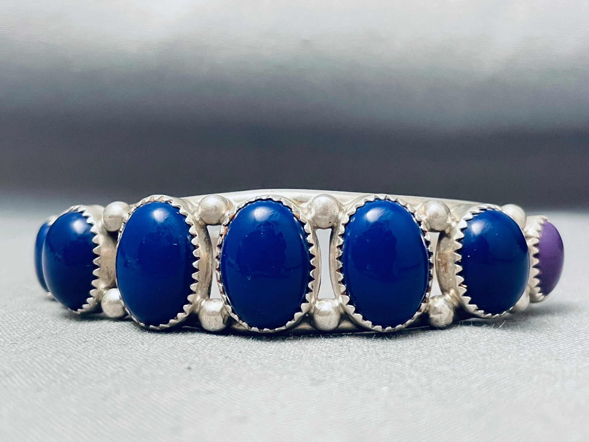 Graduating Domed Lapis Vintage Native American Navajo Sterling Silver Bracelet