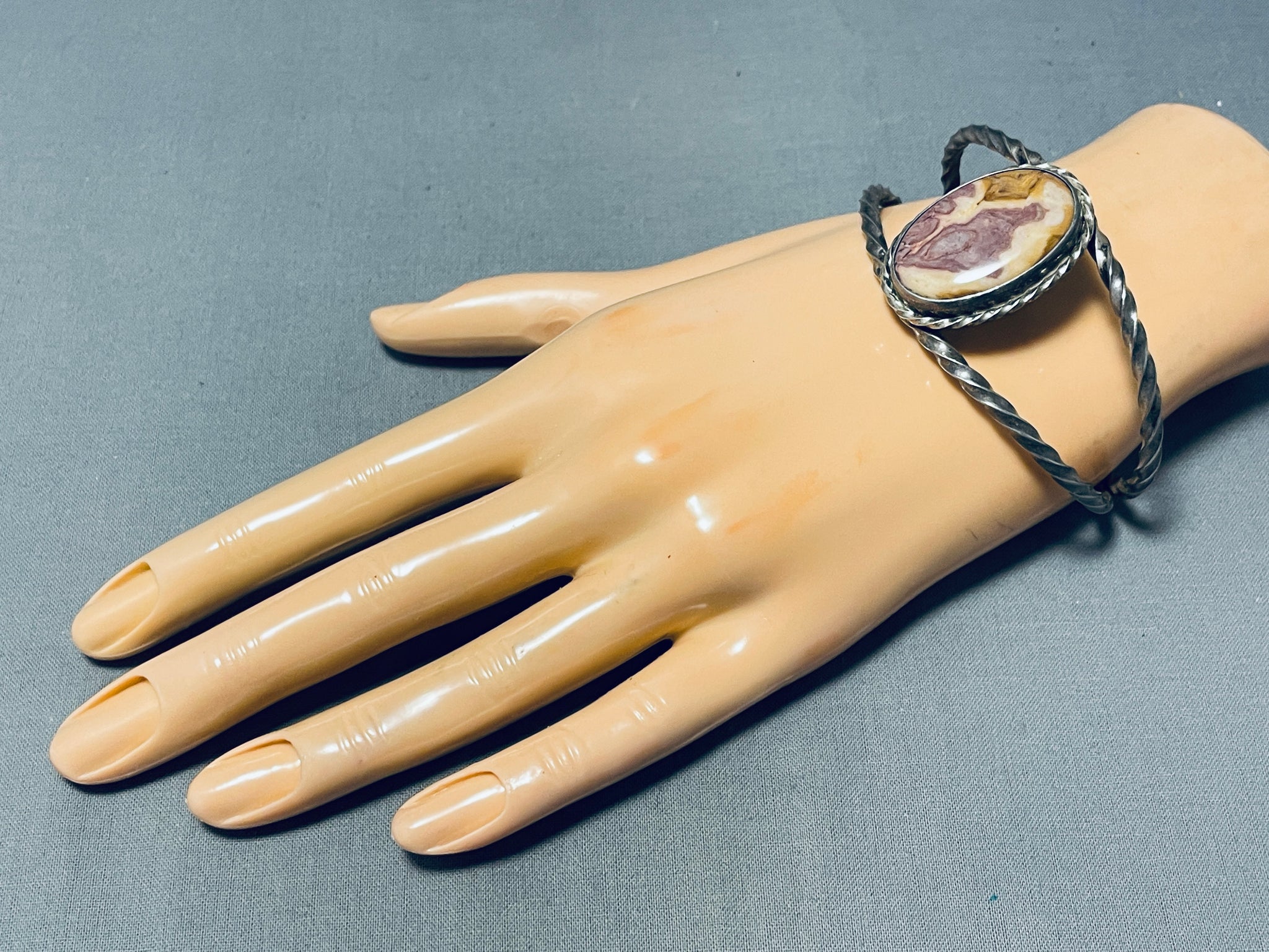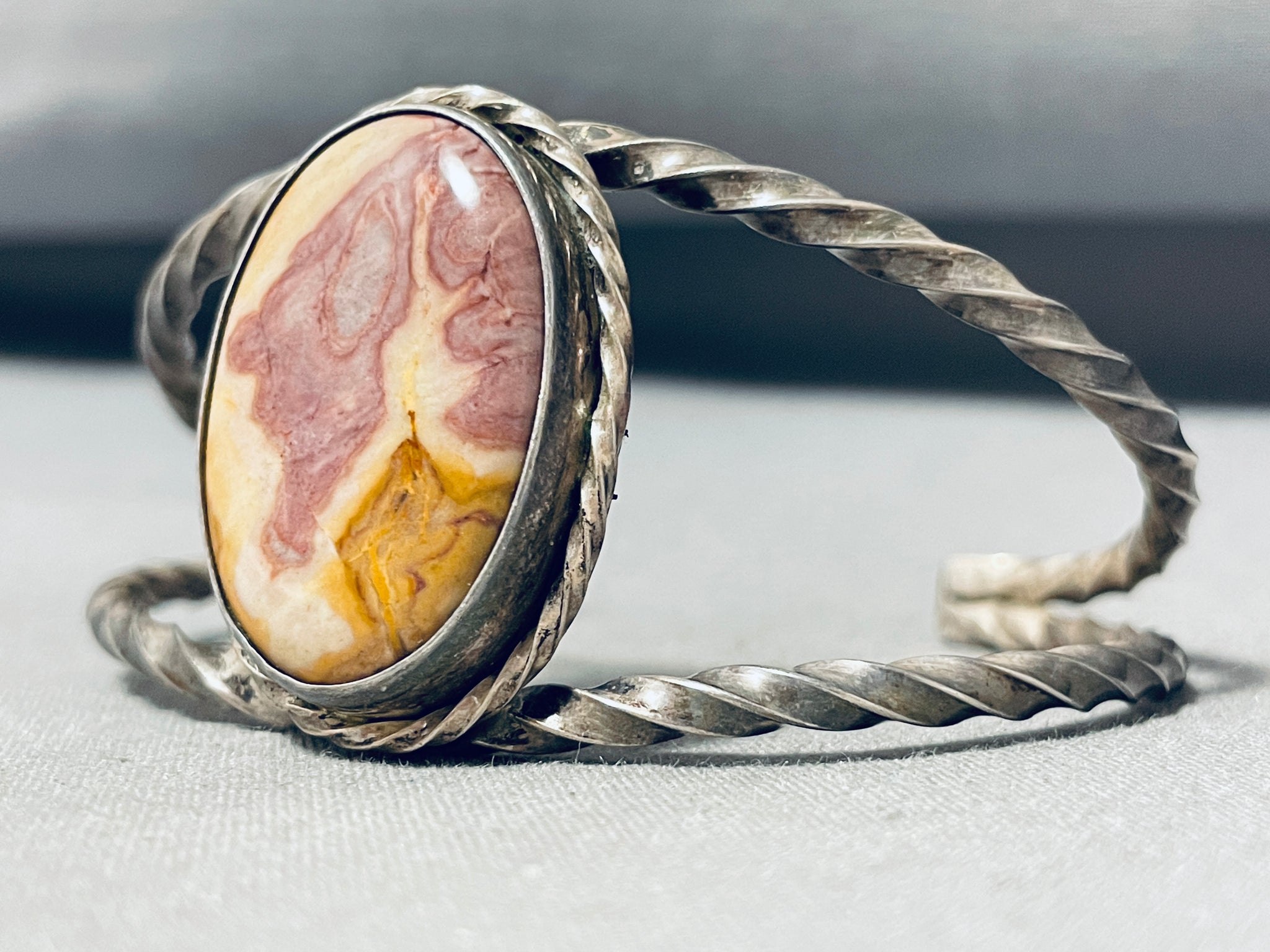 Grapefruit Agate Vintage Native American Navajo Sterling Silver Bracelet Old