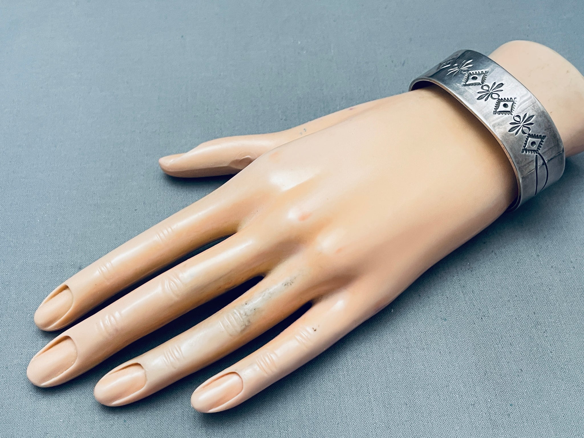 Hand Tooled Vintage Native American Navajo Sun Stamped Sterling Silver Bracelet Cuff