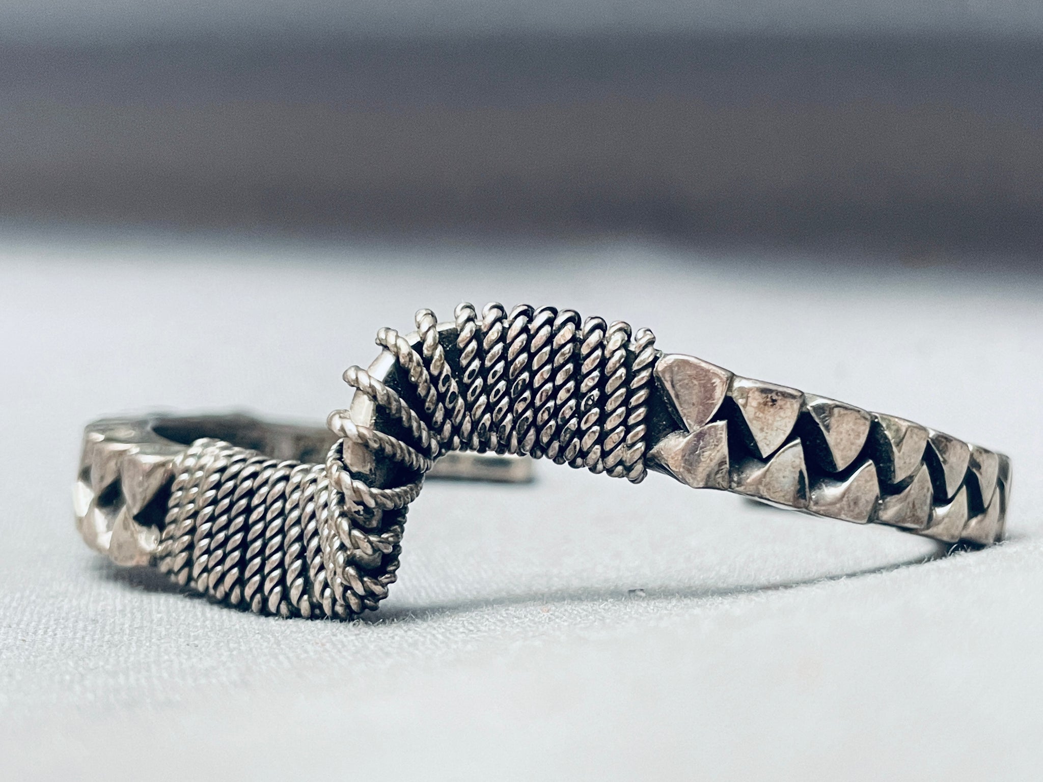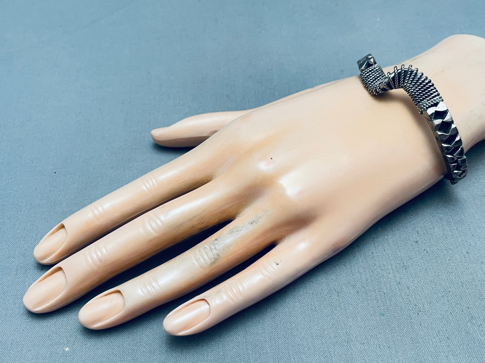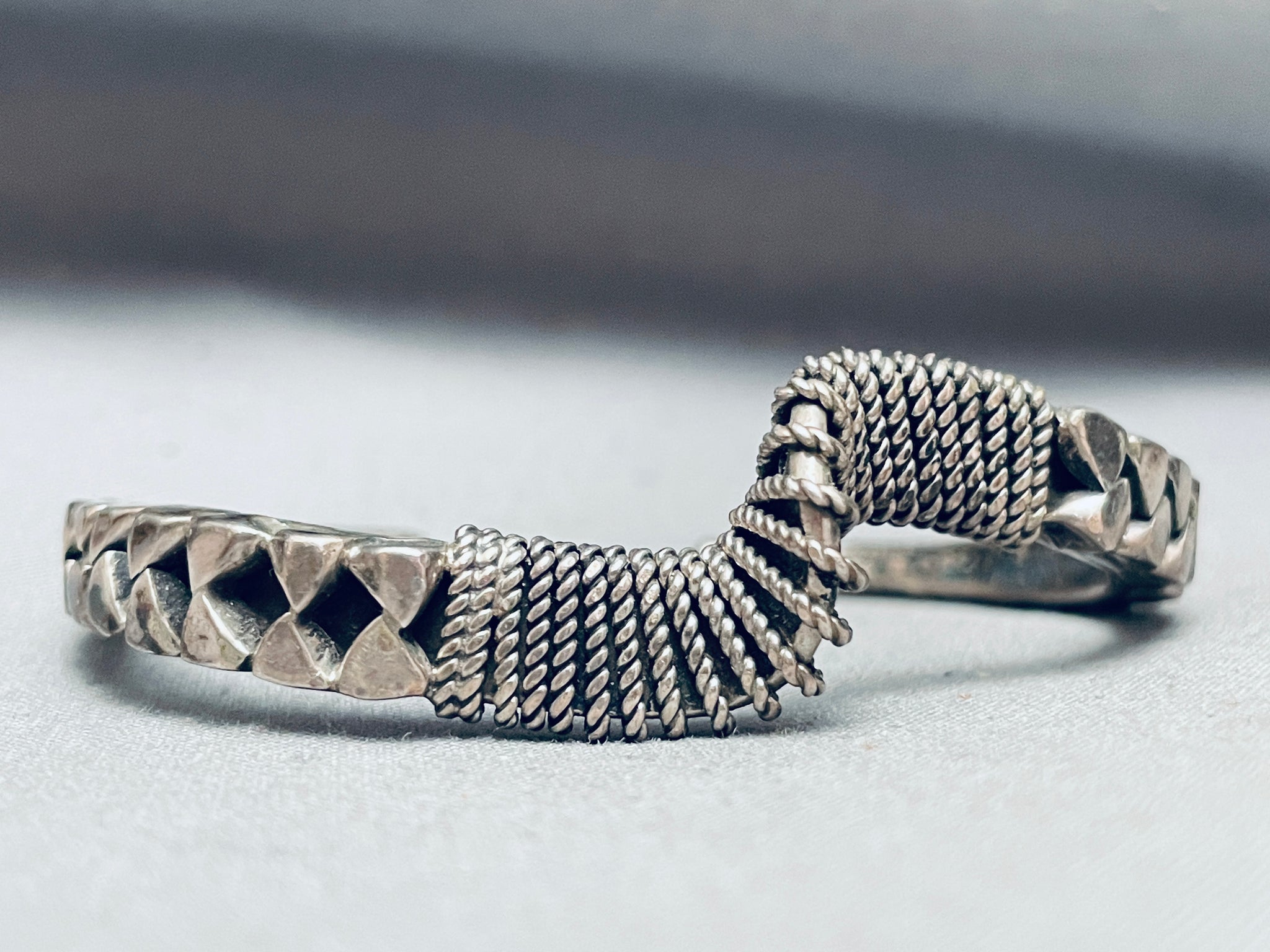 Hand Woven Vintage Native American Navajo Sterling Silver Bracelet Thick Cuff