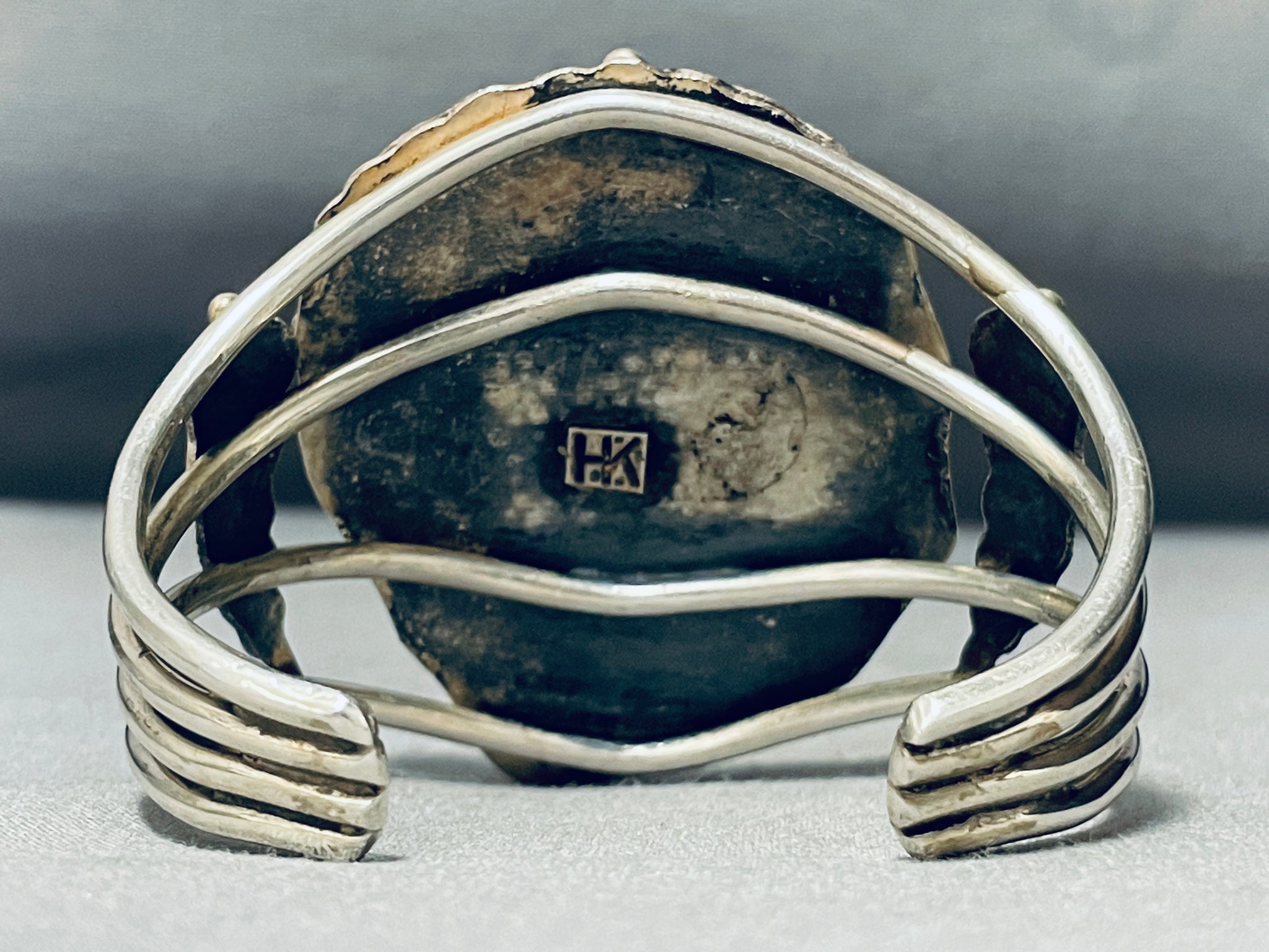 Harry Kee Vintage Native American Navajo Blue Thunder Turquoise Sterling Silver Bracelet