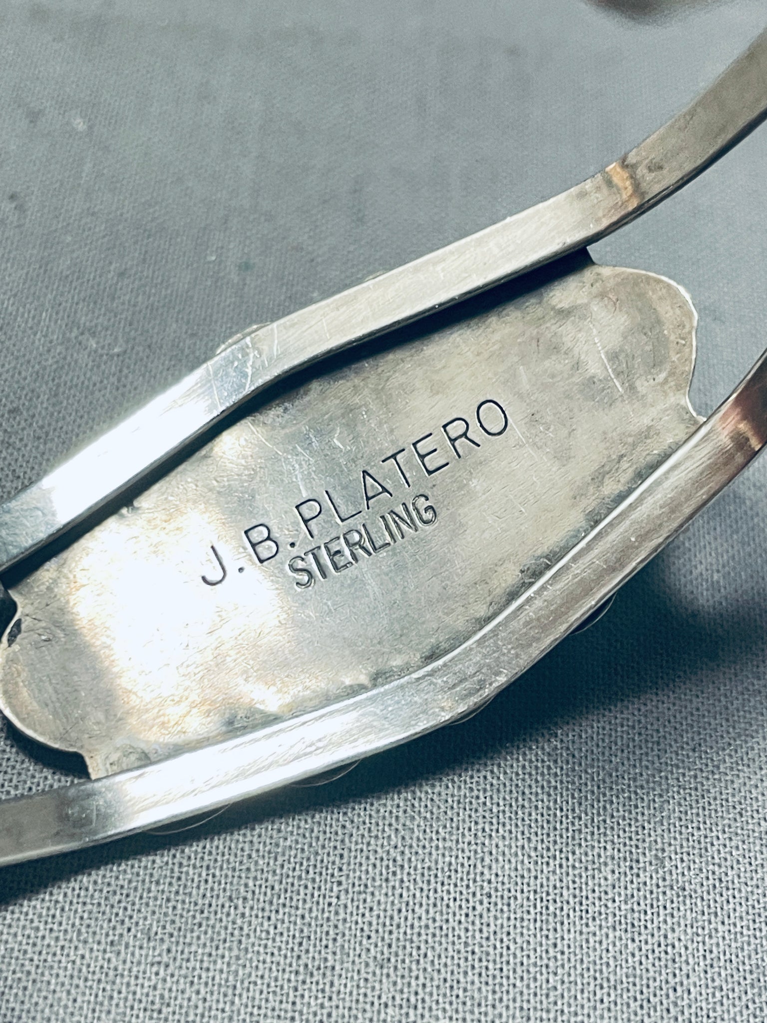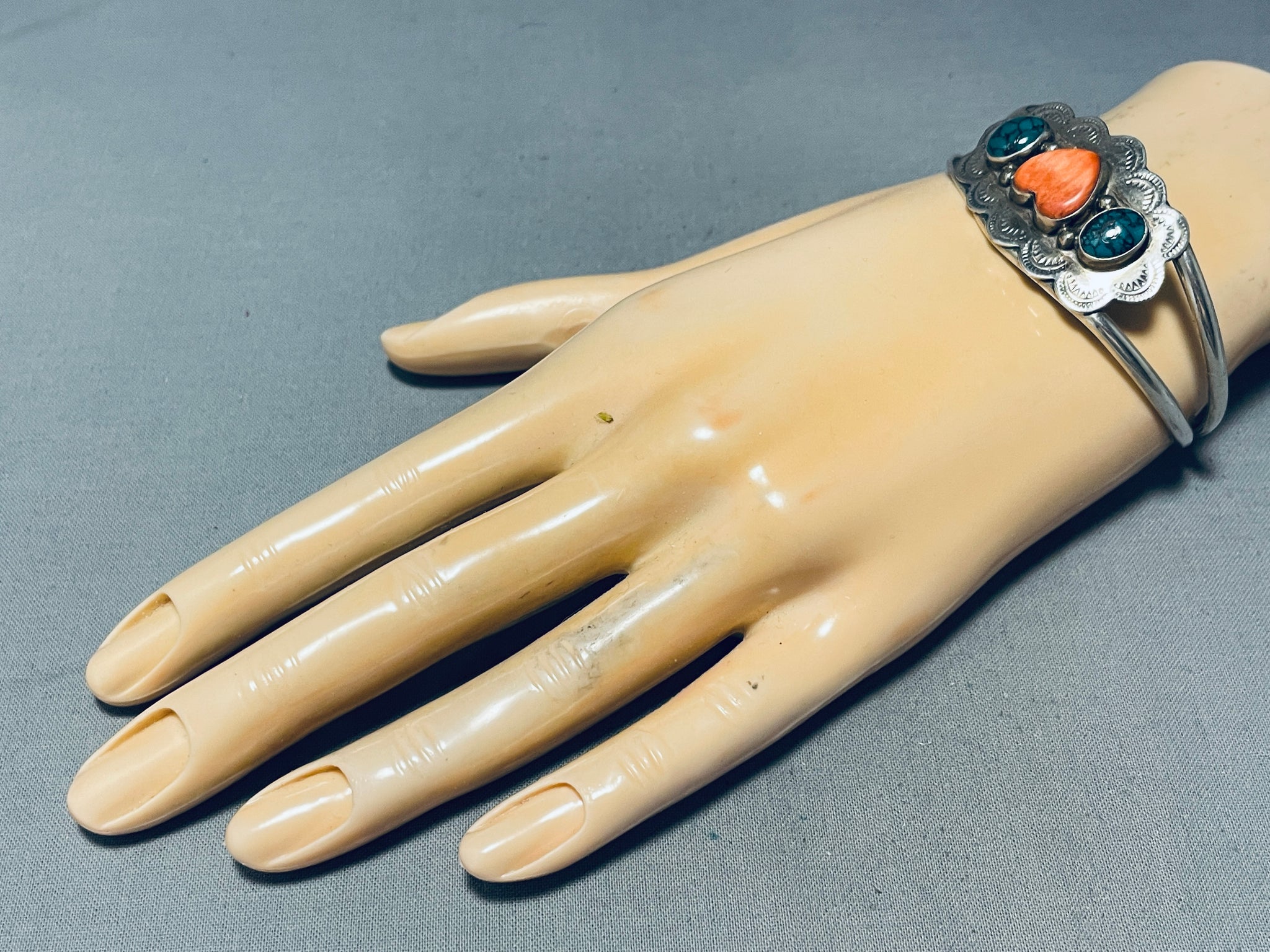 Heart Culture Vintage Native American Navajo Spiderweb Turquoise Sterling Silver Bracelet