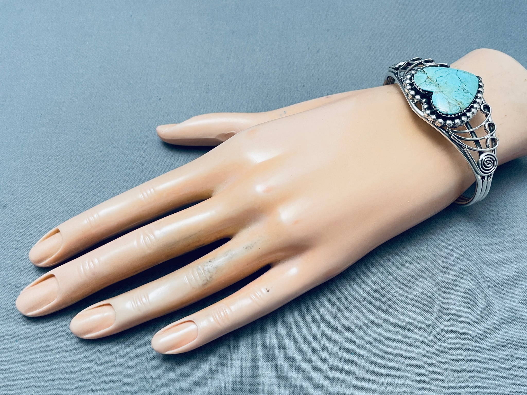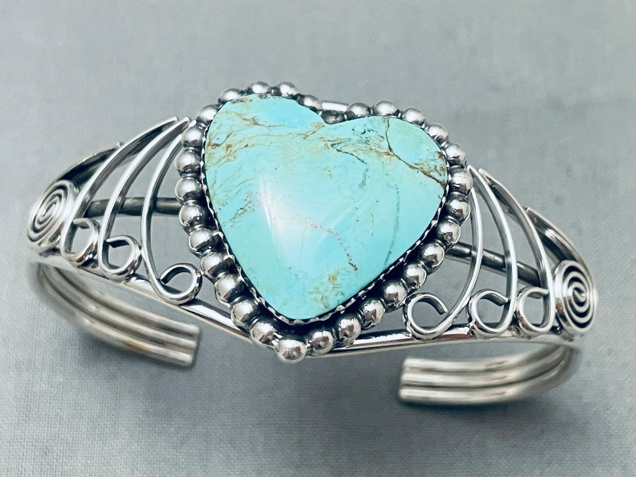 Heart Of Turquoise Vintage Southwest Sterling Silver Bracelet
