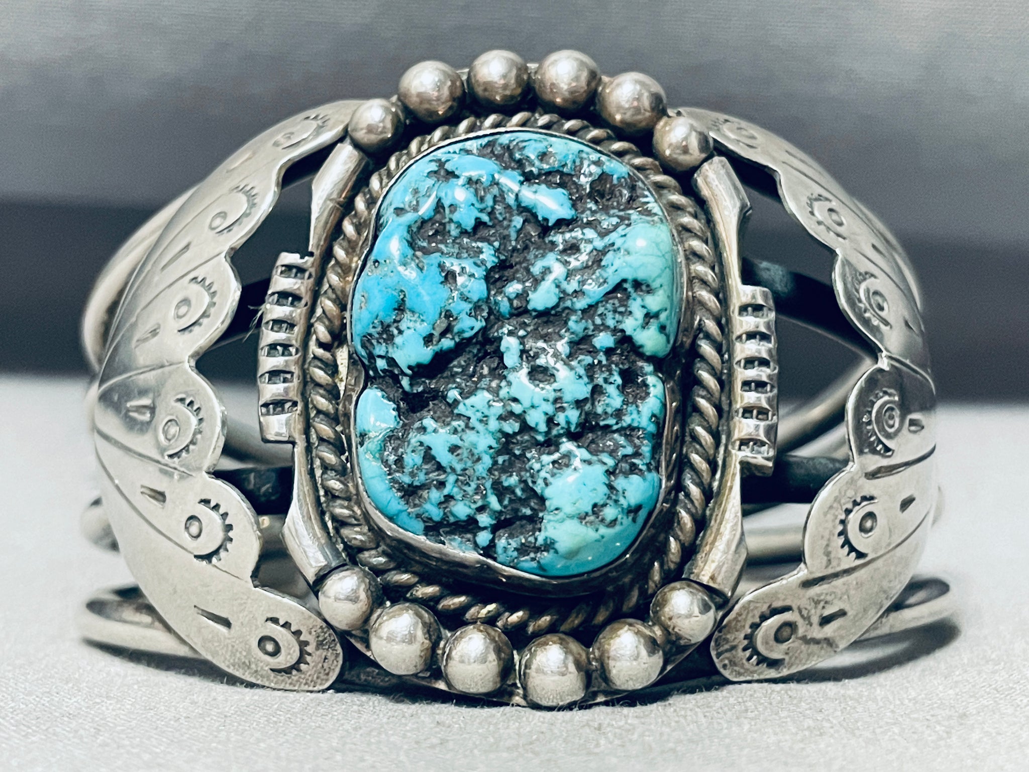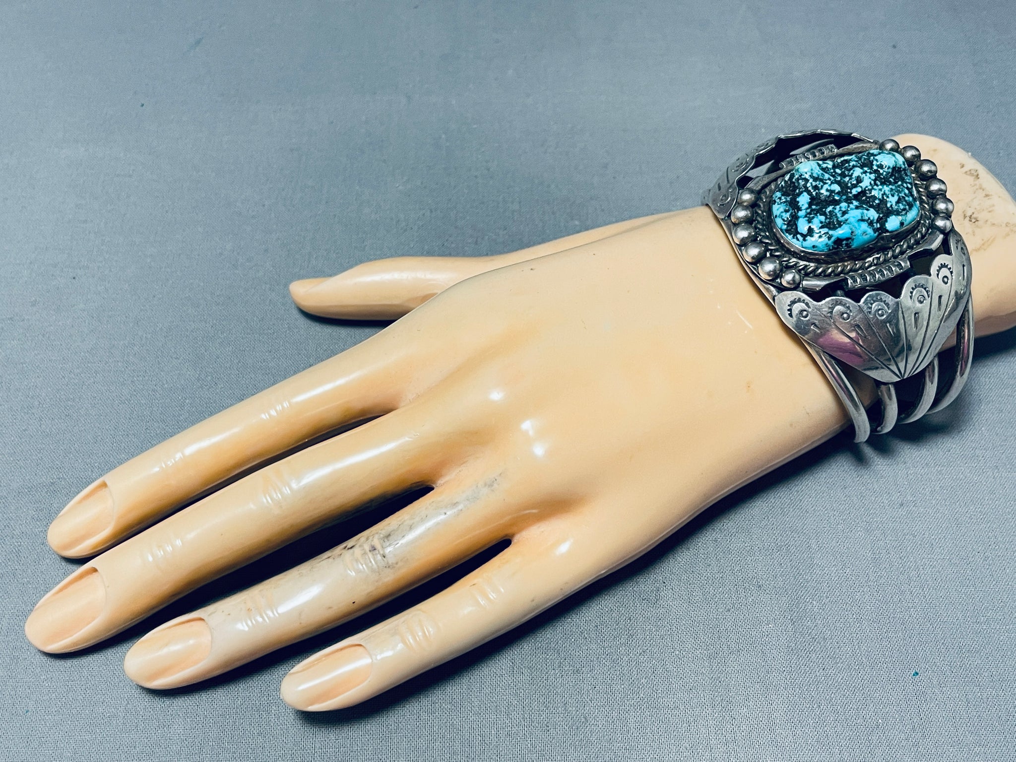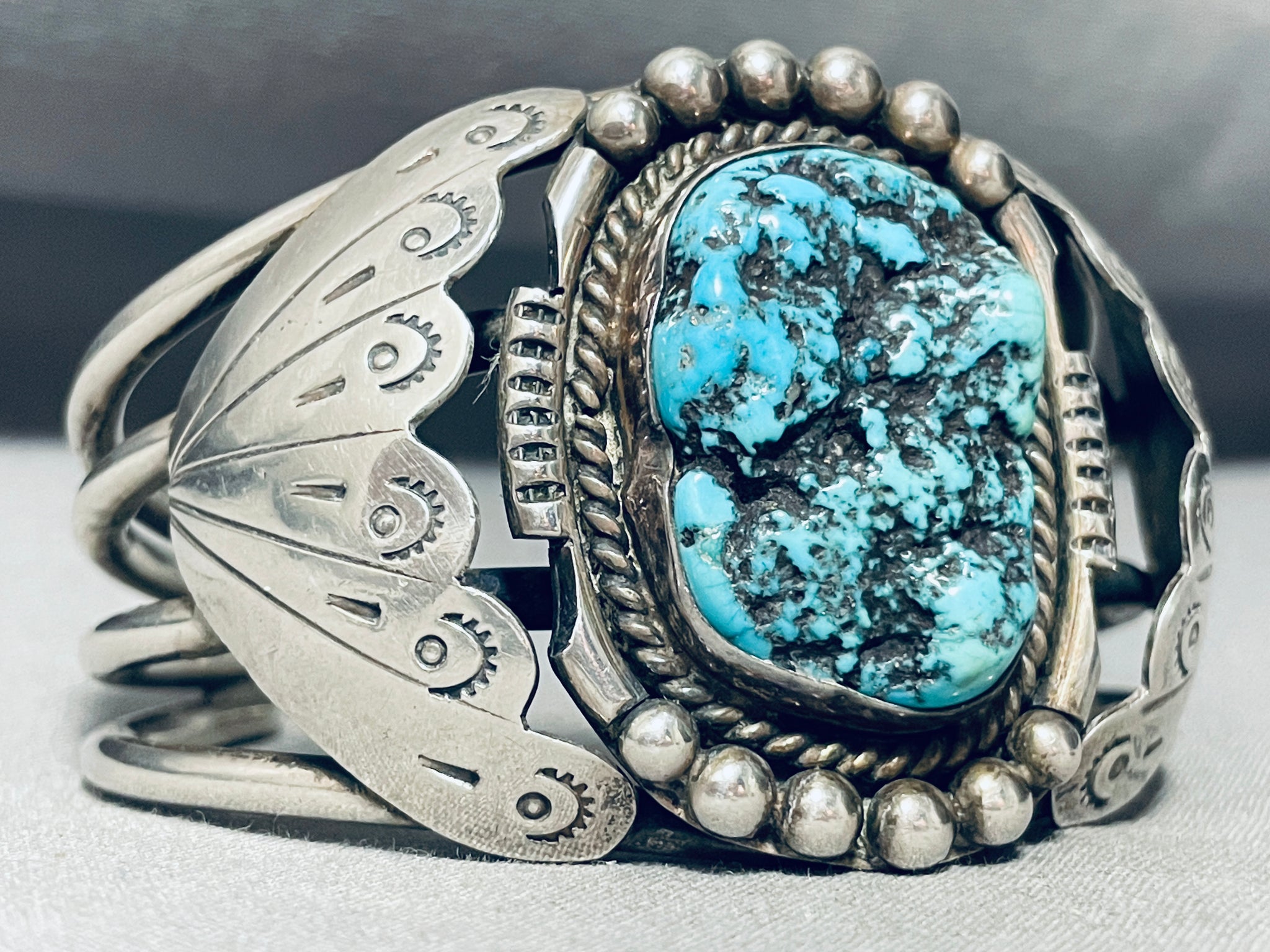 Heavy Museum Vintage Native American Navajo Sleeping Beauty Turquoise Sterling Silver Bracelet