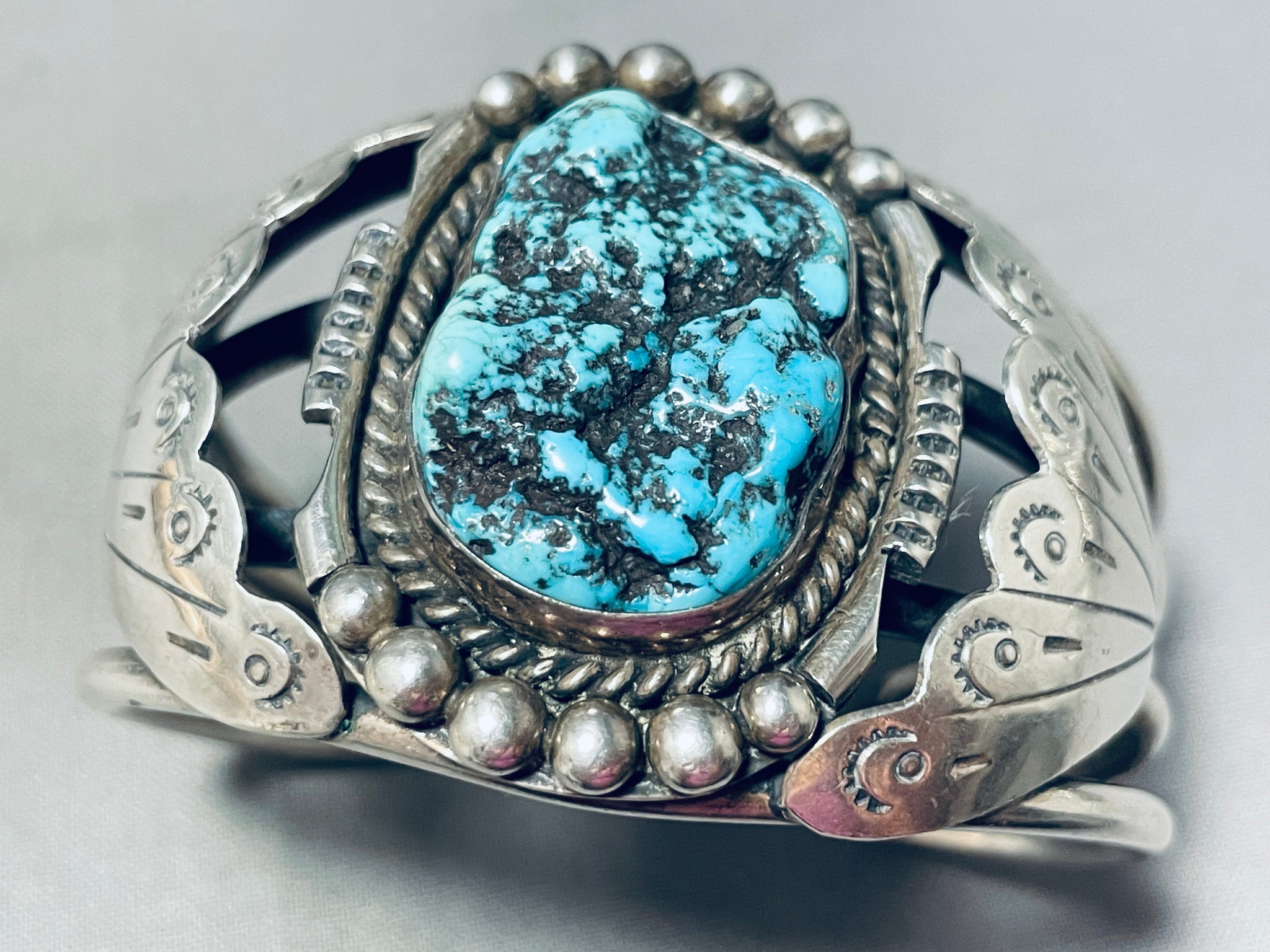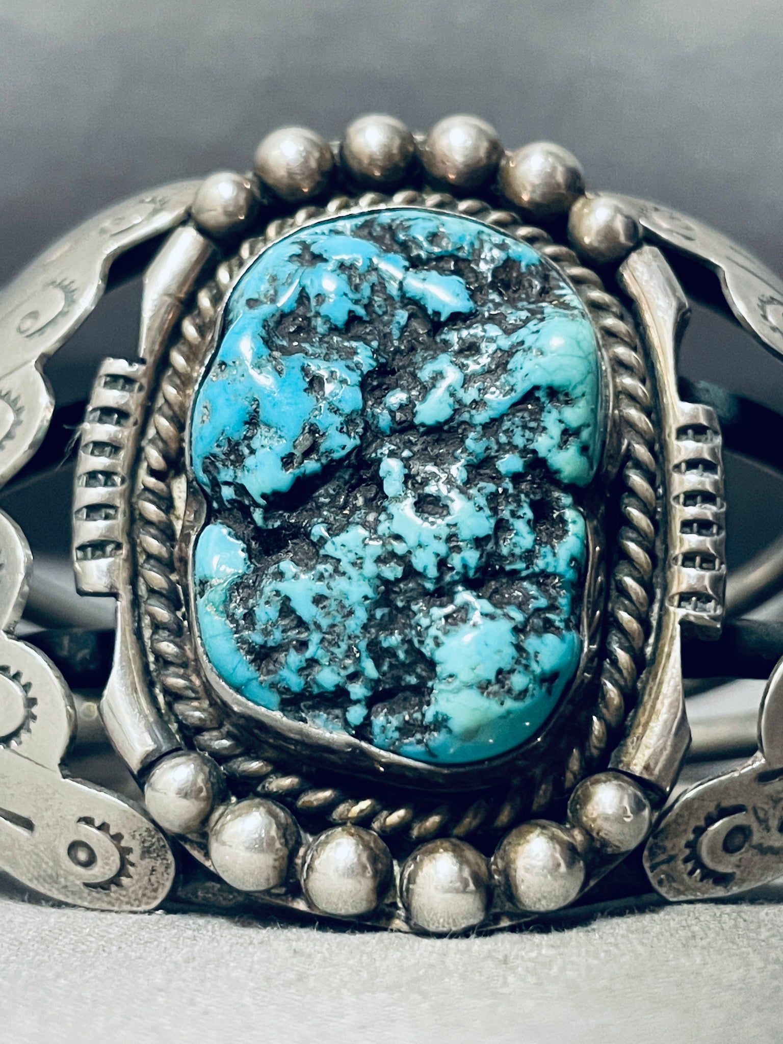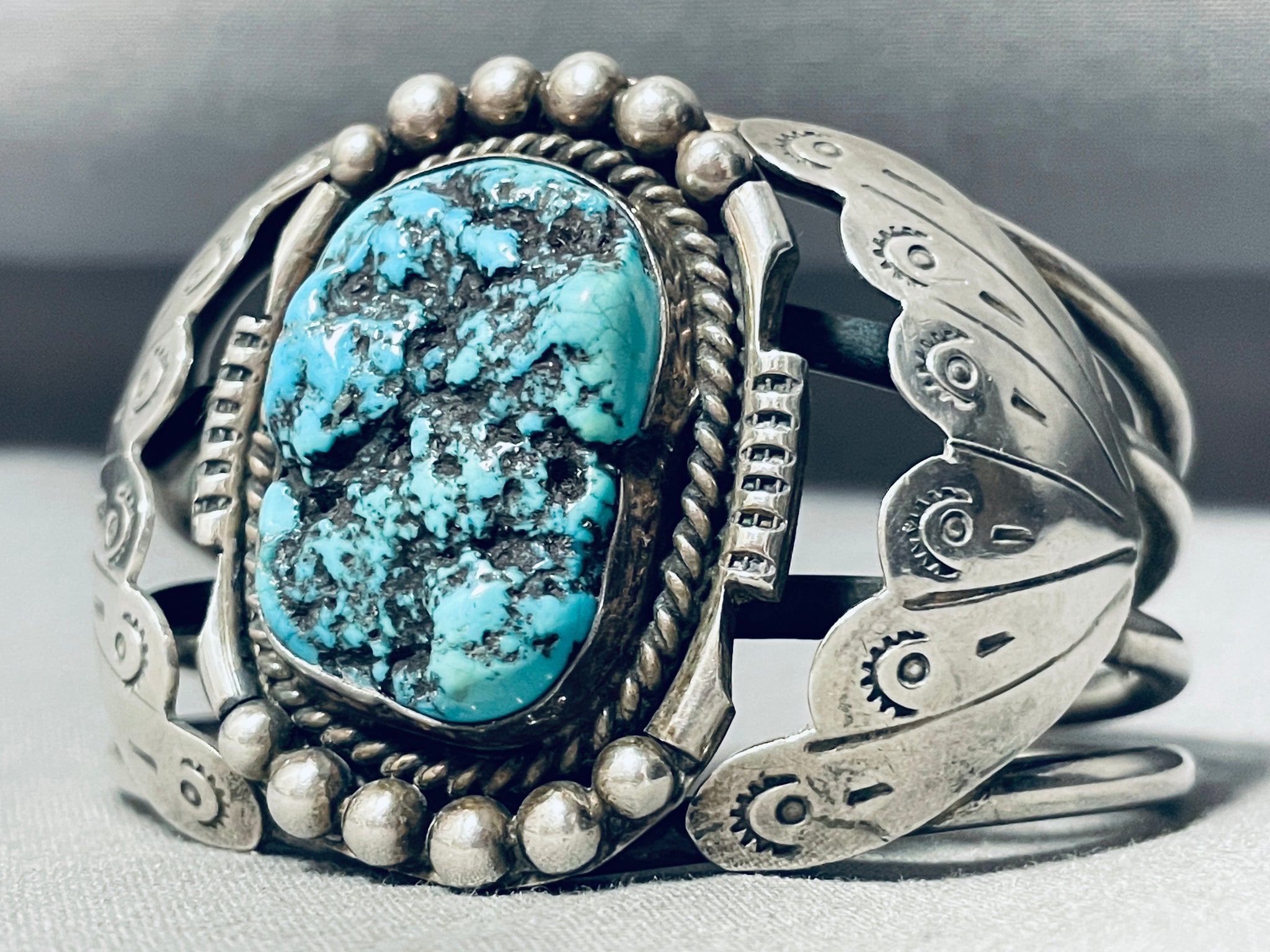 Heavy Museum Vintage Native American Navajo Sleeping Beauty Turquoise Sterling Silver Bracelet