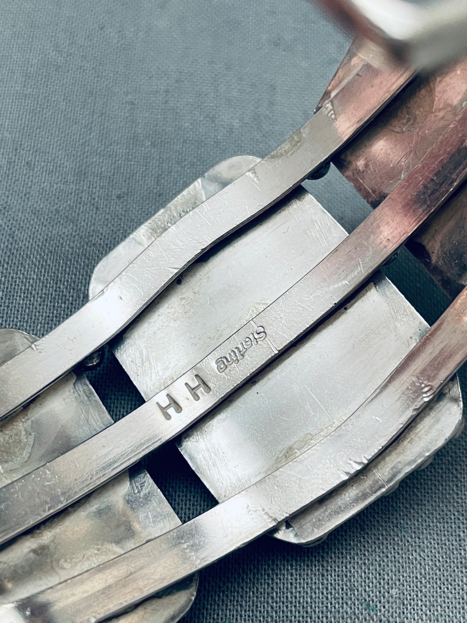 Helen Harrison Vintage Native American Navajo Squared Turquoise Sterling Silver Bracelet