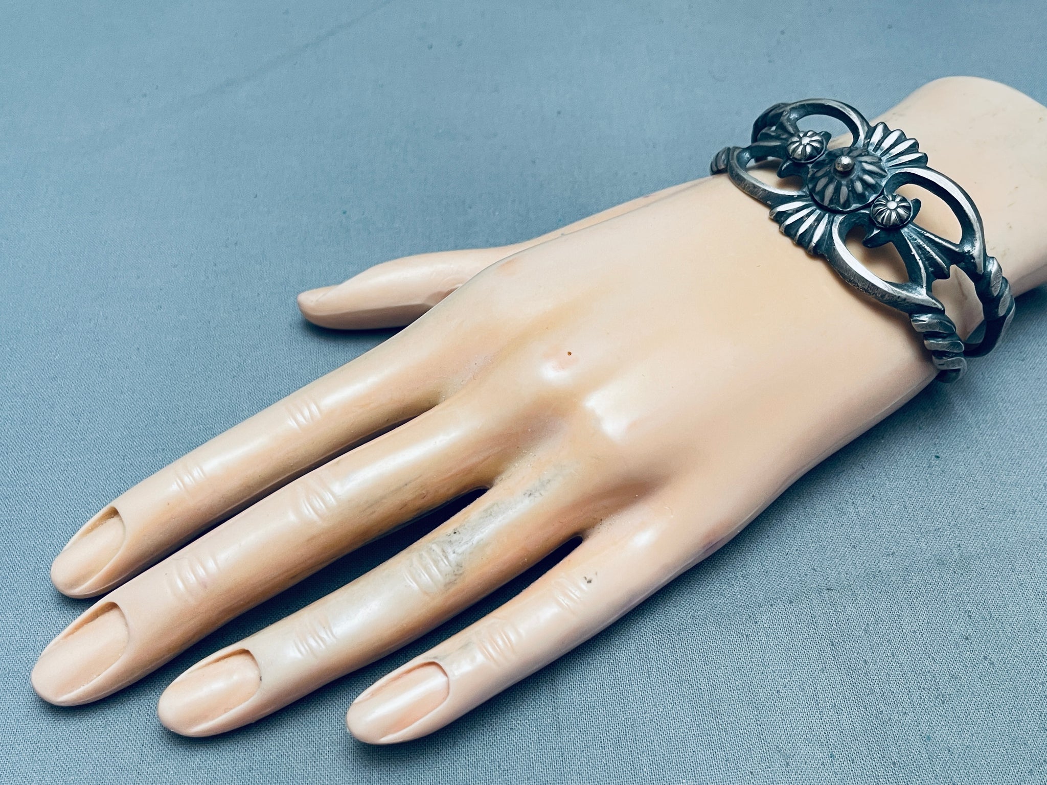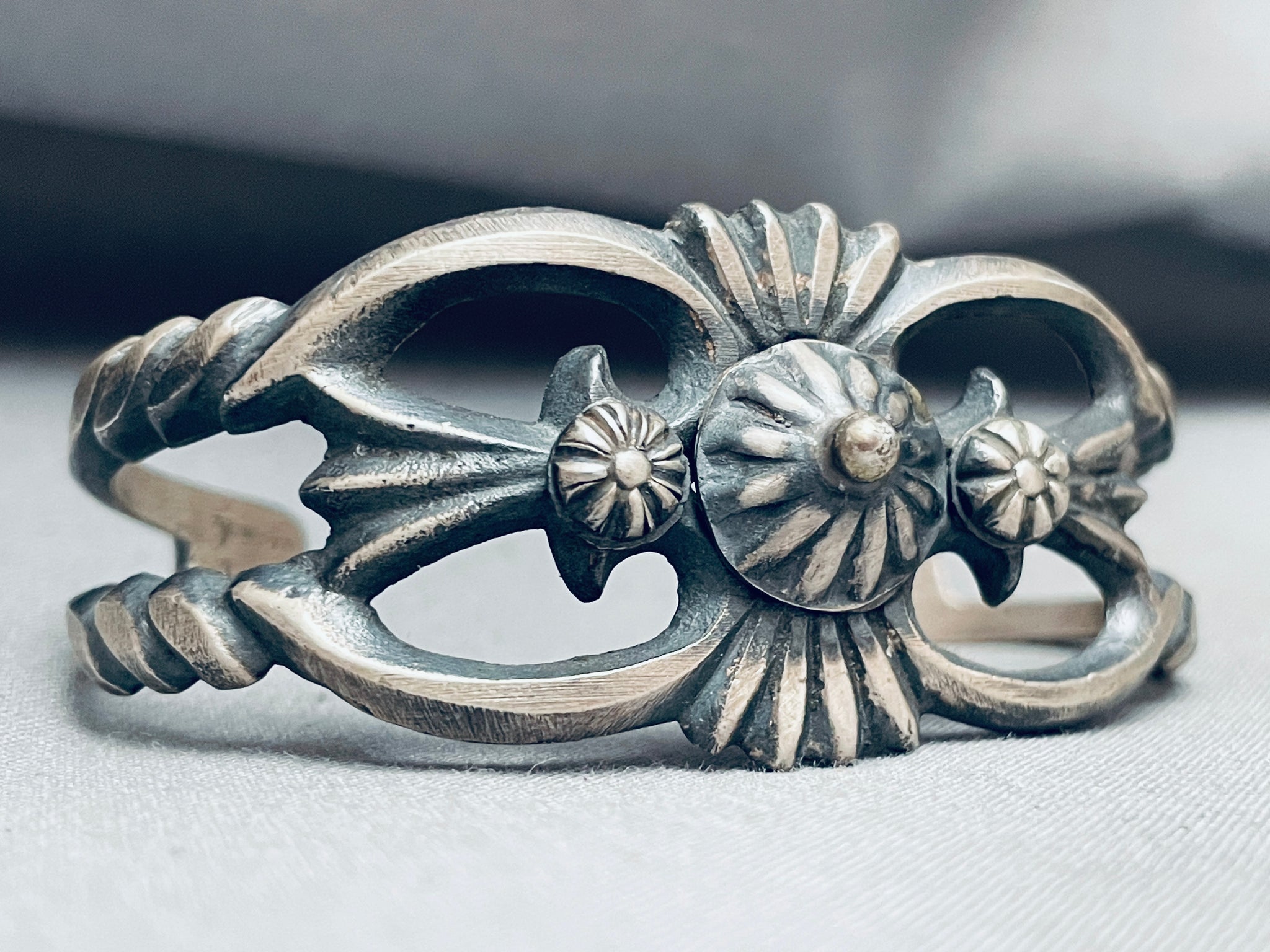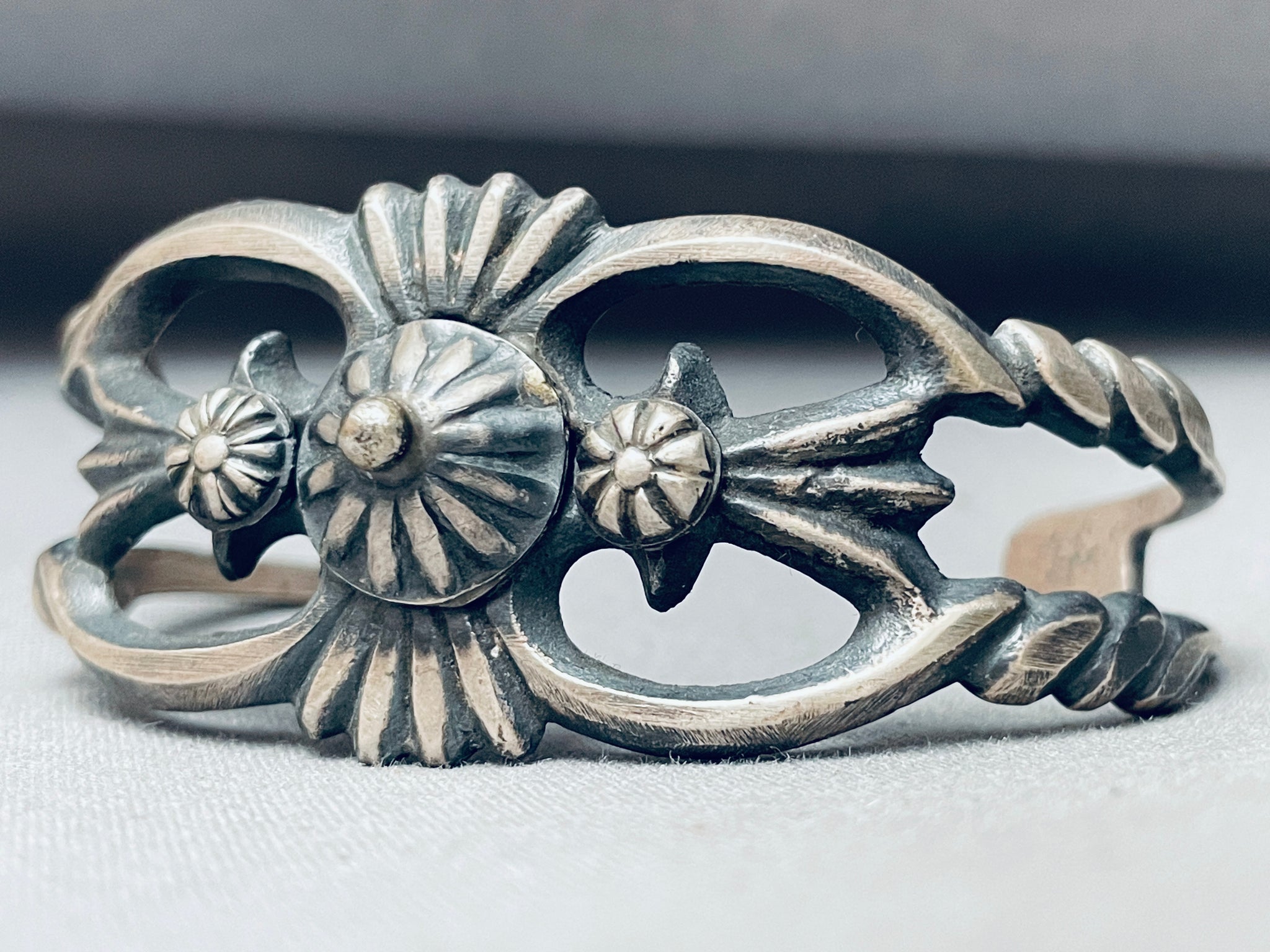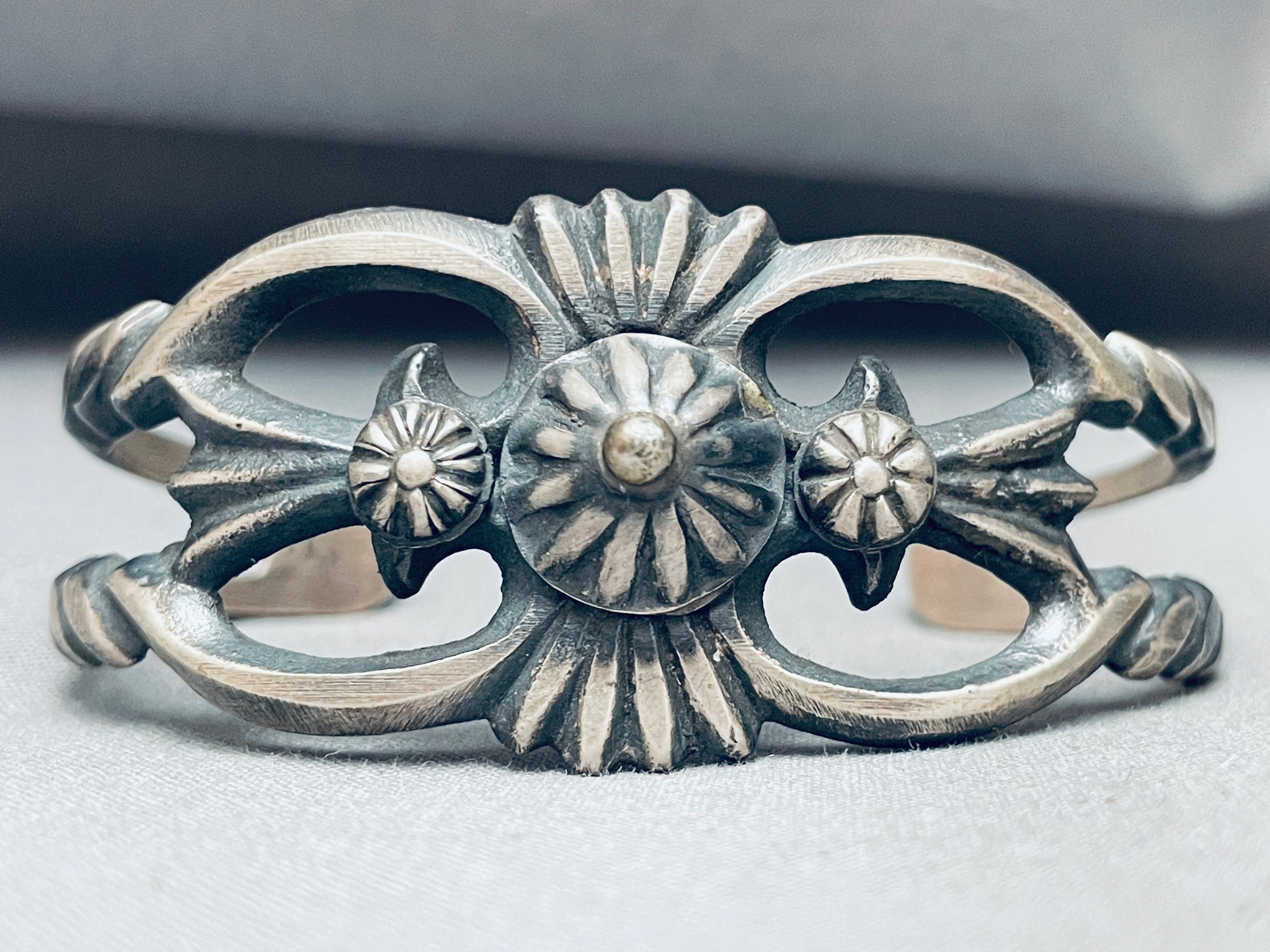 Highly Detailed Button Vintage Native American Navajo Sterling Silver Bracelet