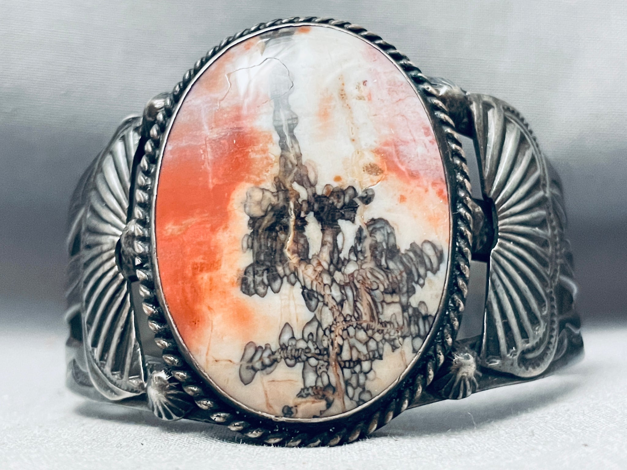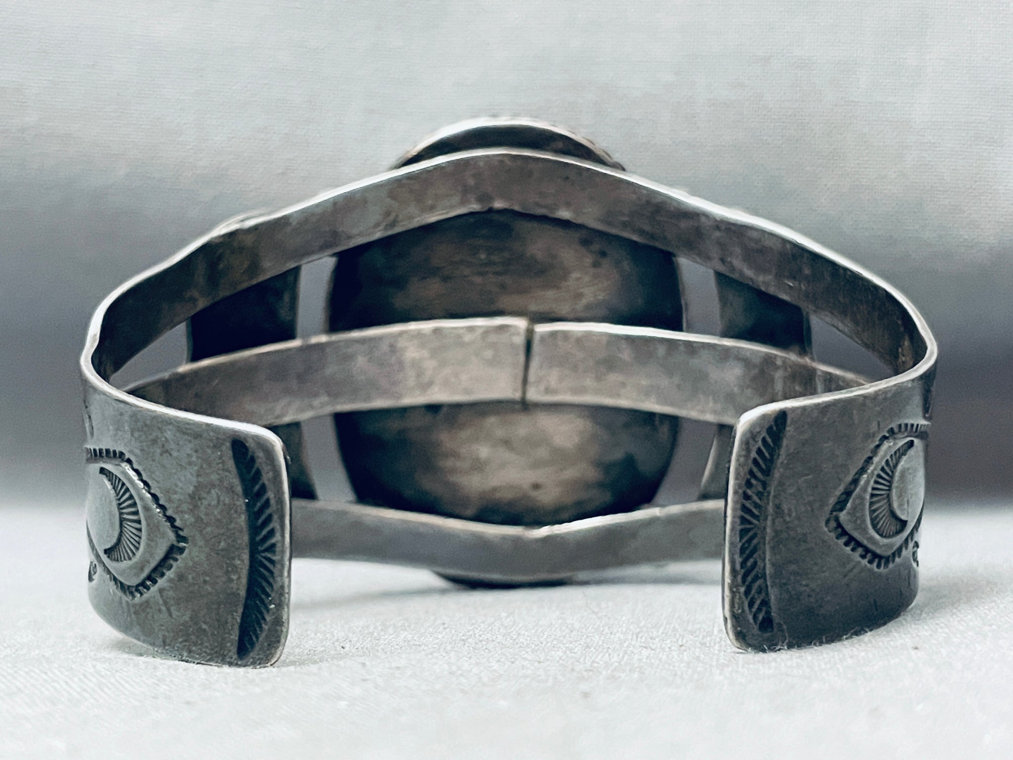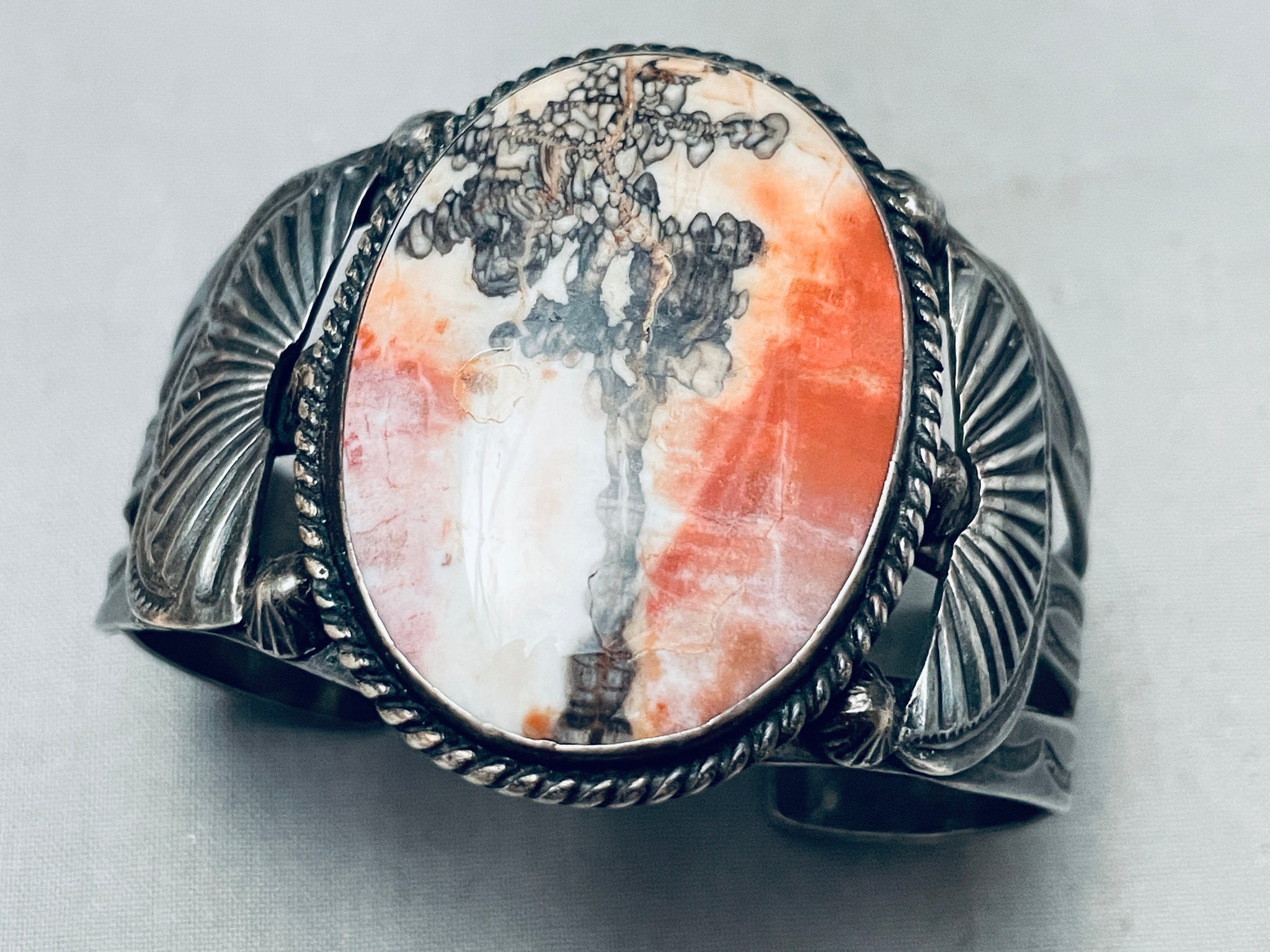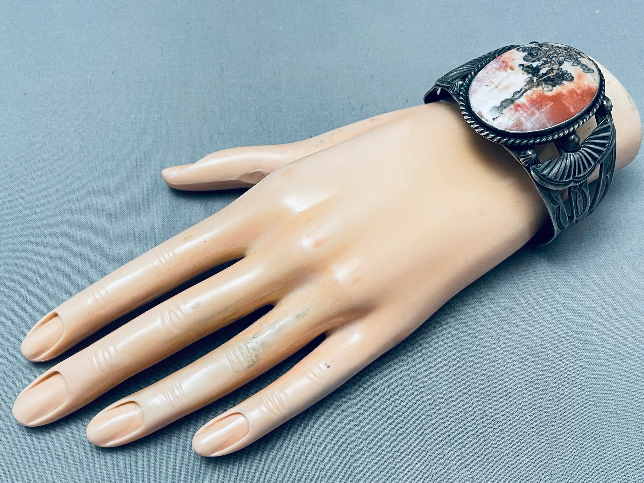 Huge Early Vintage Native American Navajo Petrified Wood Sterling Silver Bracelet