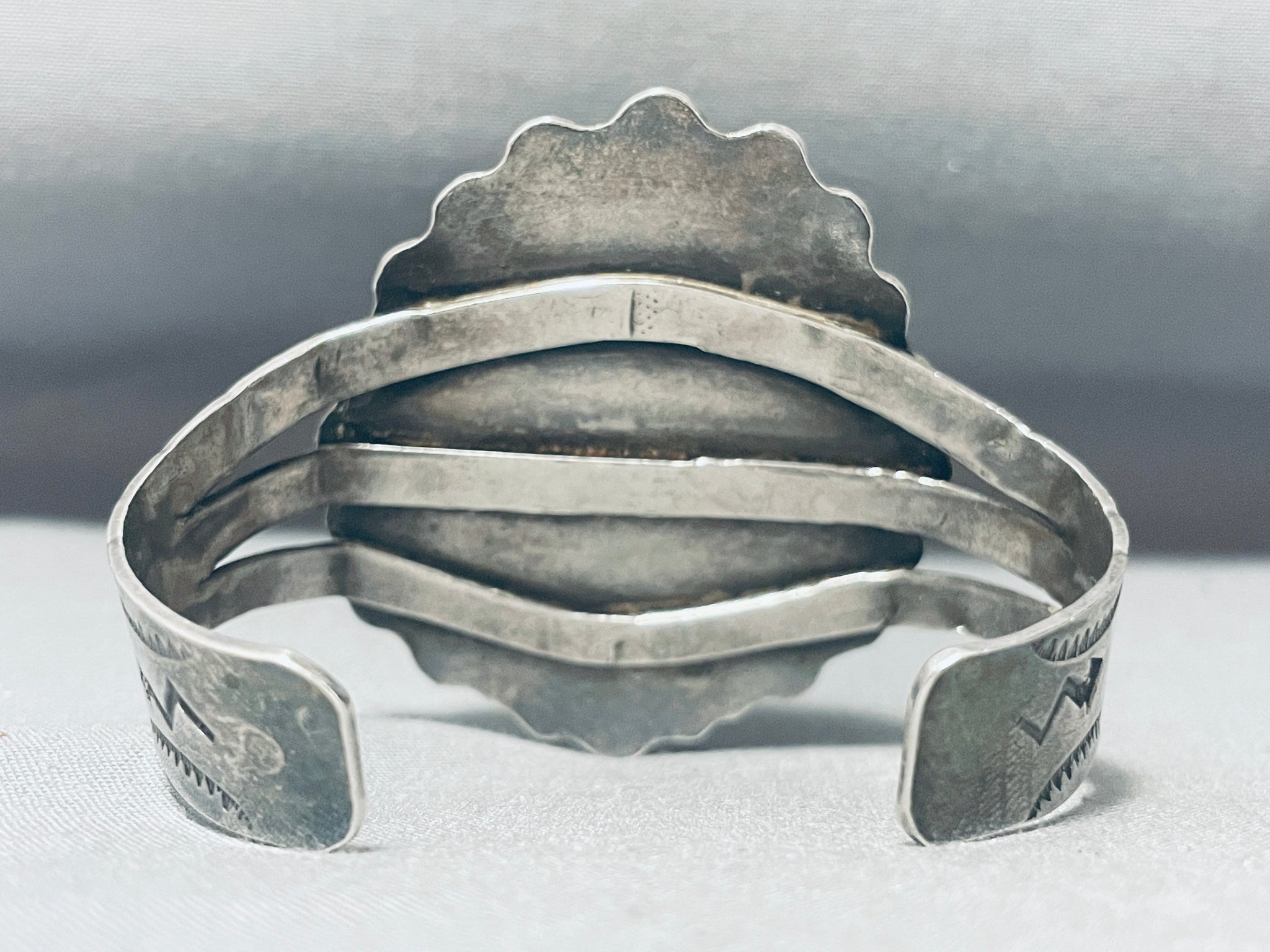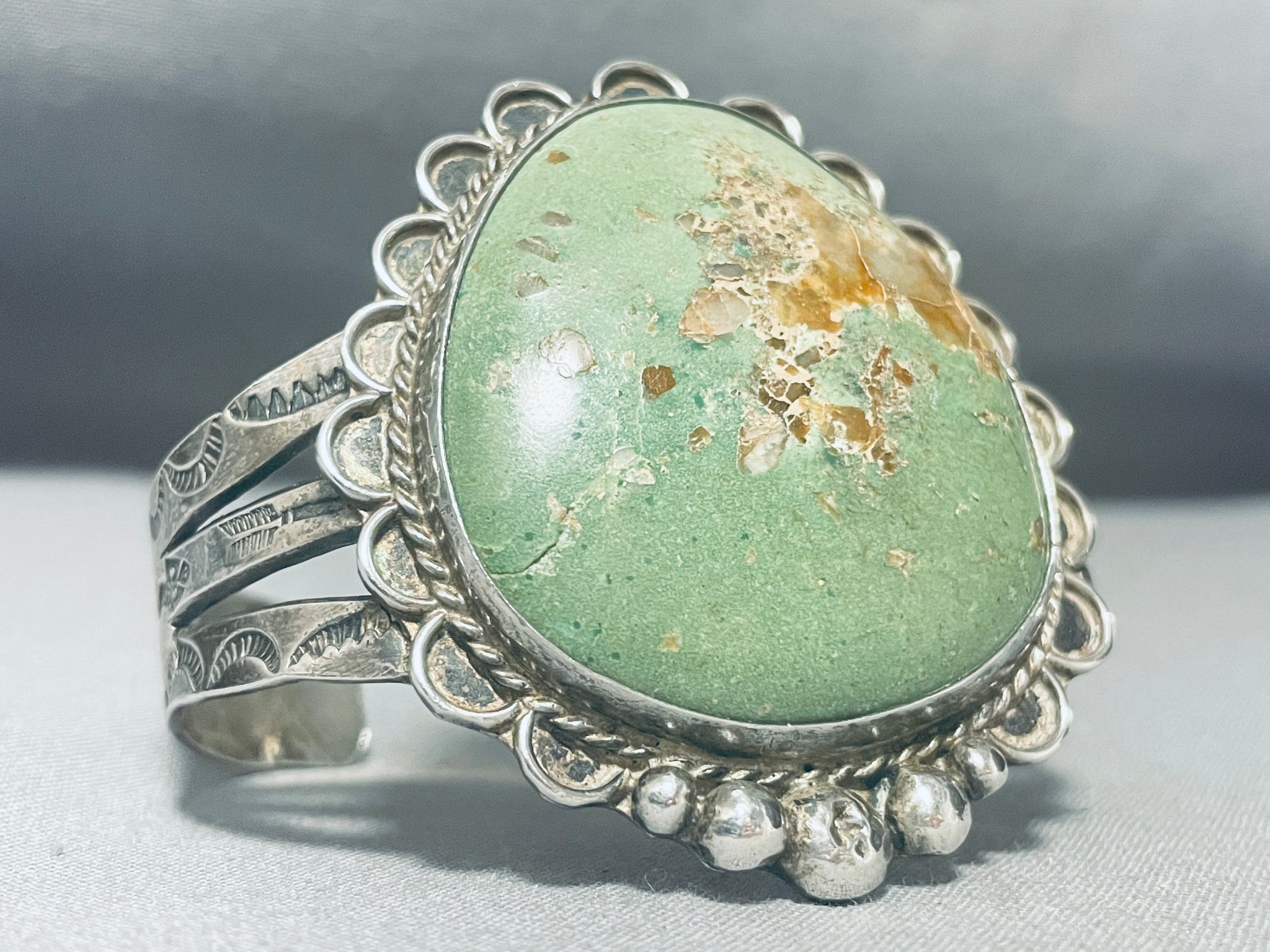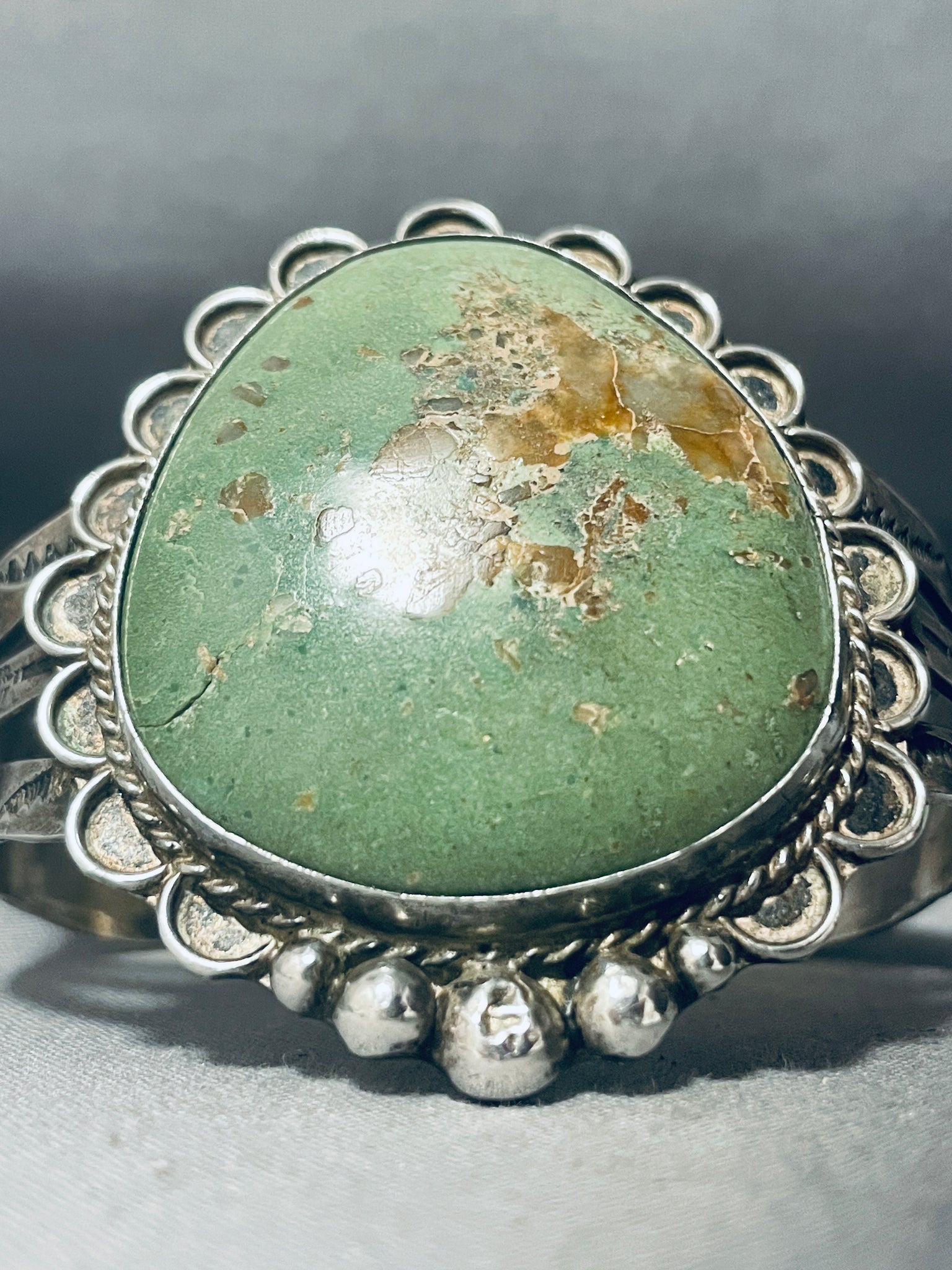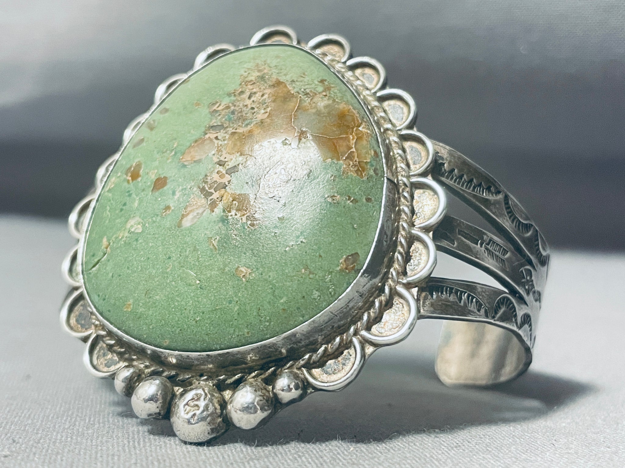 Huge Vintage Native American Navajo Green Turquoise Sterling Silver Bracelet